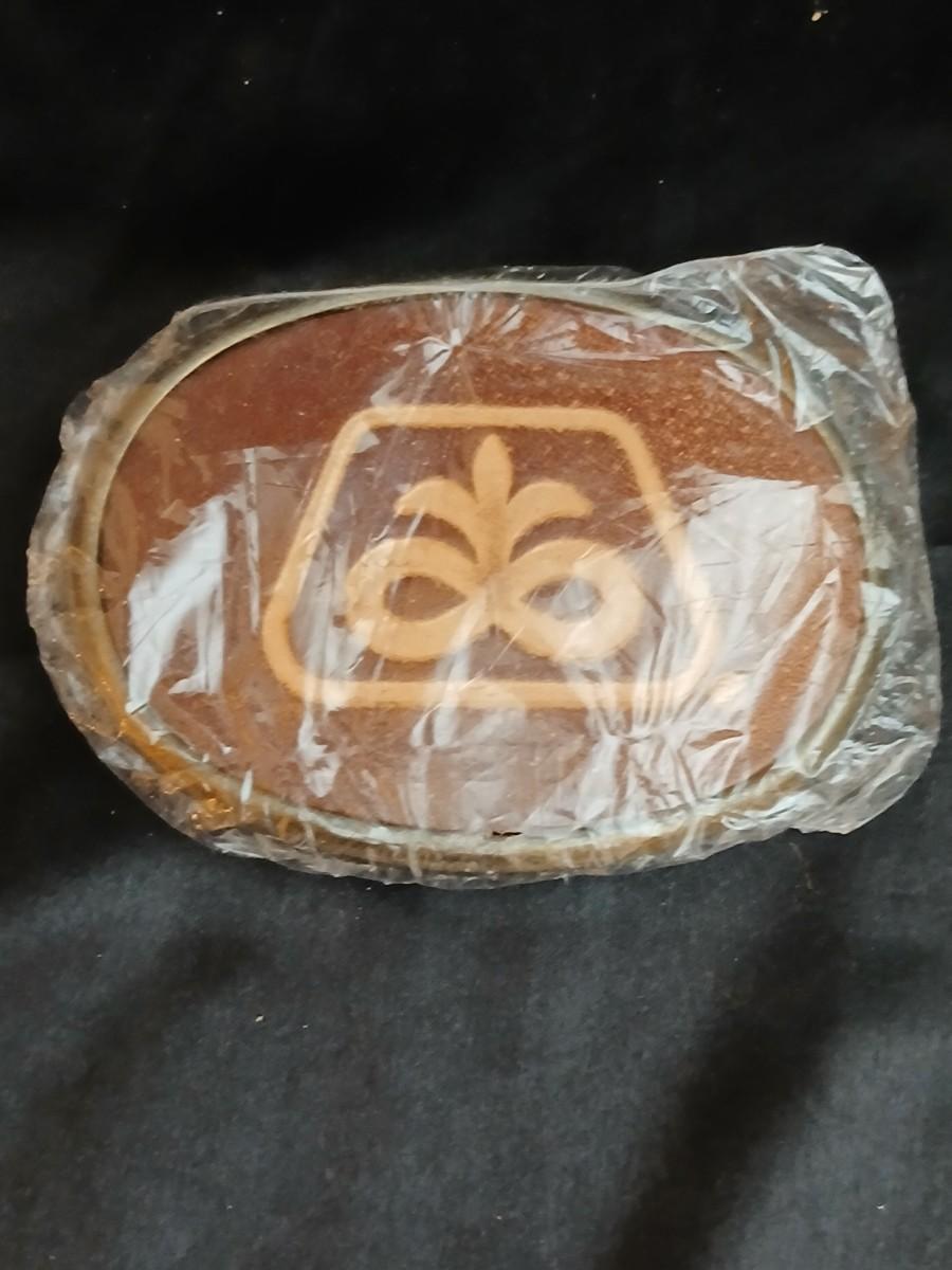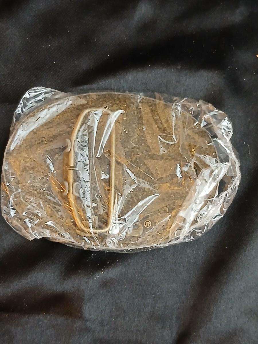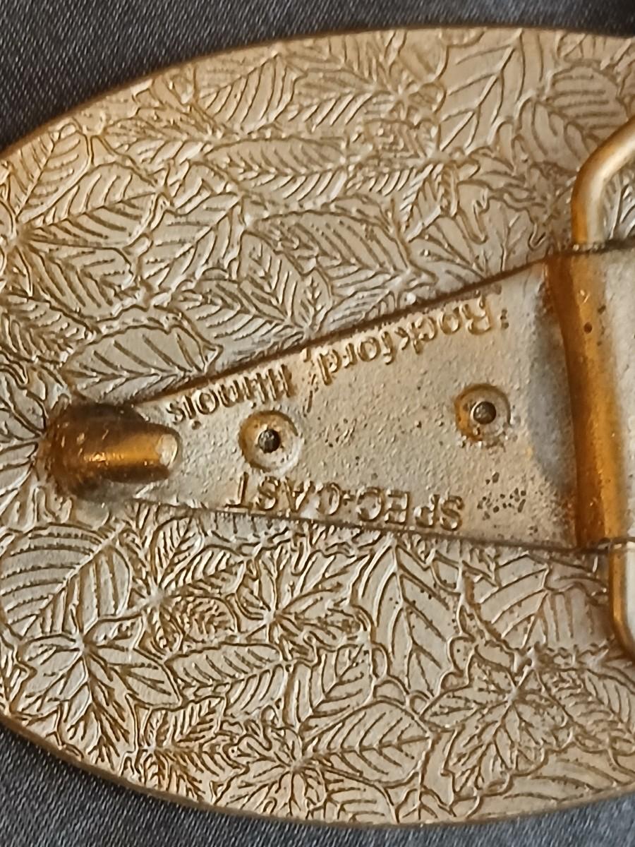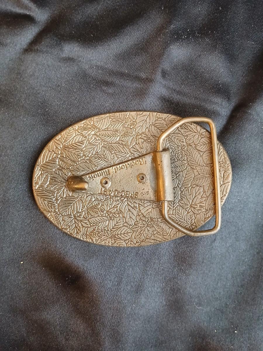 Advertisement buckles = Dekalb advertising belt buckle featuring the "flying corn cob" logo. & a Pioneer Seed Company oval leather inlay belt buckle