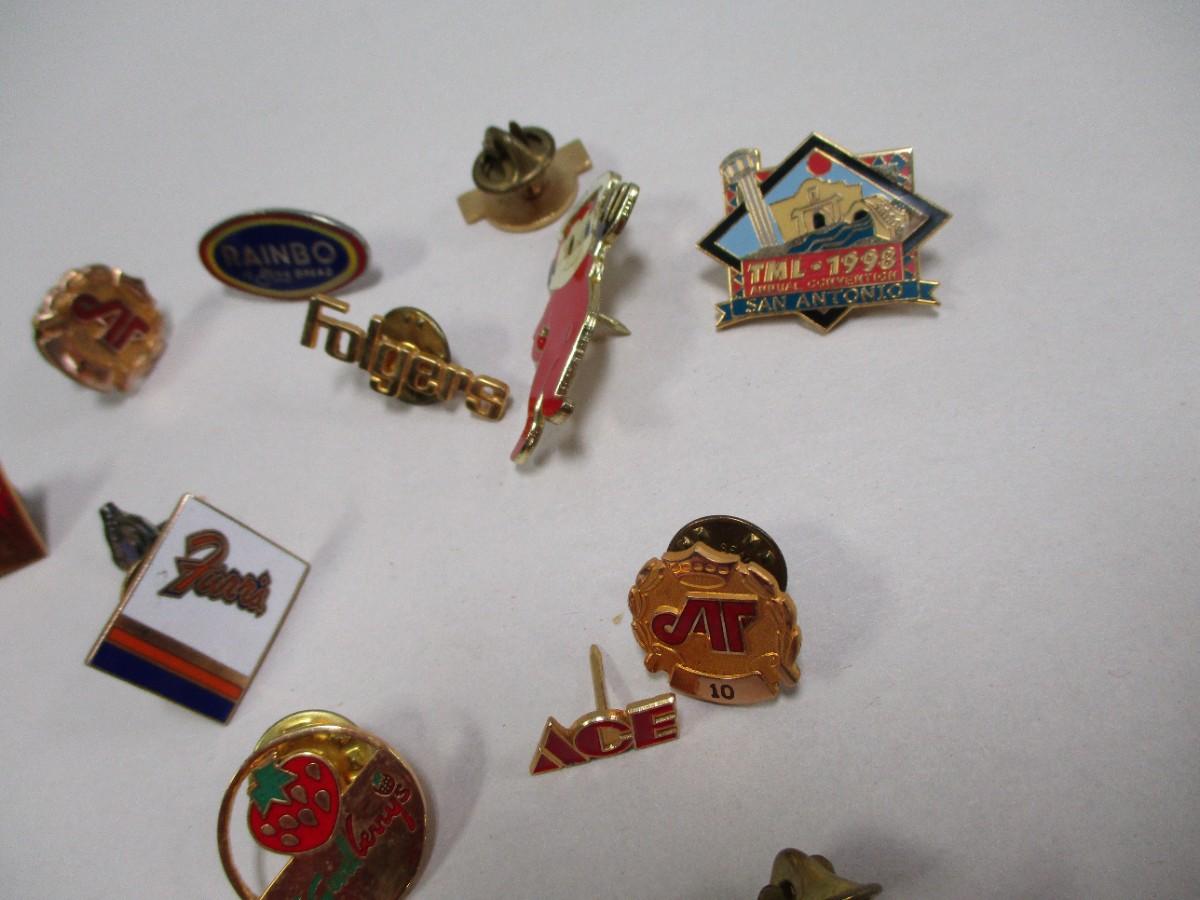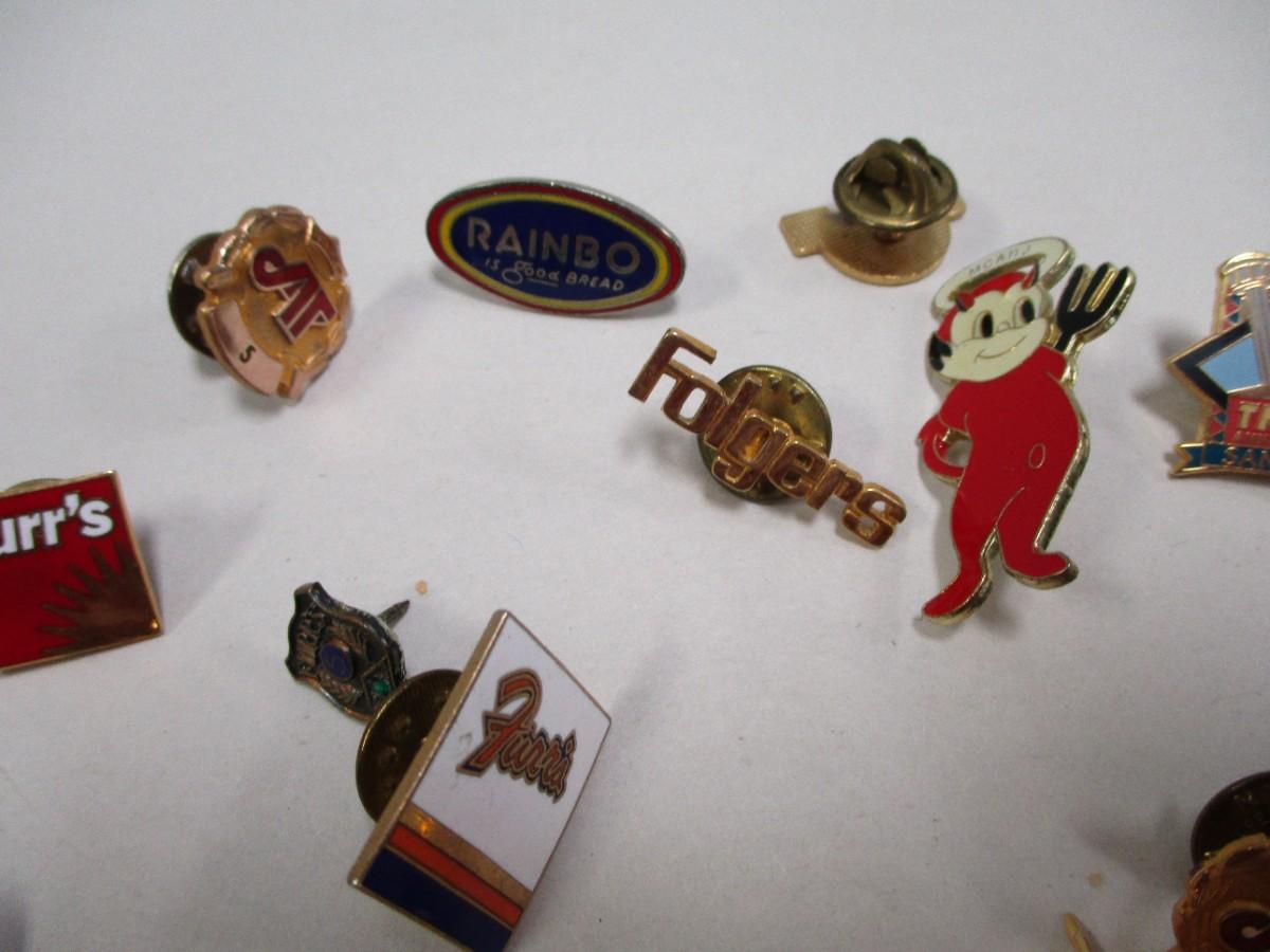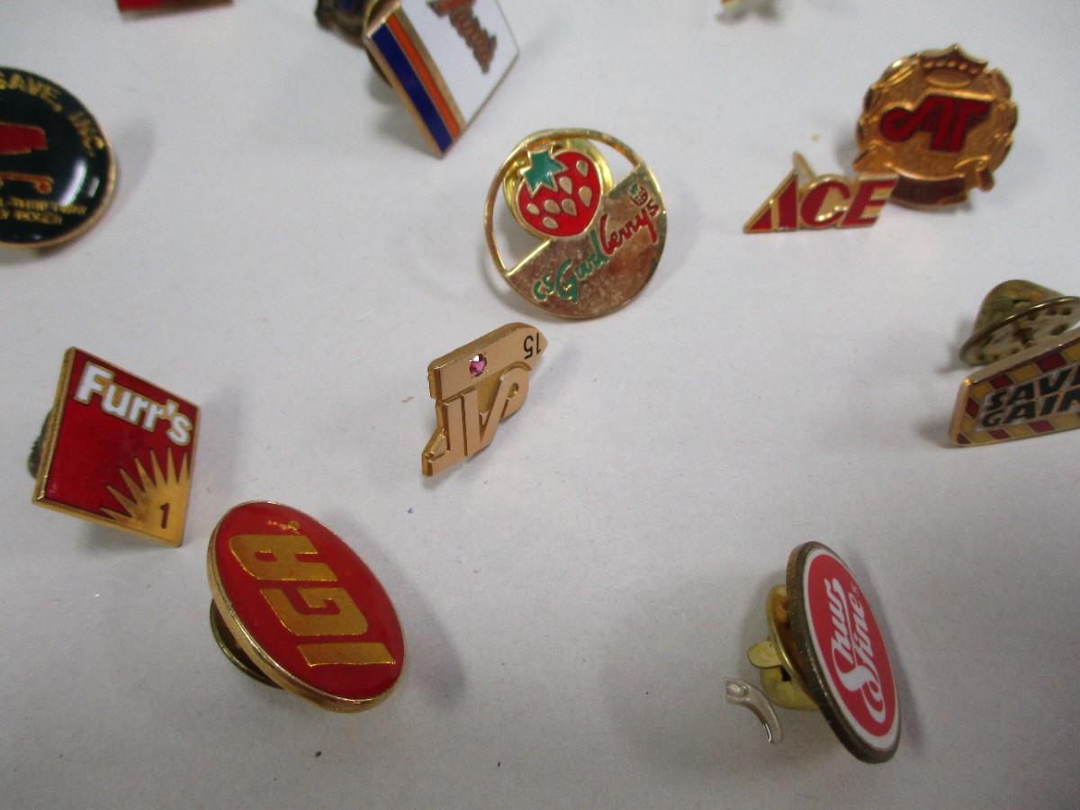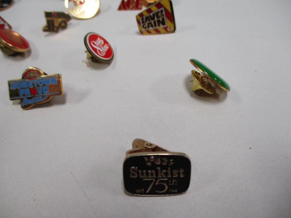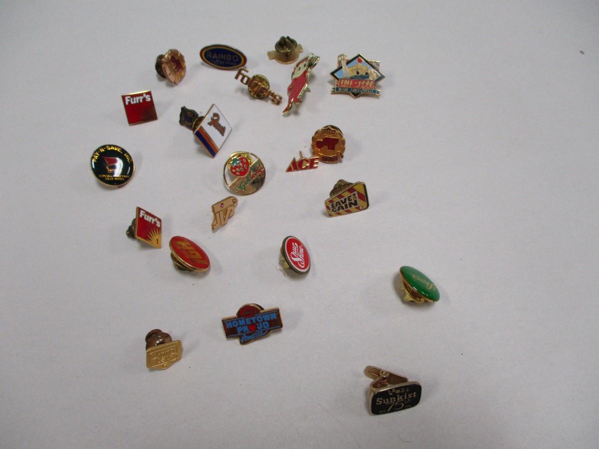 Advertising Lapel Pins - Folgers - Rainbo - Furrs - IGA - Sunkist Clasp
