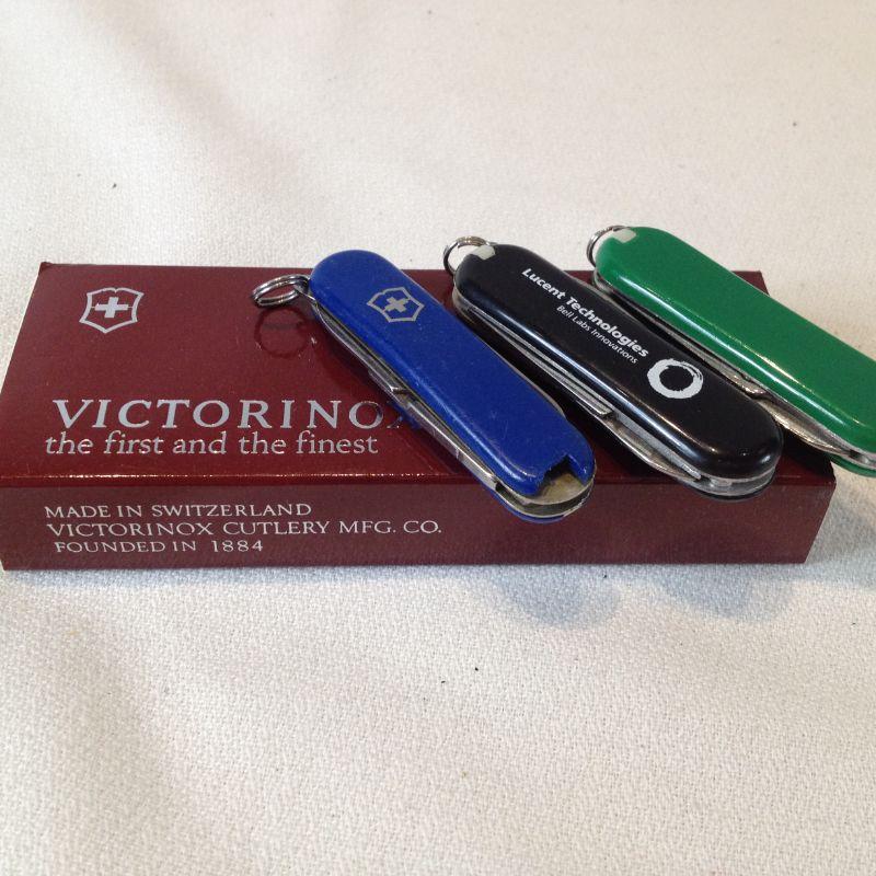 This is a lot of 4 of the key chain style pocket knives. Two are made by Victorinox of Switzerland (makers of the Swiss army knife), the other two were made in China. They are very handy dandy to have when you need one.