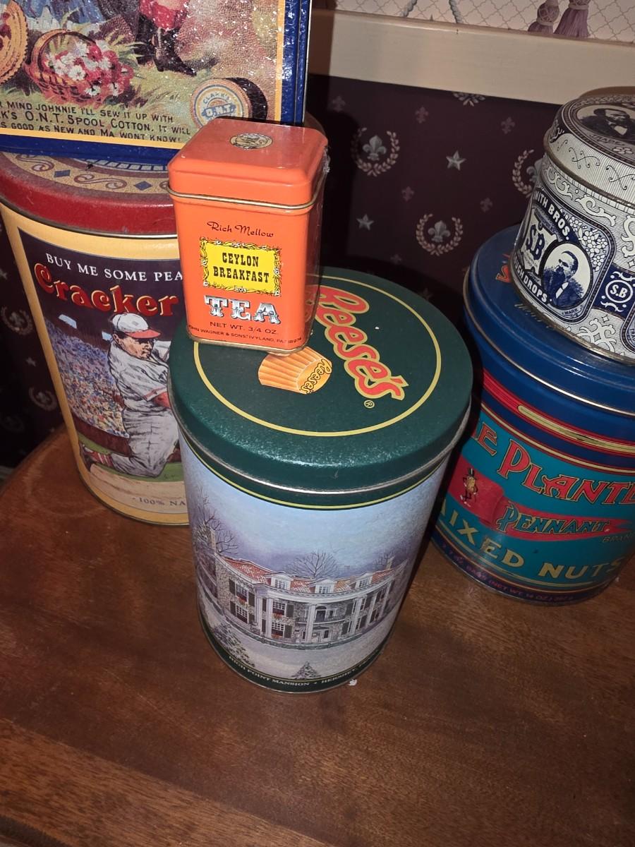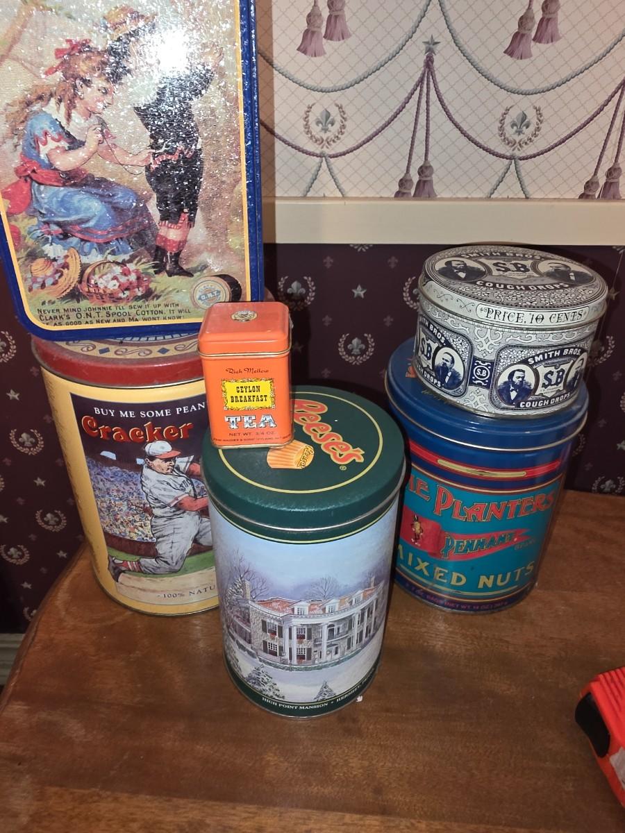 Set of 6. Cracker jacks. Smith brothers cough drops planters and Reese.