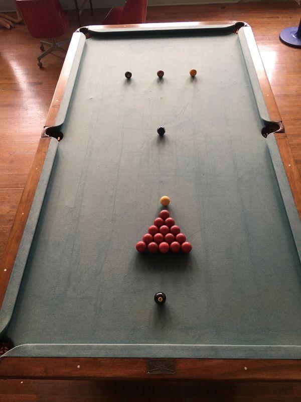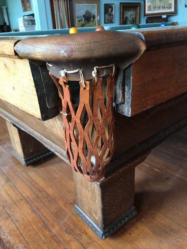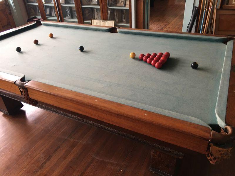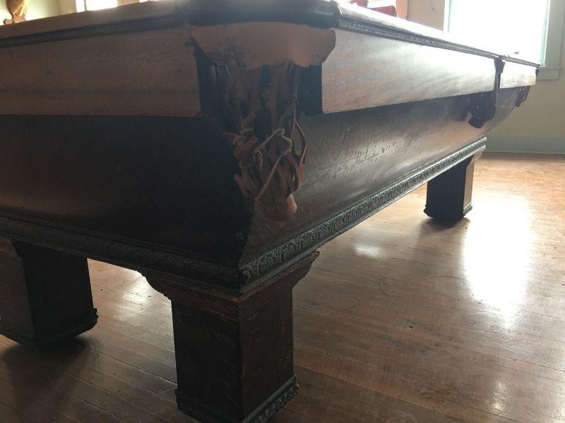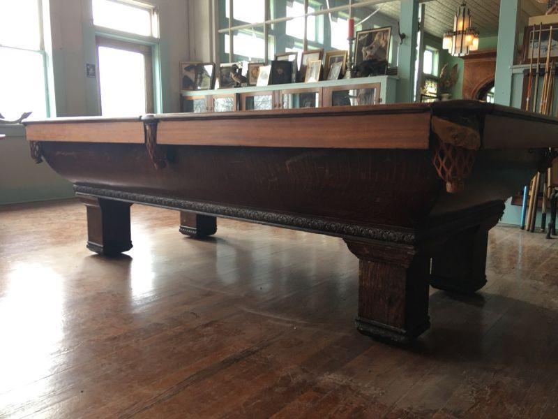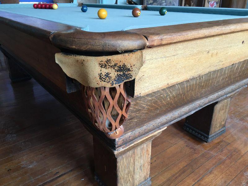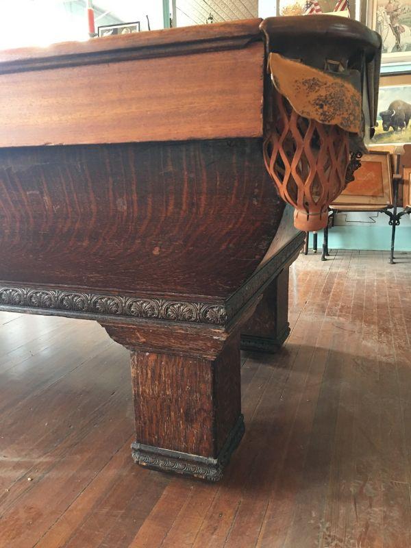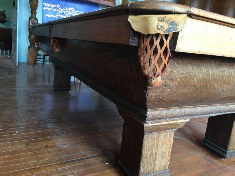 A.E. Scmidt Antique Snooker Table w/ Quartersawn Golden Oak Including Wooden Score Line