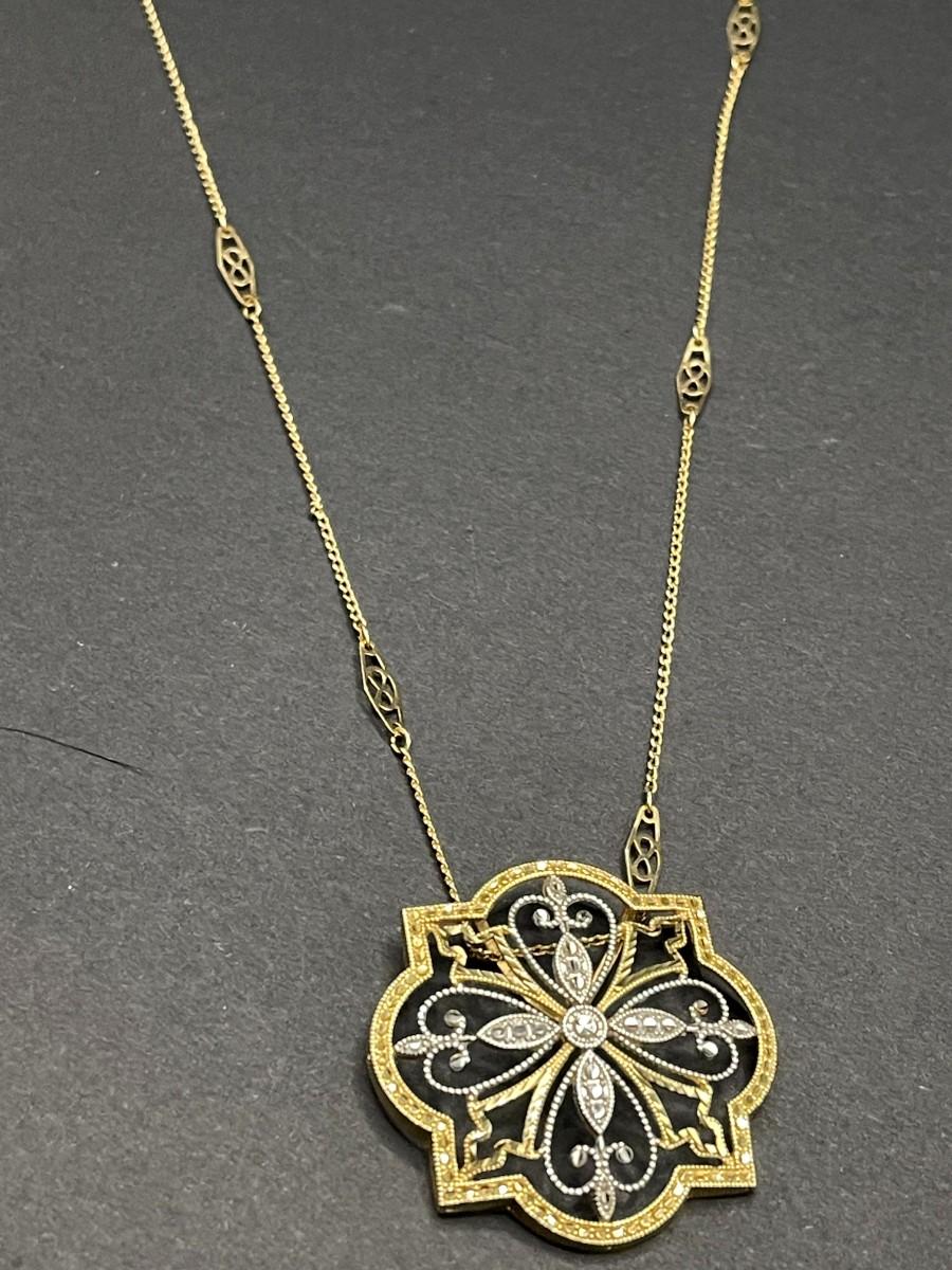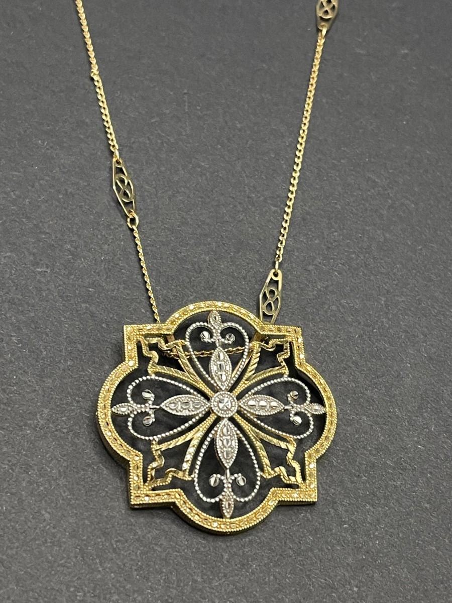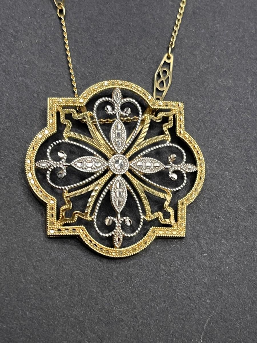AE Two Tone pendant with chain. Good condition. 9.14 total grams. 28" chain.