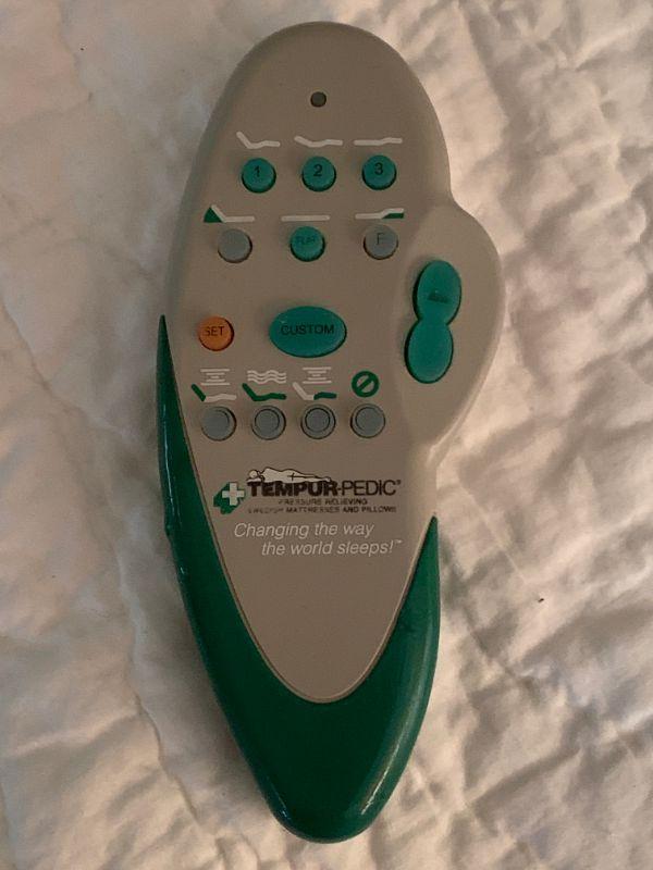 Cal-King size adjustable bed w/Tempur=Pedic mattress. Wooden headboard. Includes the bed linen and remote.