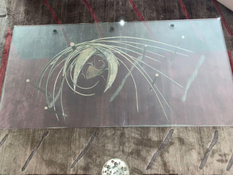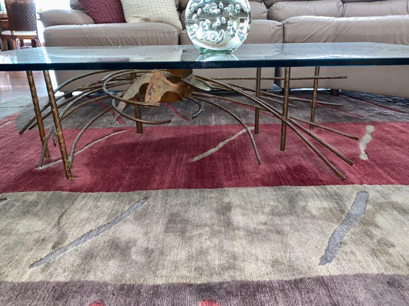 AEC 41 MODERNIST METAL SCULPTURE GLASS TOP COFFEE TABLE DELAYED PICKUP