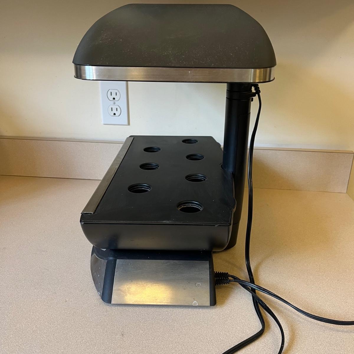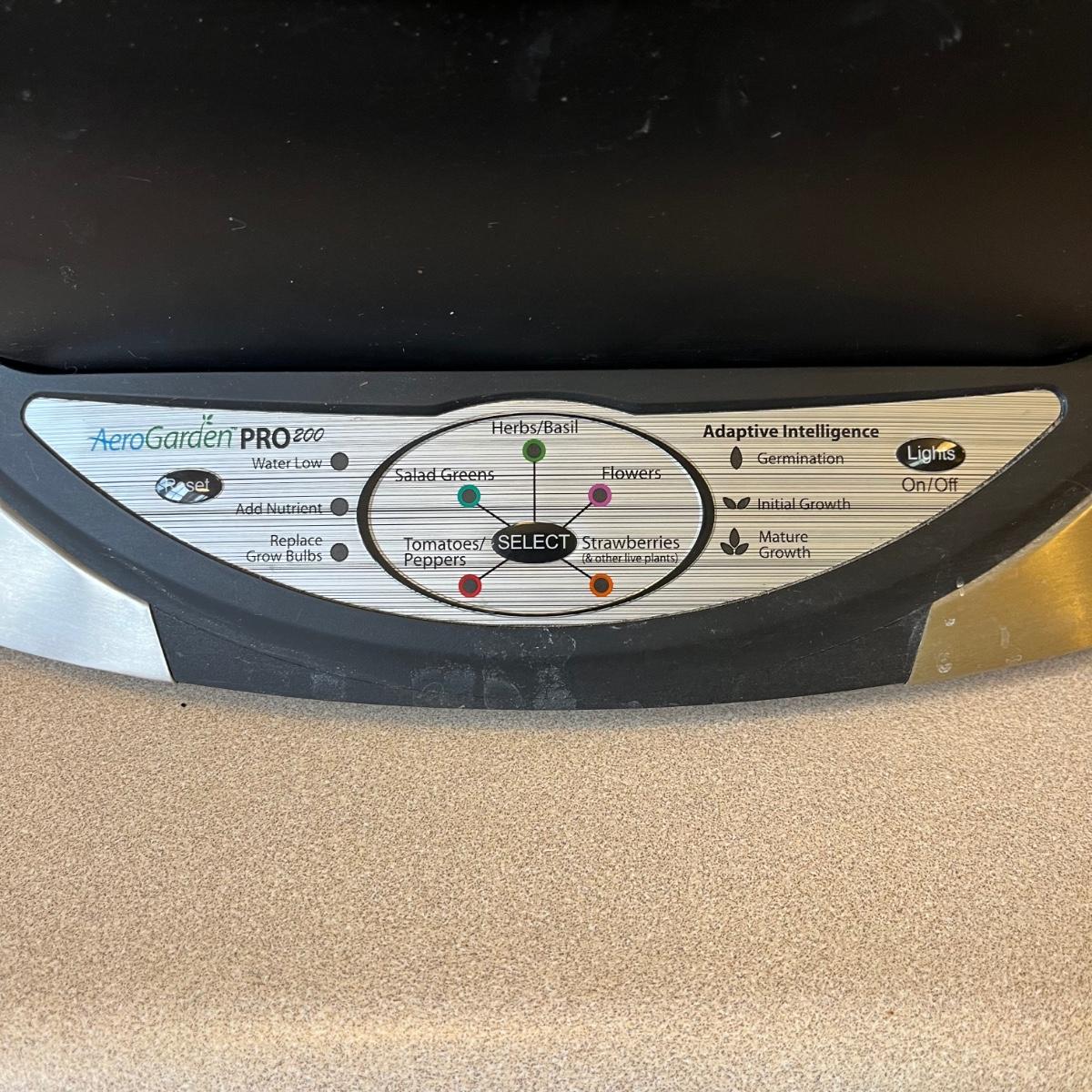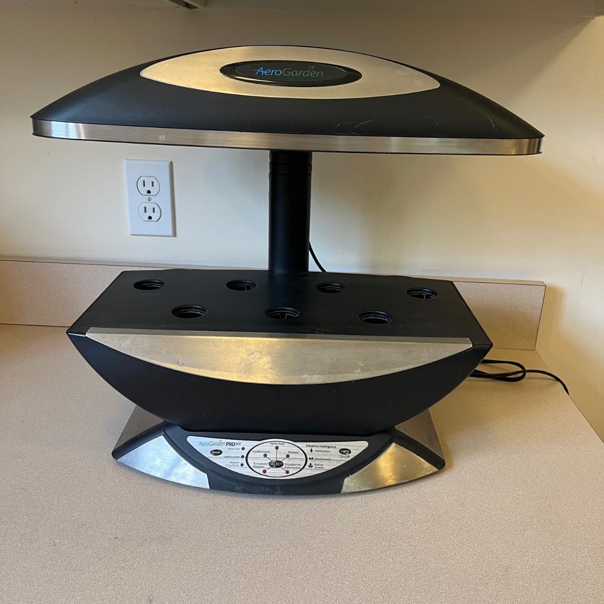 AeroGarden Pro 200 is an indoor hydroponic gardening system. It measures 16” x 11” x 16.5”H and powers up when plugged in. Shipping available.