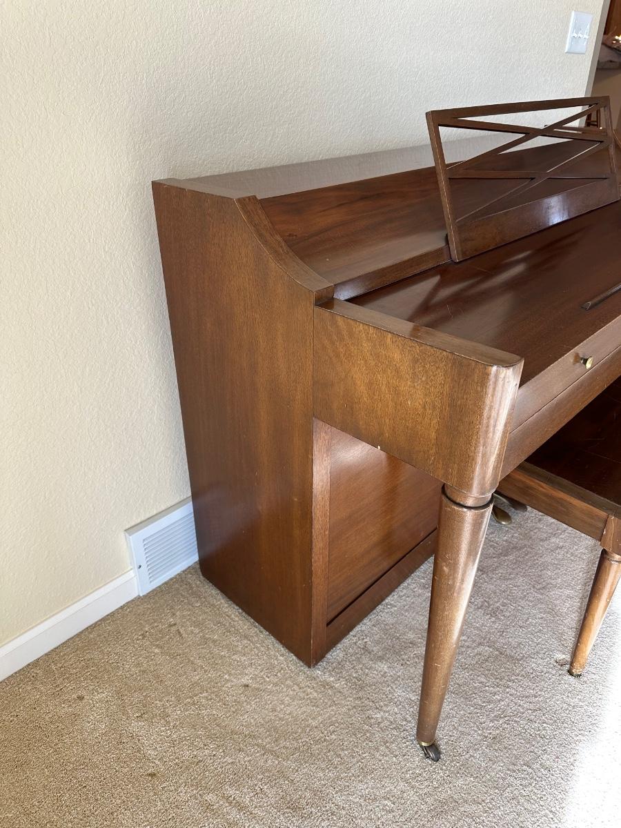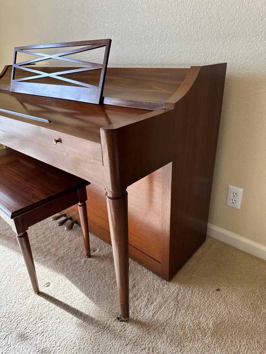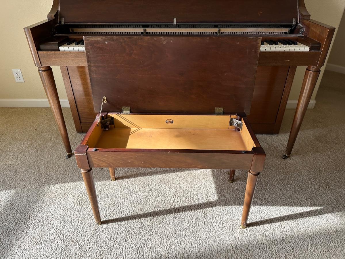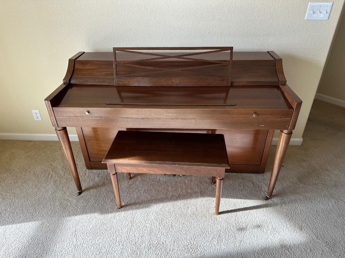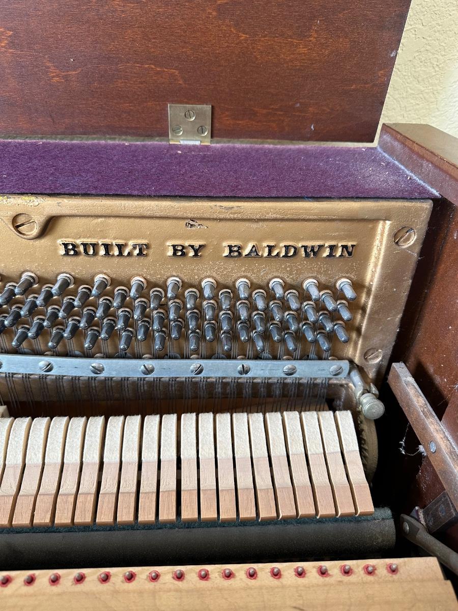 Antique aerosonic piano built by Baldwin. Comes with piano stool. Stool does have storage area under the seat.