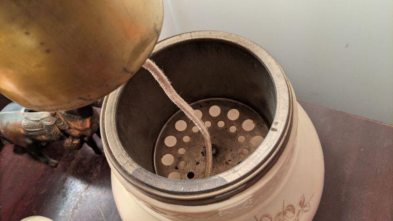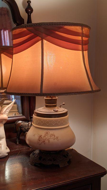 Aesthetic movement oil lamp converted to electric with Vintage shade (#43)