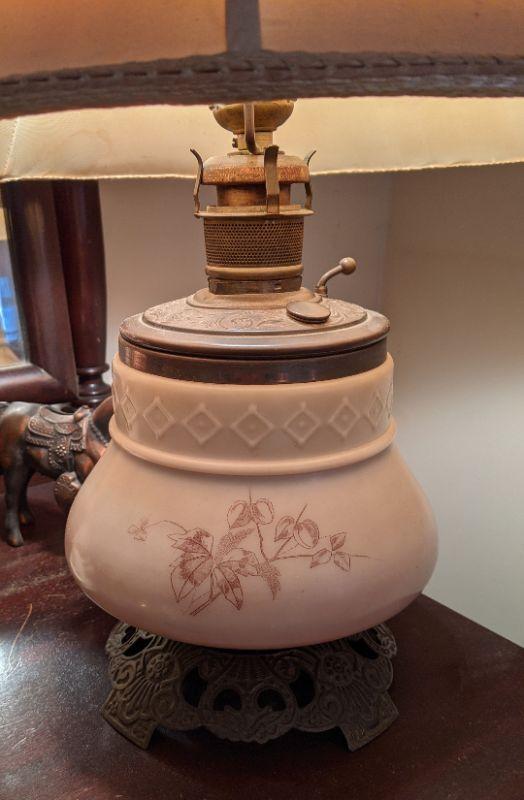 Aesthetic movement oil lamp converted to electric with Vintage shade (#43)