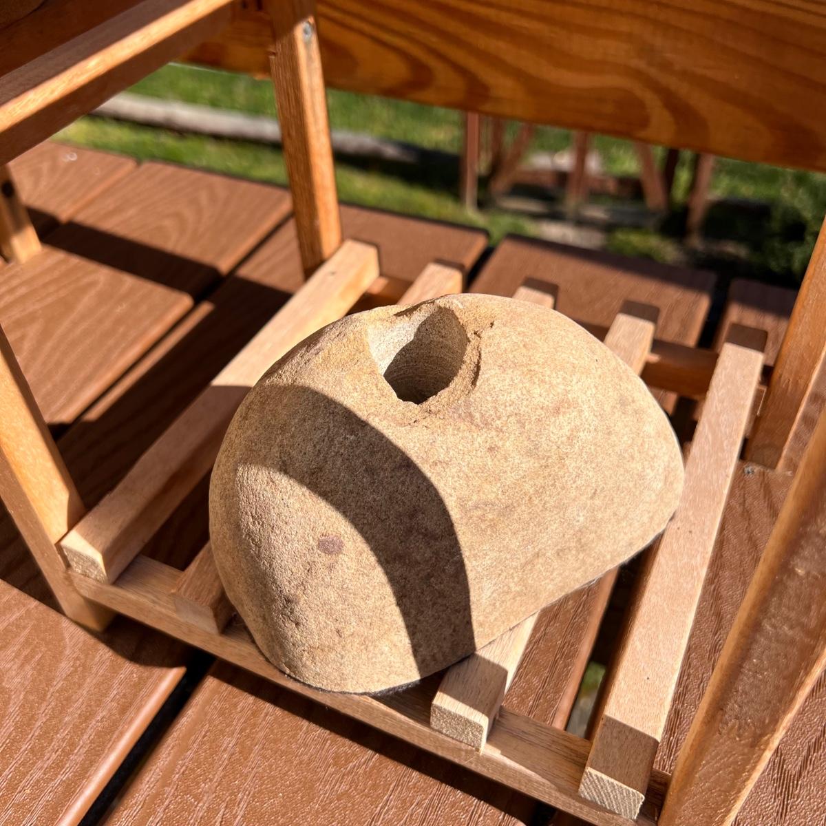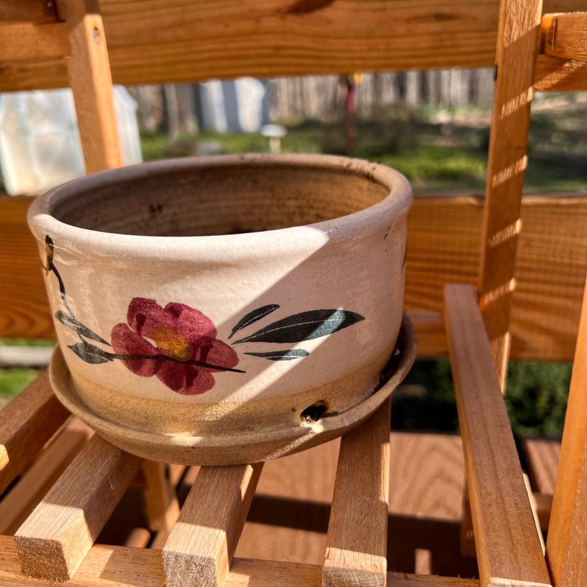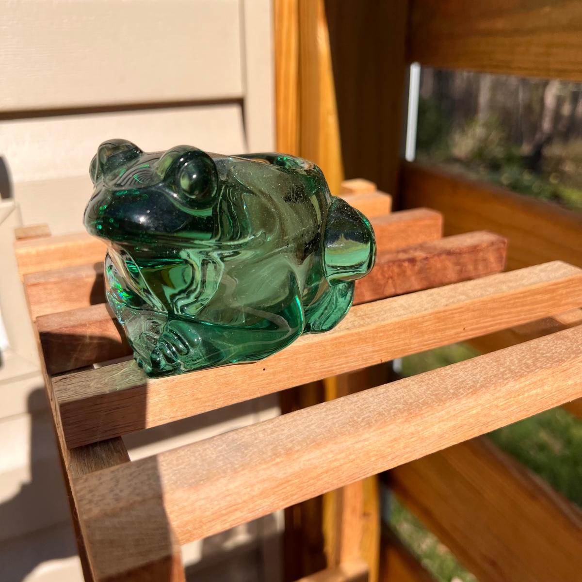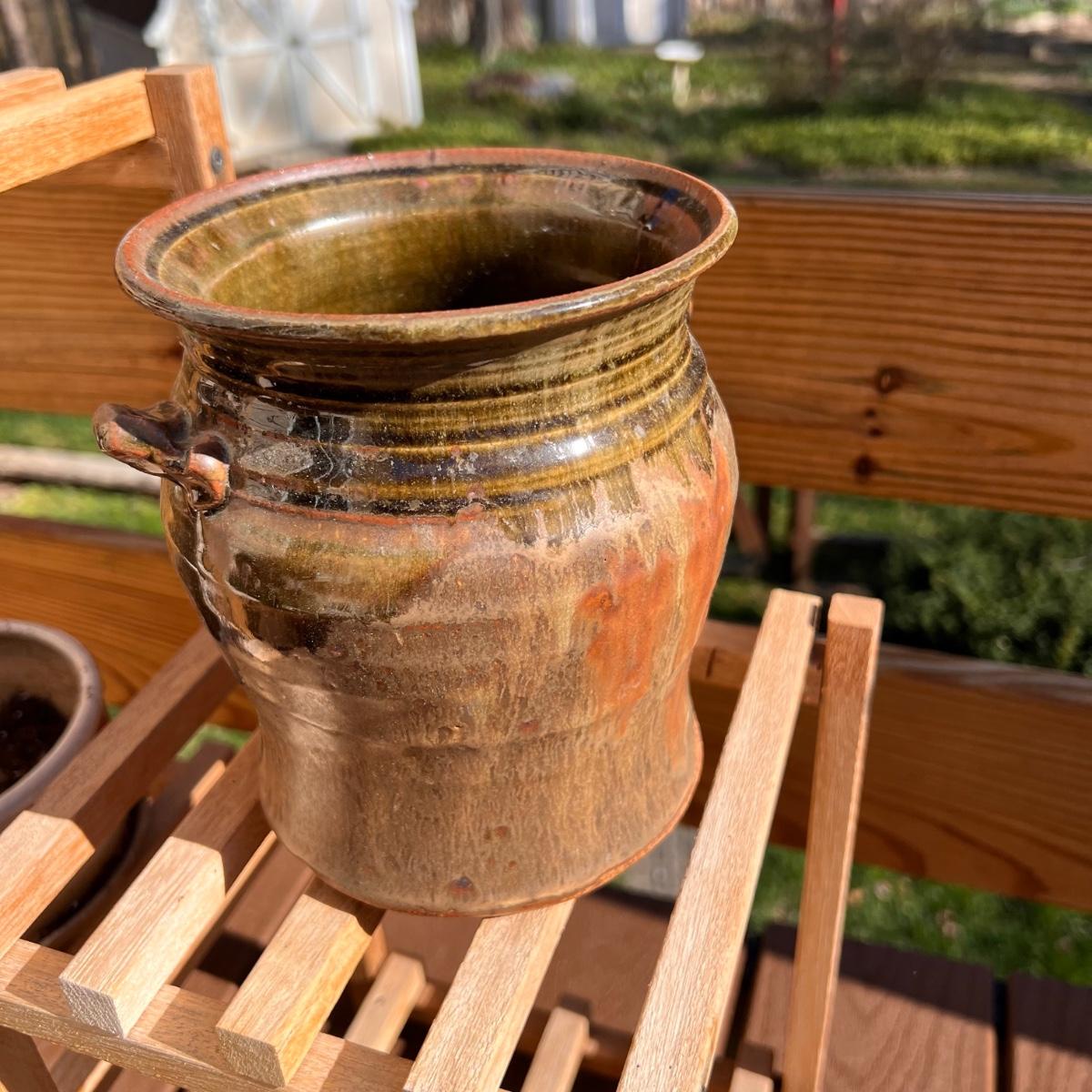 Vintage Chevy Chase milk bottle, stone vase or candle holder, glass frog candle holder, pottery planter bowl, pottery jug, wooden shelf