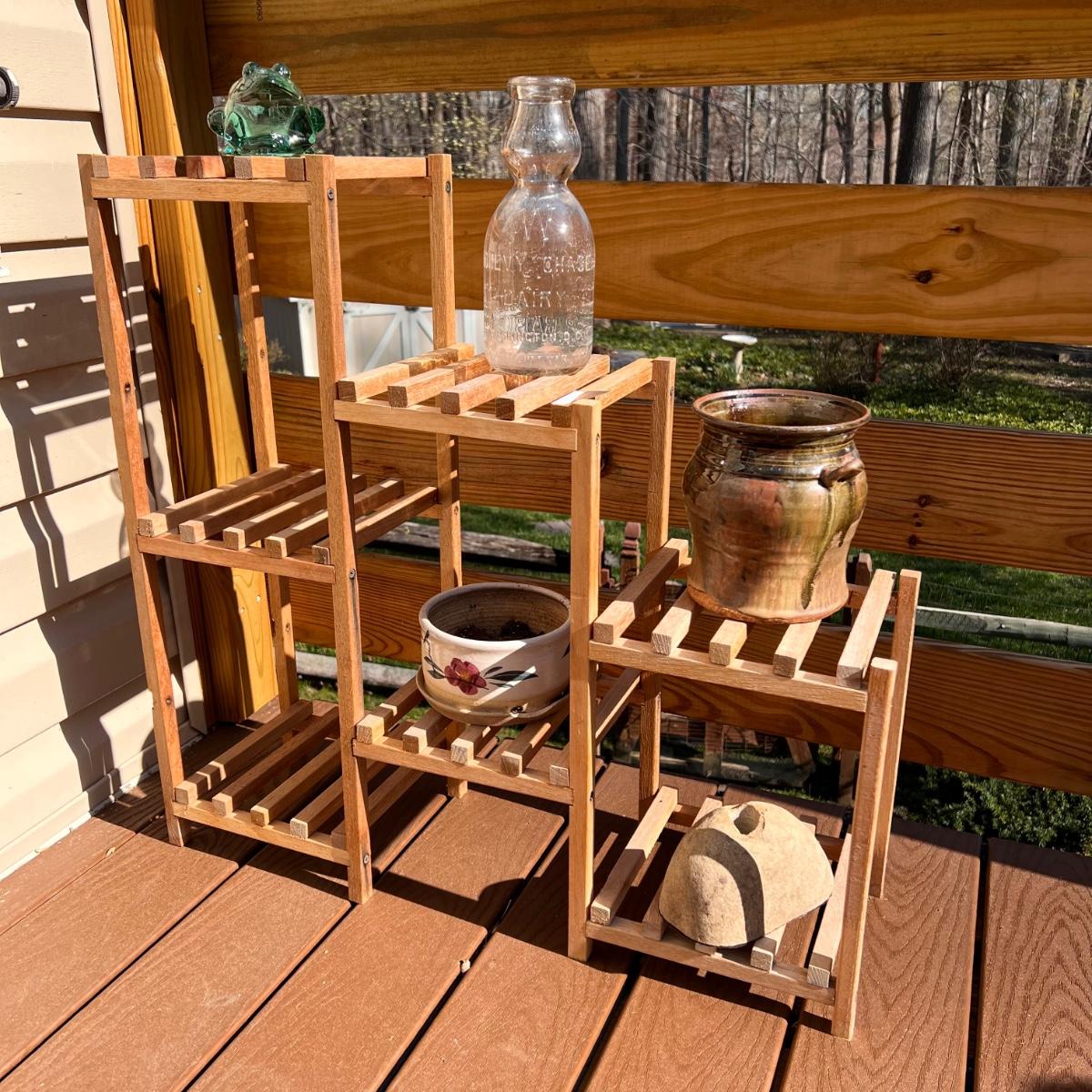 Lot Outdoor Decor - Vntg Milk Bottle, Planters, Shelf, etc.