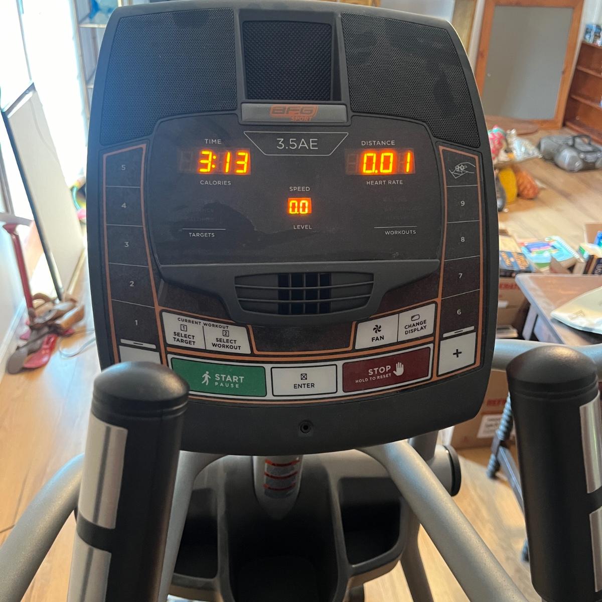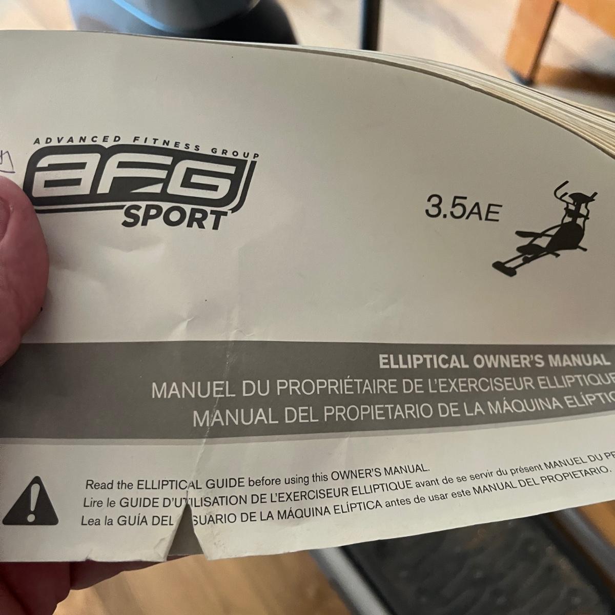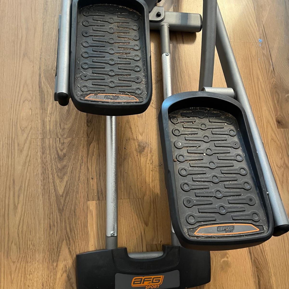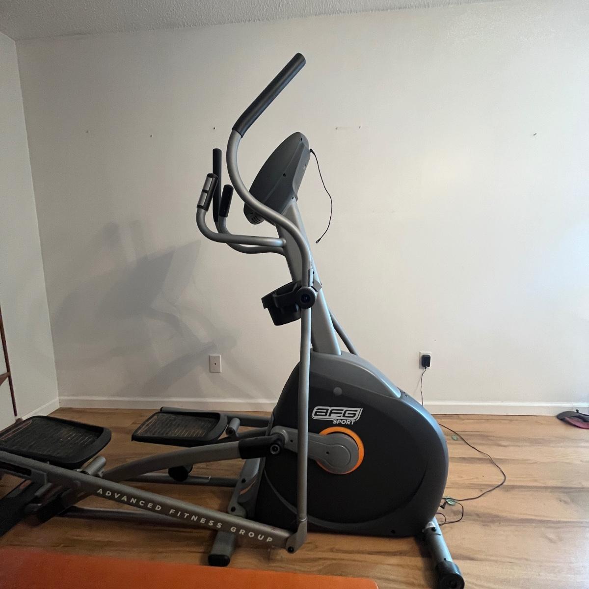 Lot includes a AFG Sport elliptical machine that powered on when plugged in. Machine measures 23” x 71” x 61”H.