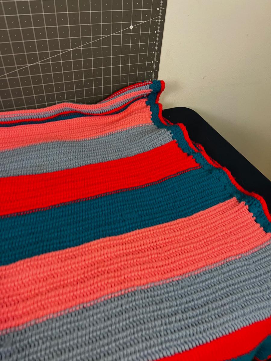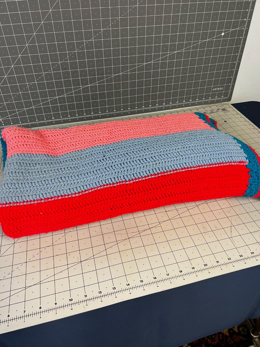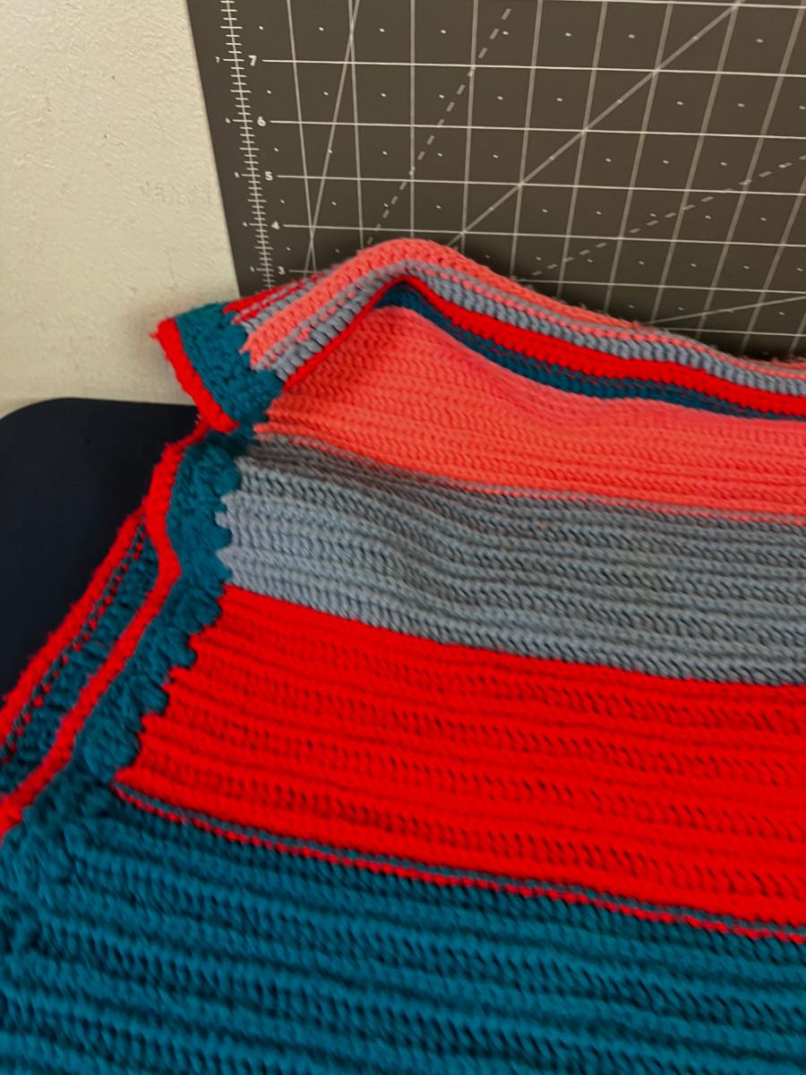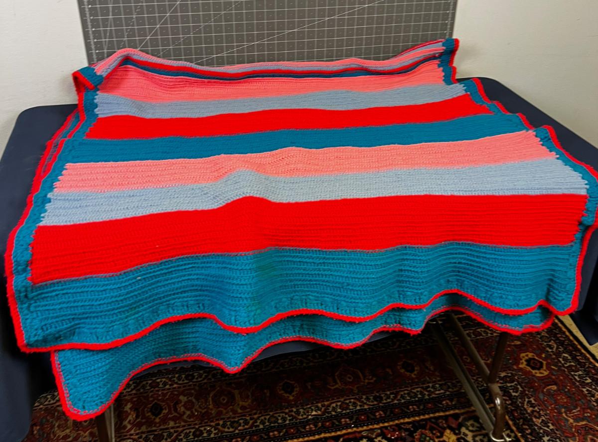 41" X 70". Turquoise Red Gray Pink. COOL actually.
