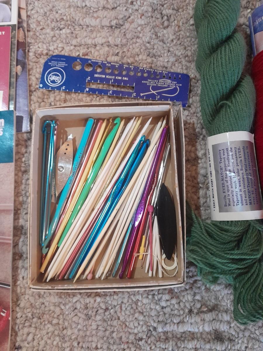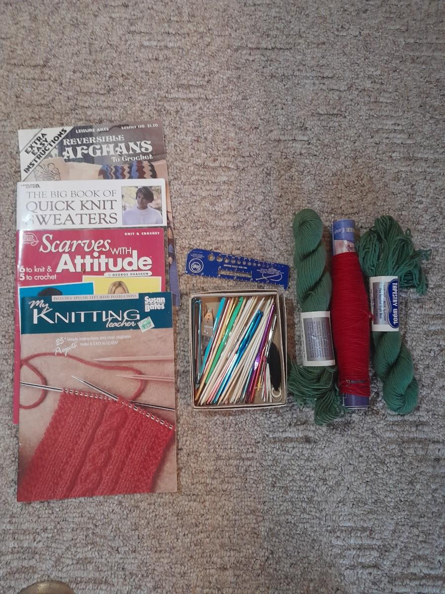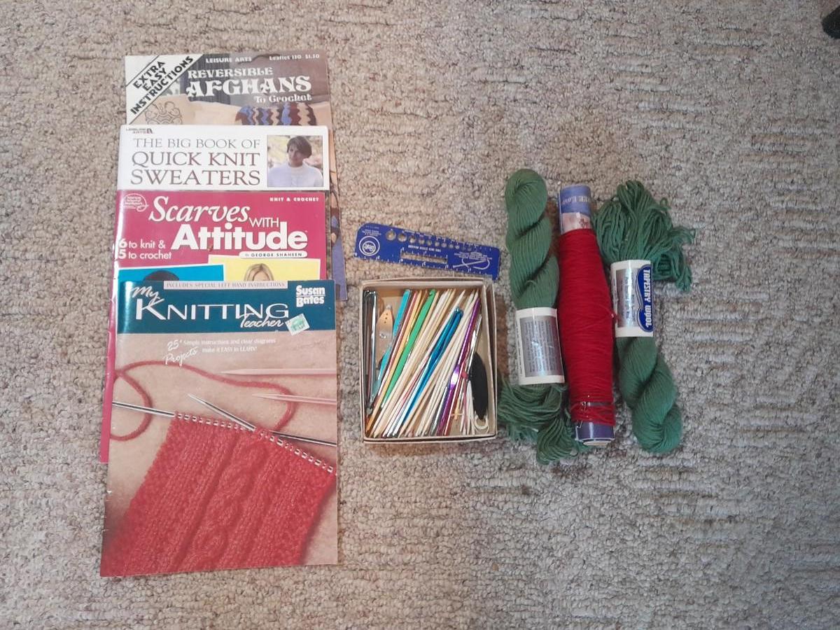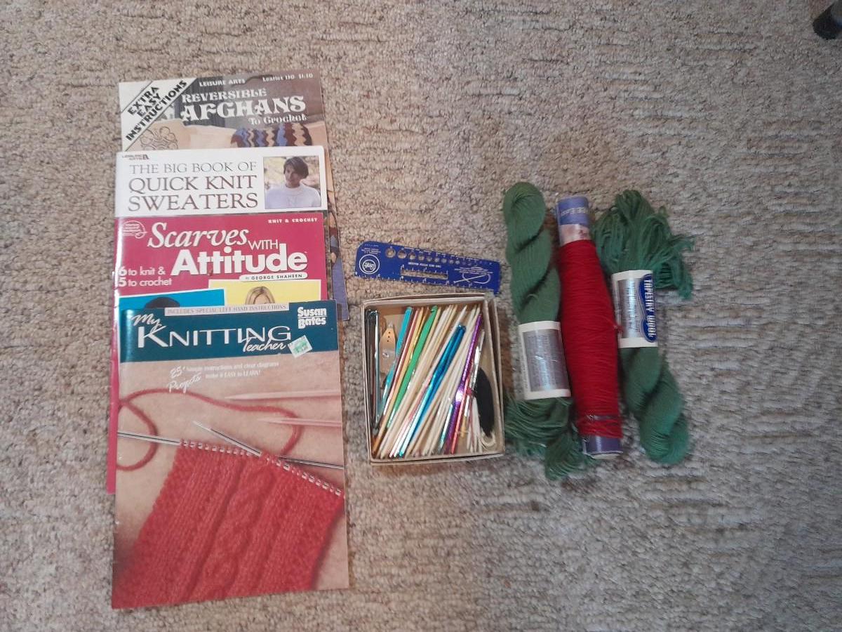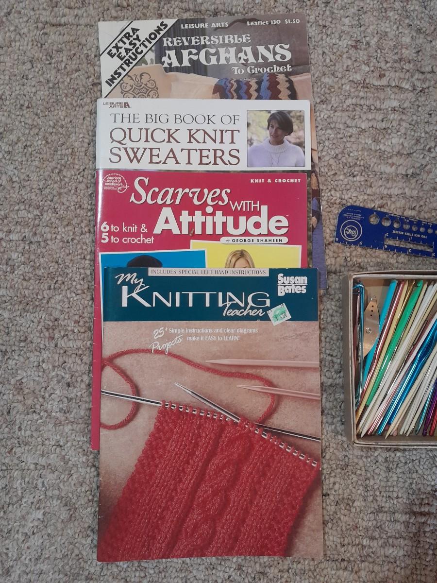 AFGHAN, KNITTING BOOKLETS WITH YARN AND CROCHET NEEDLES