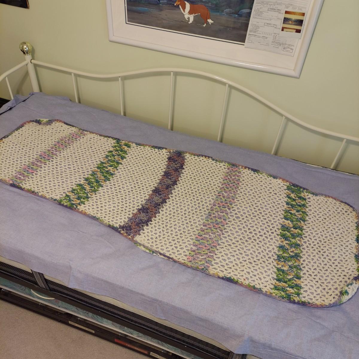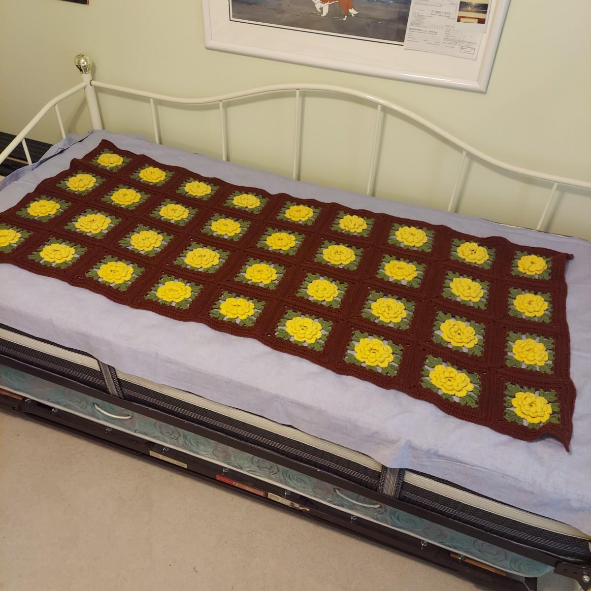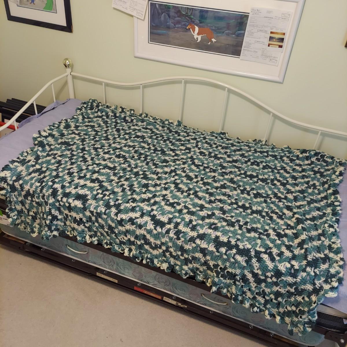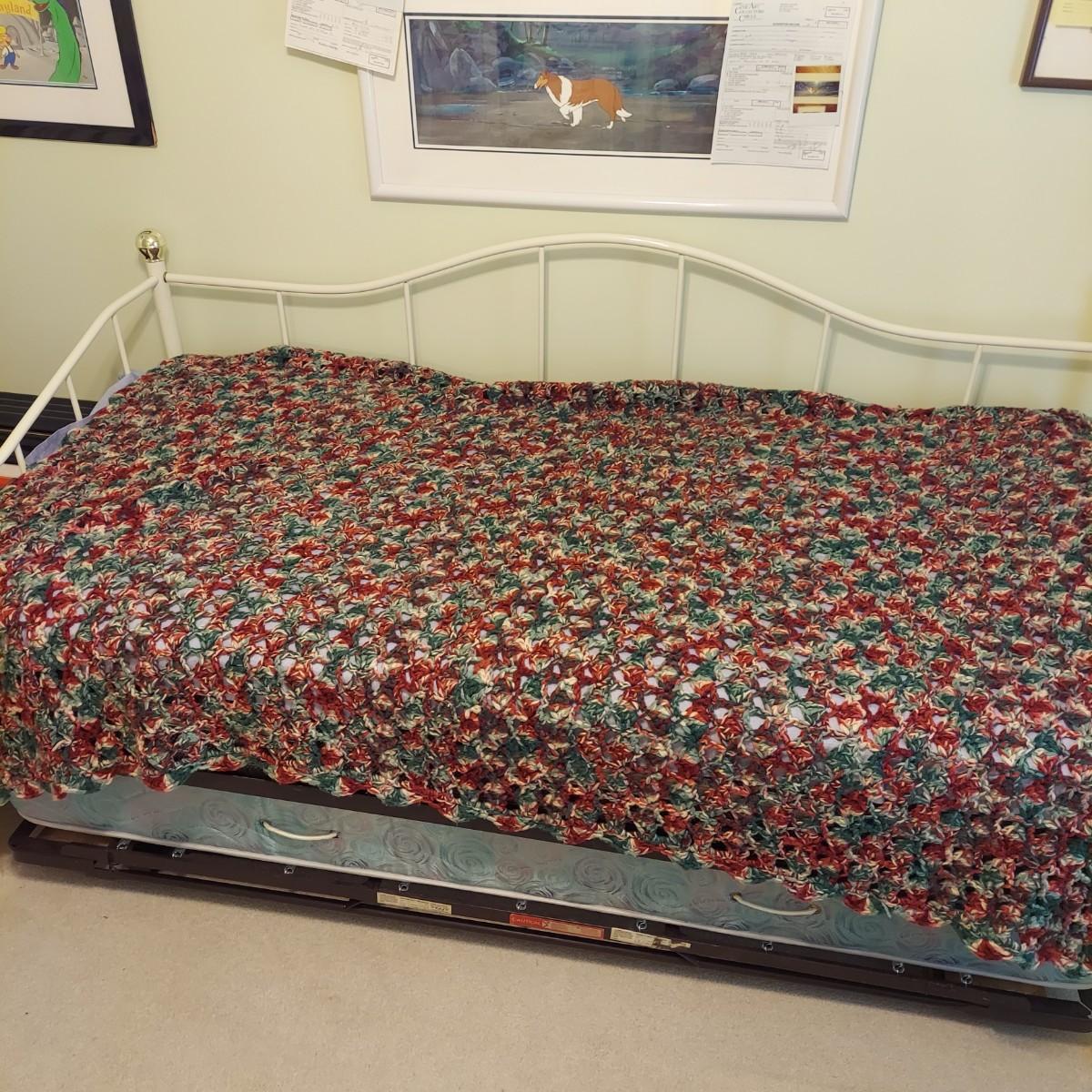 Four knitted afghan throws in various styles. The largest blanket is roughly twin size. The others are lap blankets. Shown on a twin bed. Please see photos for details. Shipping available.
