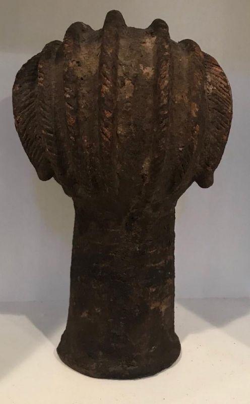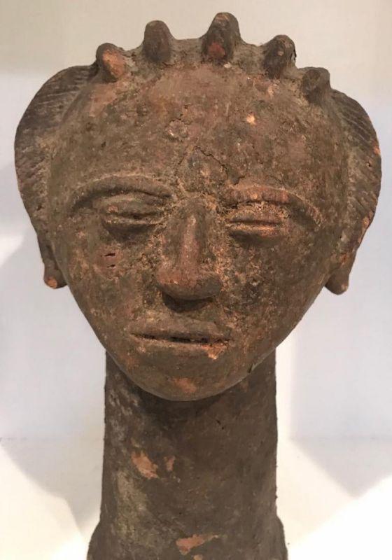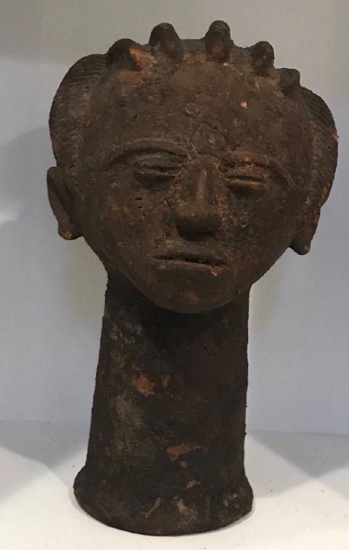 Description: Early 20th Century Africa Ghana female facial with hair breads statue . Measurement approximate:16 H X 7 W (Inches). Material: Robust Clay. Shipping cost: $50. except to California, Alaska & Hawaii