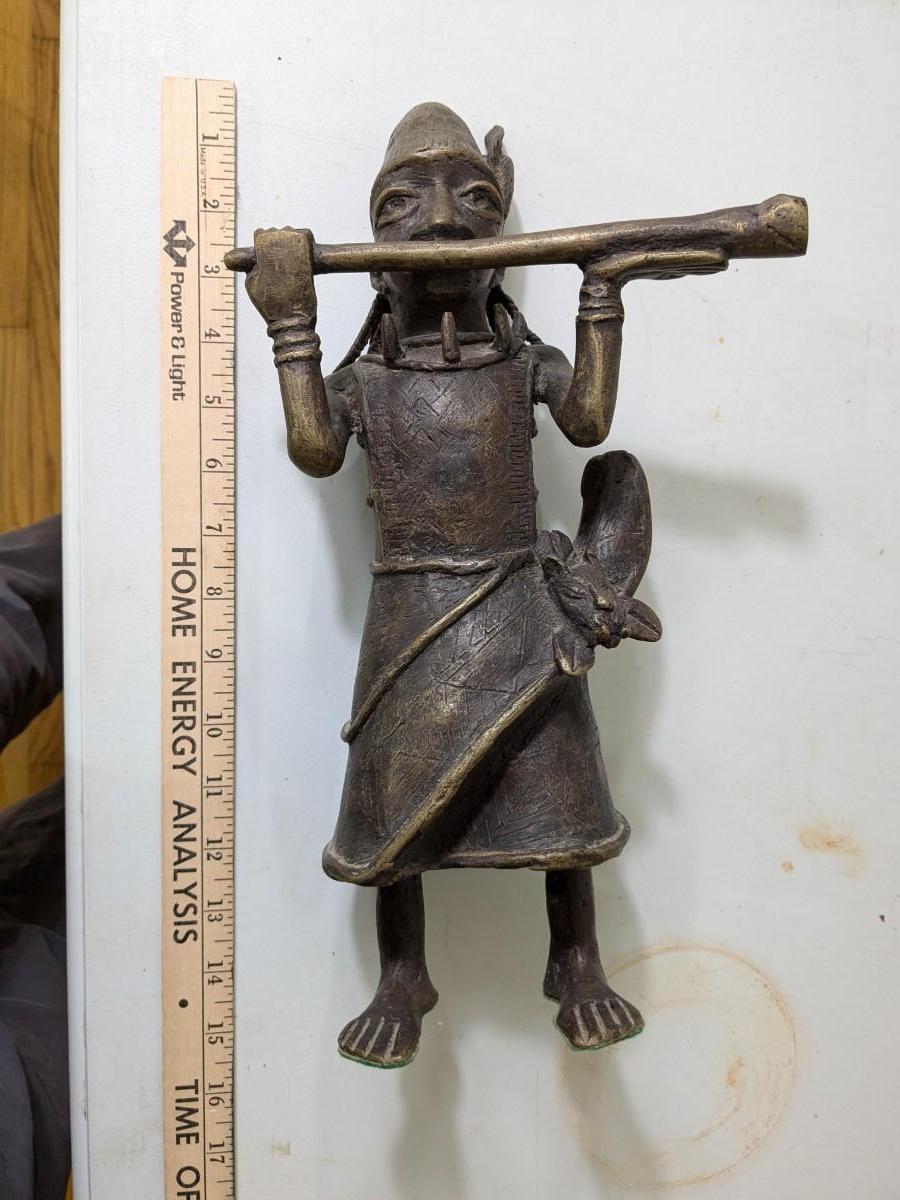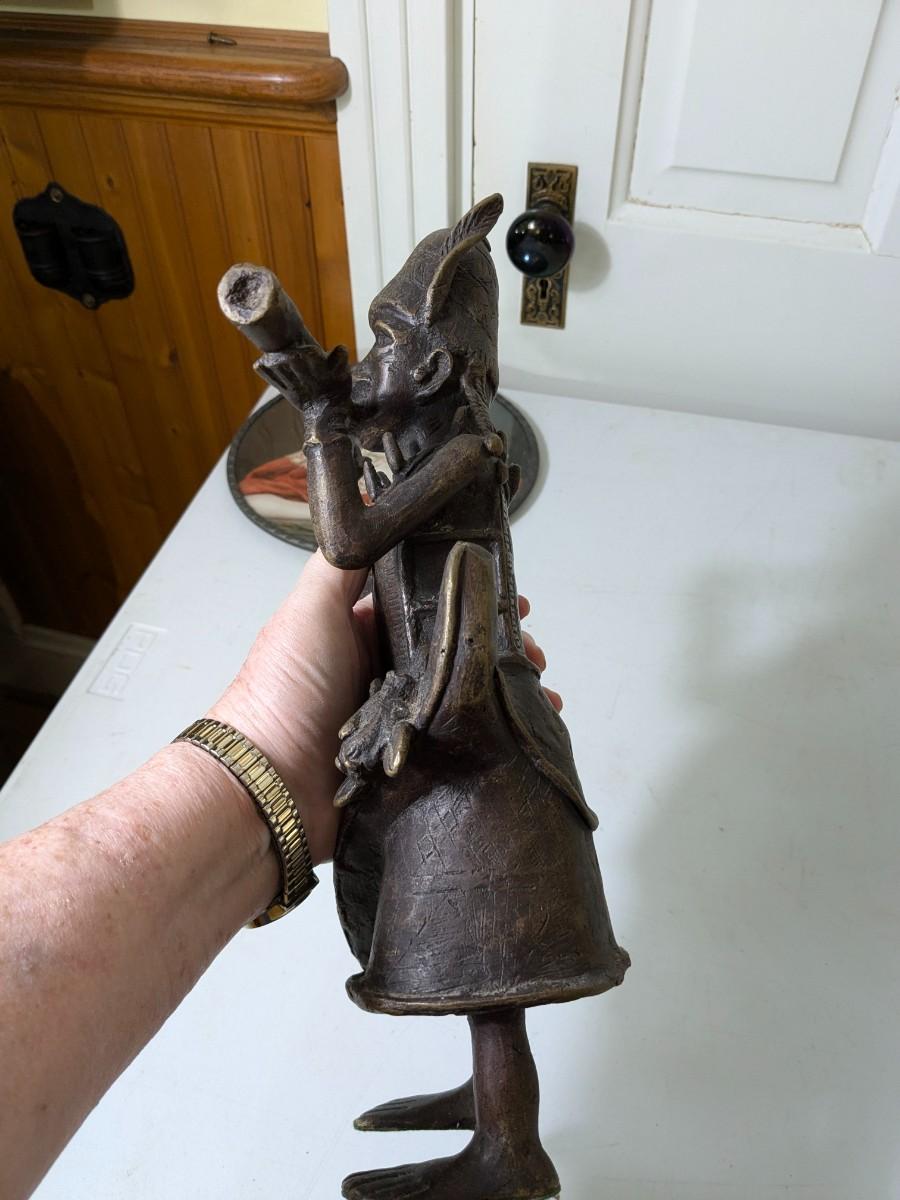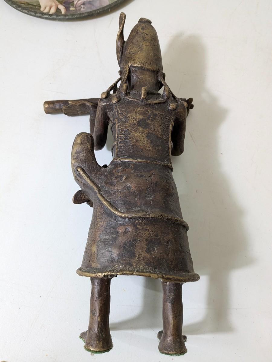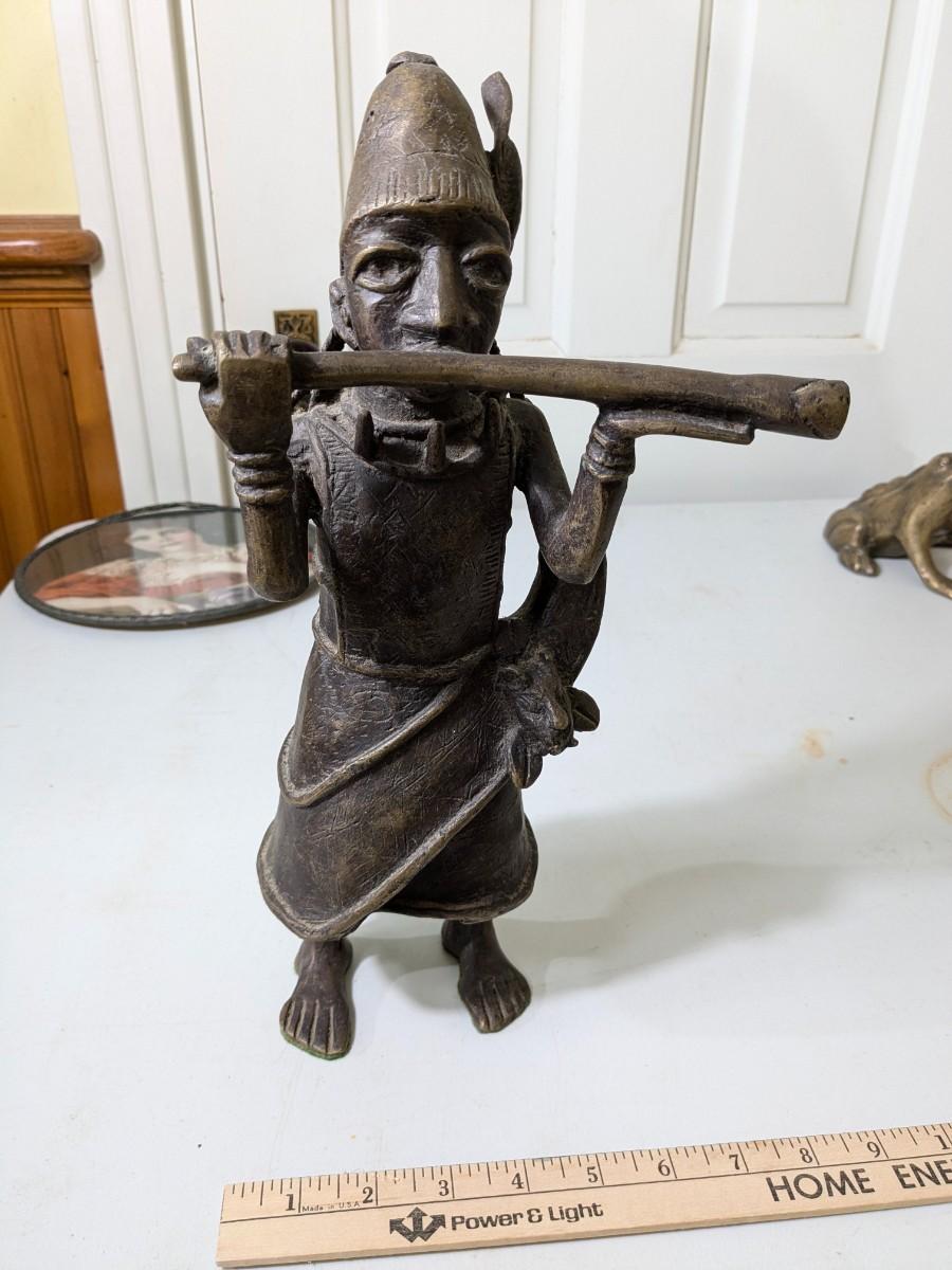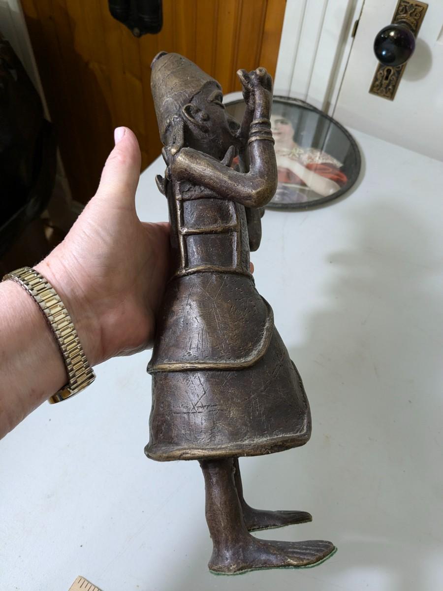 AFRICAN BRONZE, Rare Late 1800's Benin (Nigeria) City Bronze Court Musician of the Hornblower.
