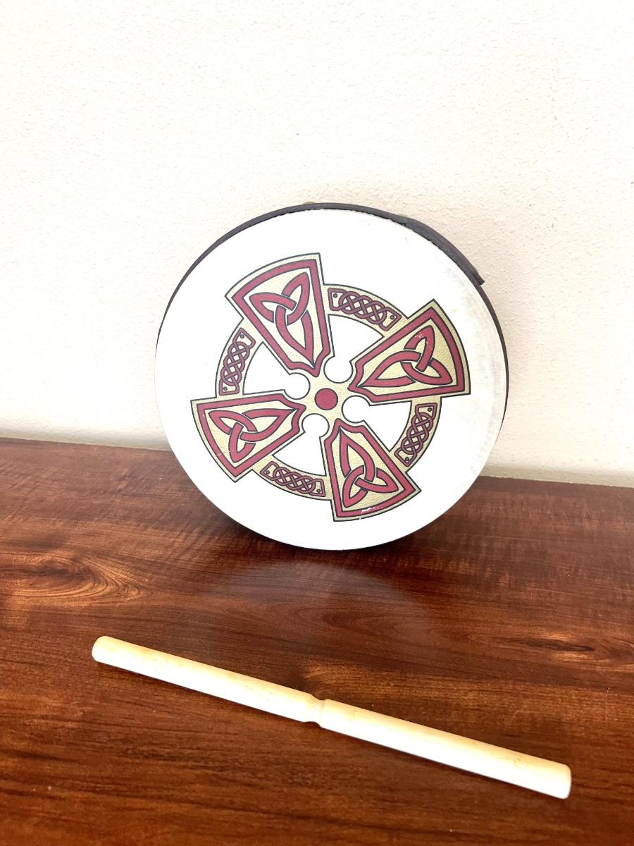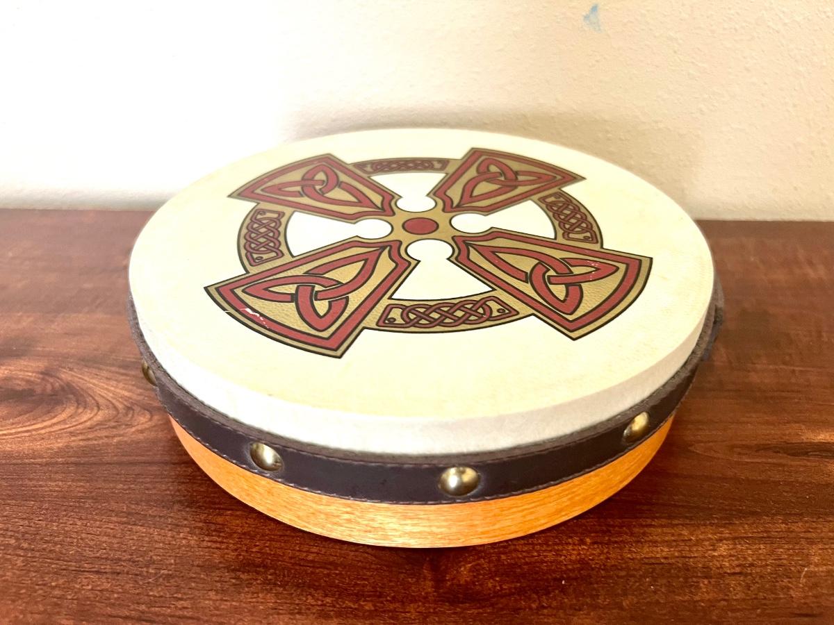 Irish Kilkenny Cross Design Irish Bodhran measures at 8 inches round.