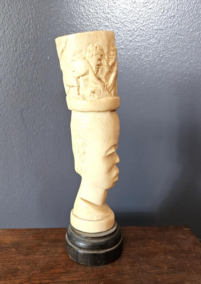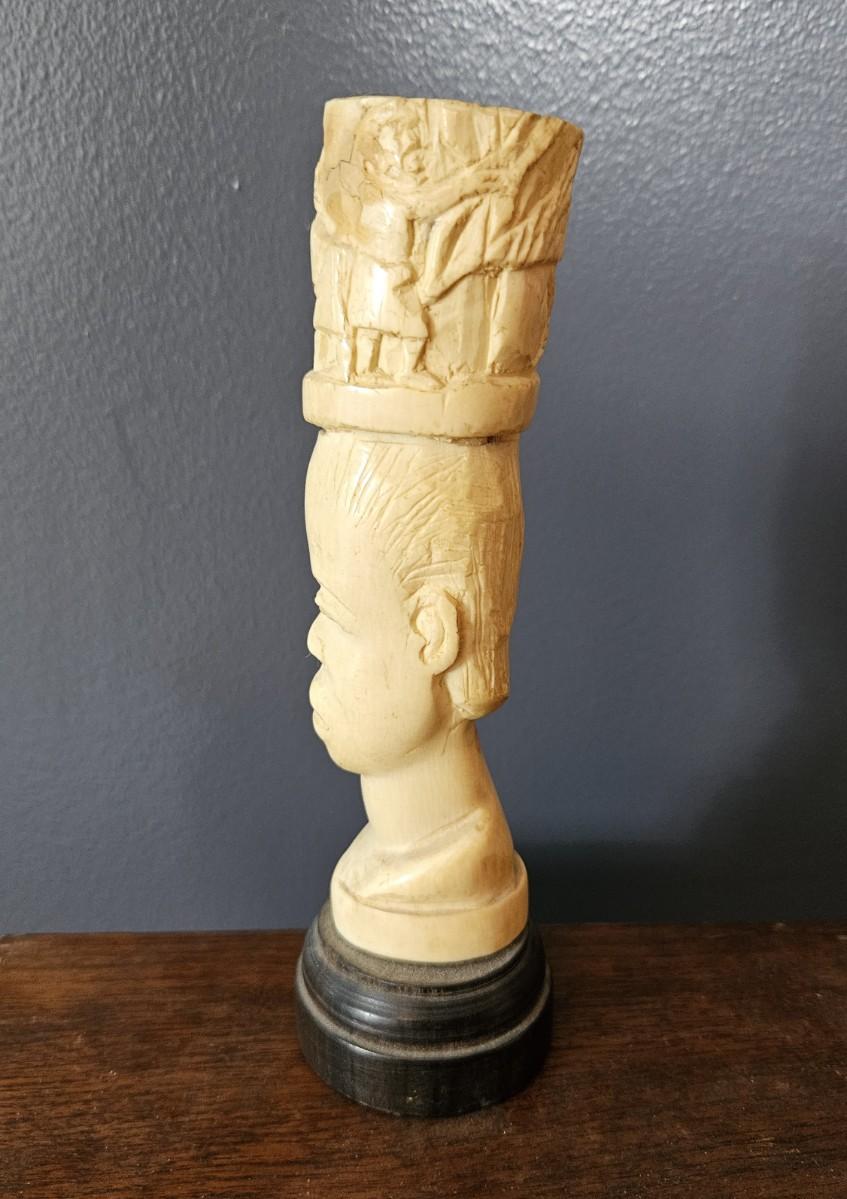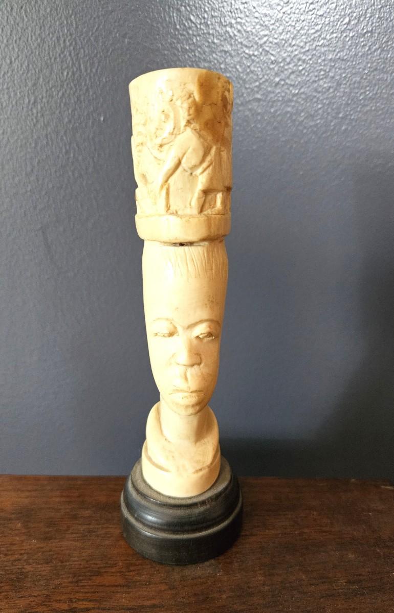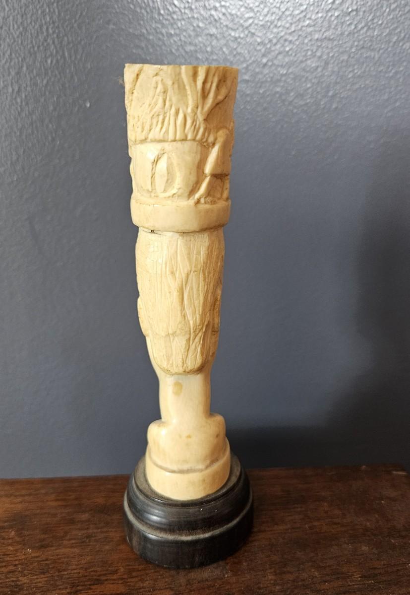 African Carved Ivory Vase on a Stand, 6 1/2 H