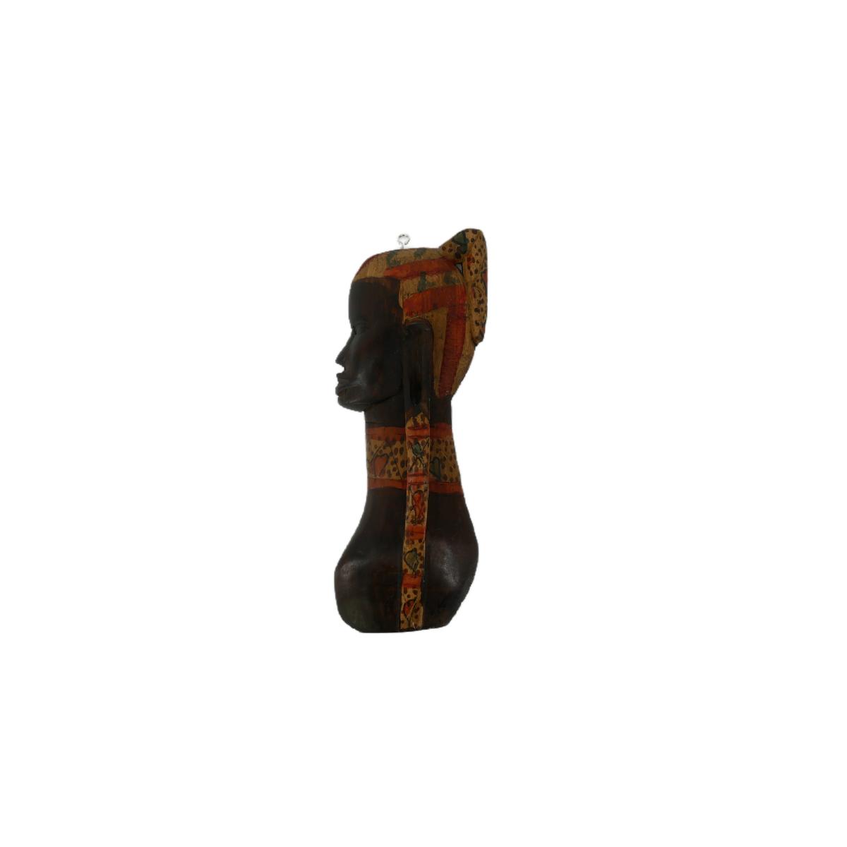 Hand carved and hand painted wooden side profile of figure, made in Kenya, Africa. Excellent condition, no issues found. Measures L 4.5" x H 11.5" x D 1.5", weighs 10 oz. (D68)