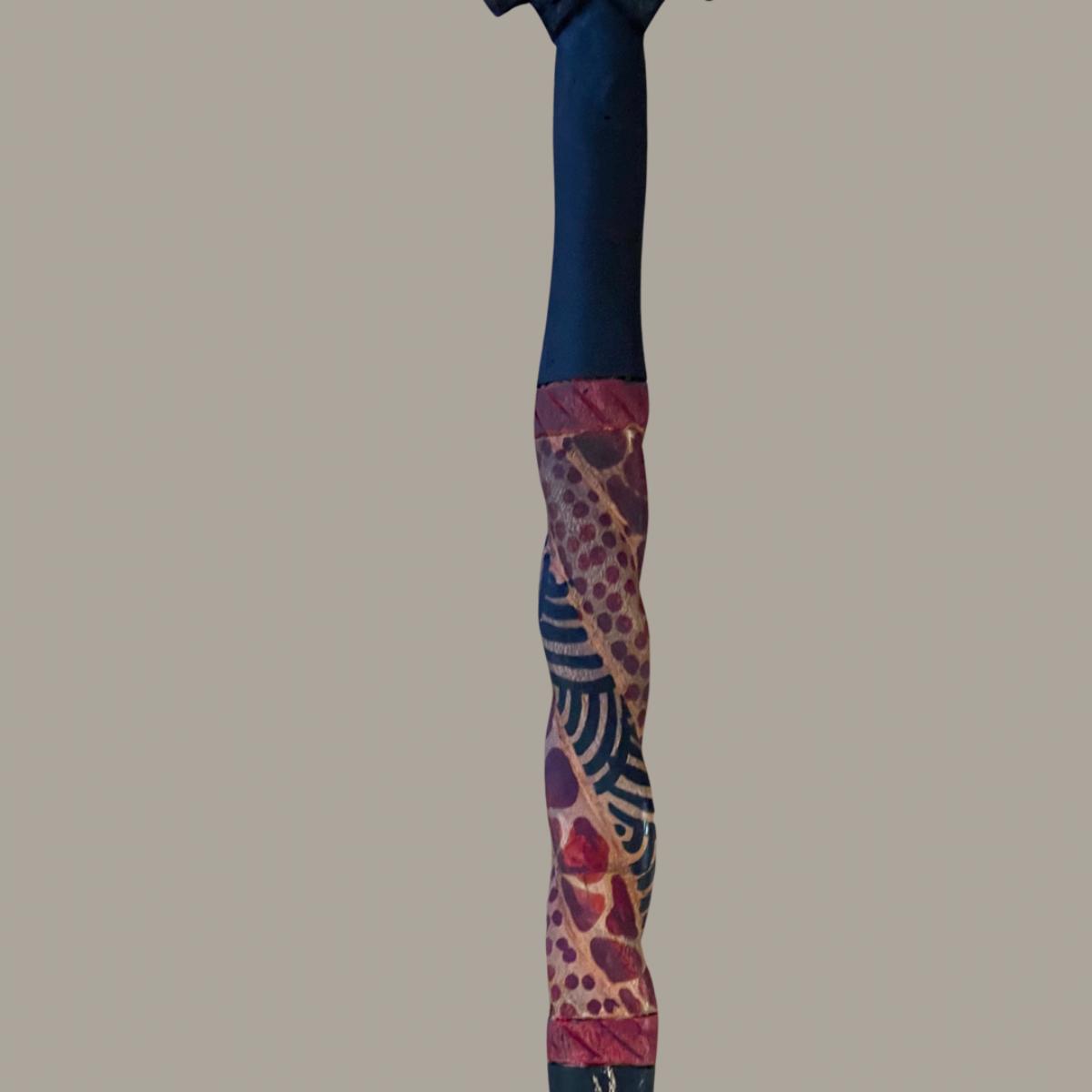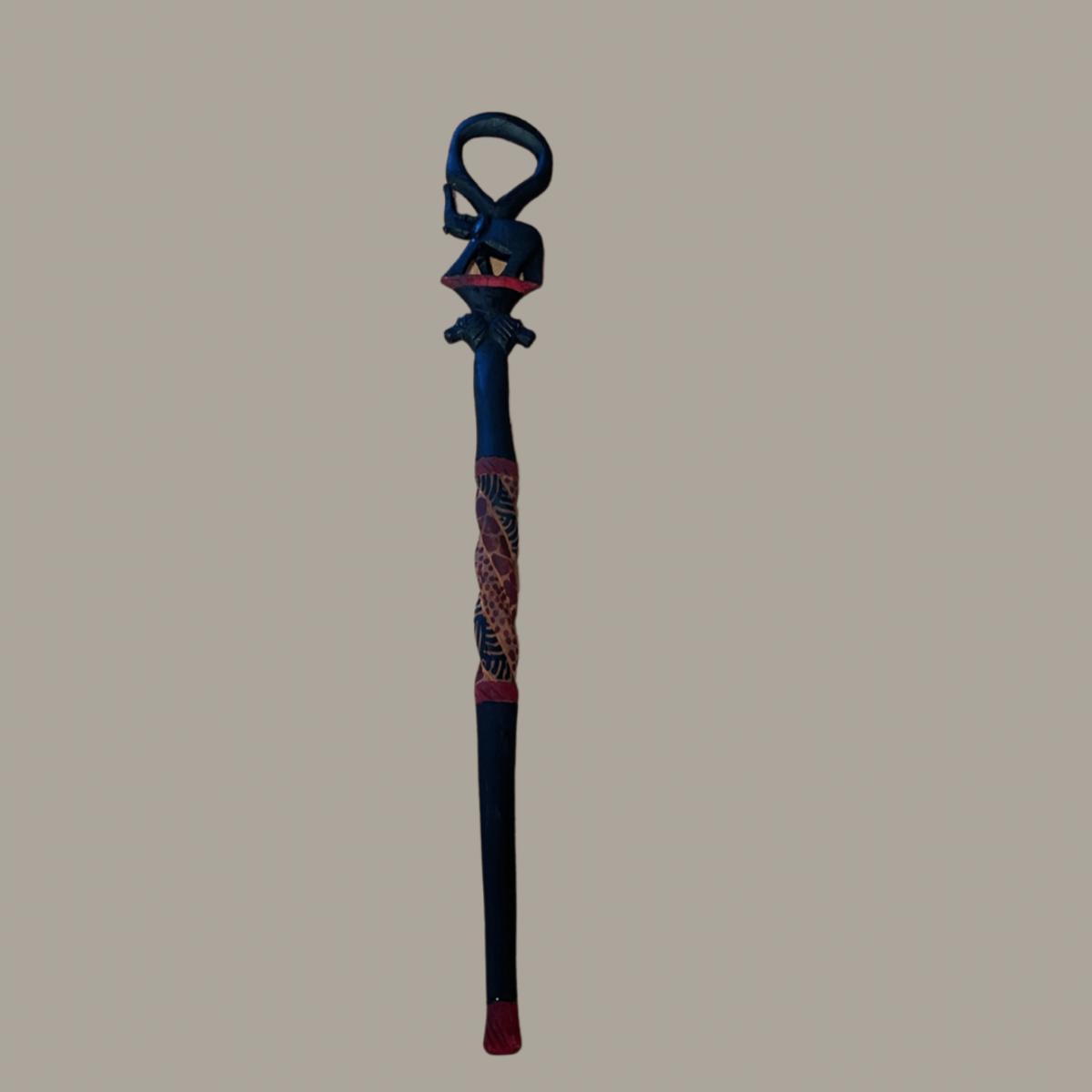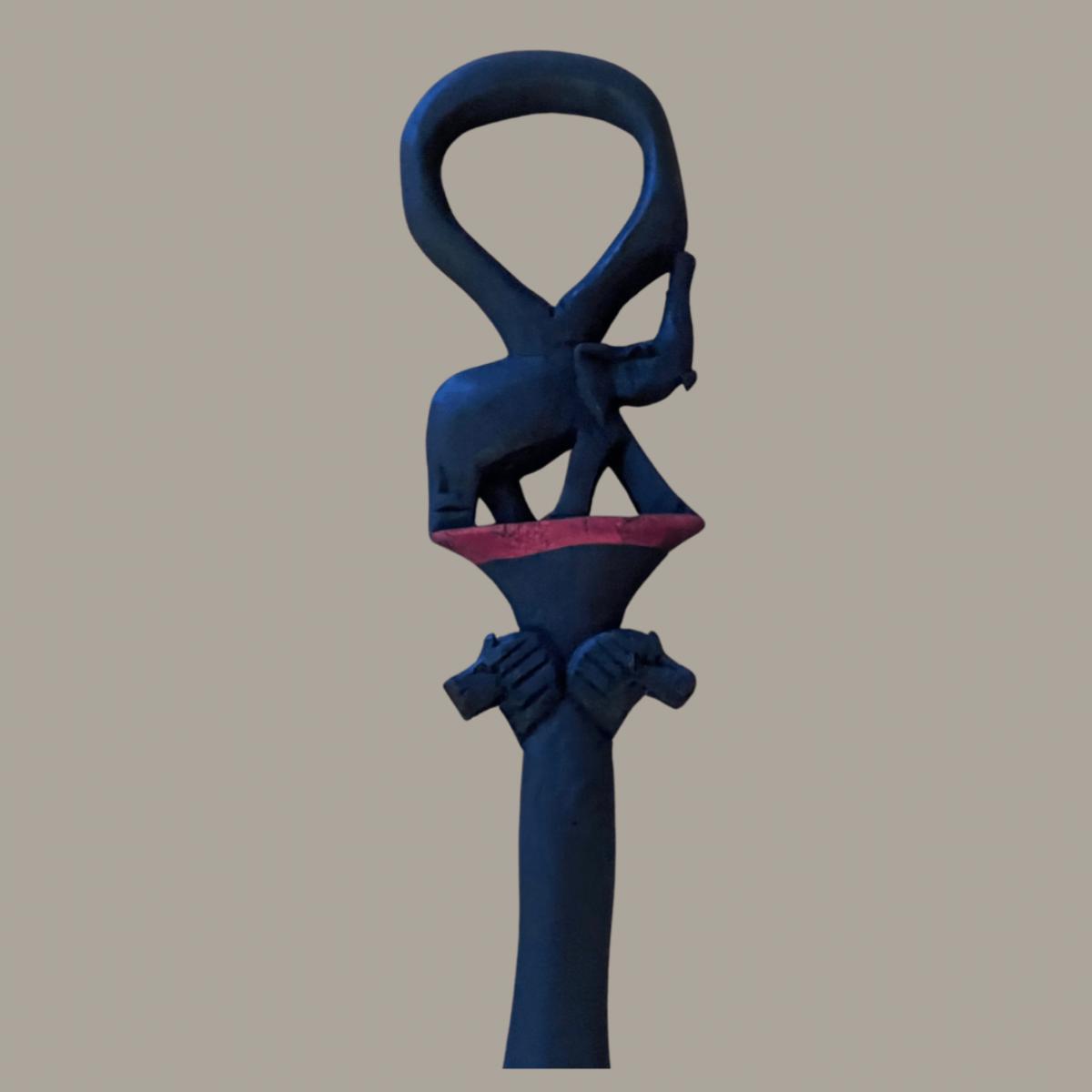 This piece is spectacular. It has an elephant at the handle and the middle of the cane is all carved. It measures 35"