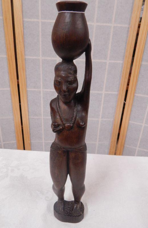 African Fertility Statue - Woman Carrying Jug on Head - 17-1/4" Tall