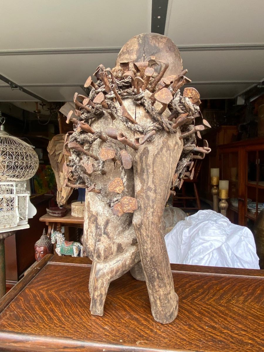 AFrican fetish monkey sculpture with nails, rope and made of wood. 20" high