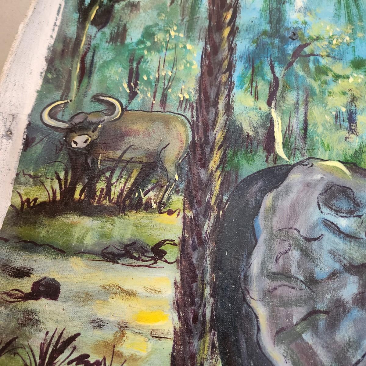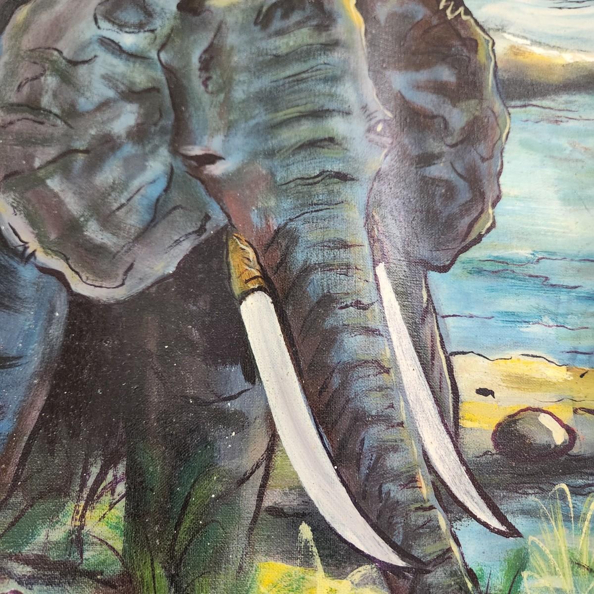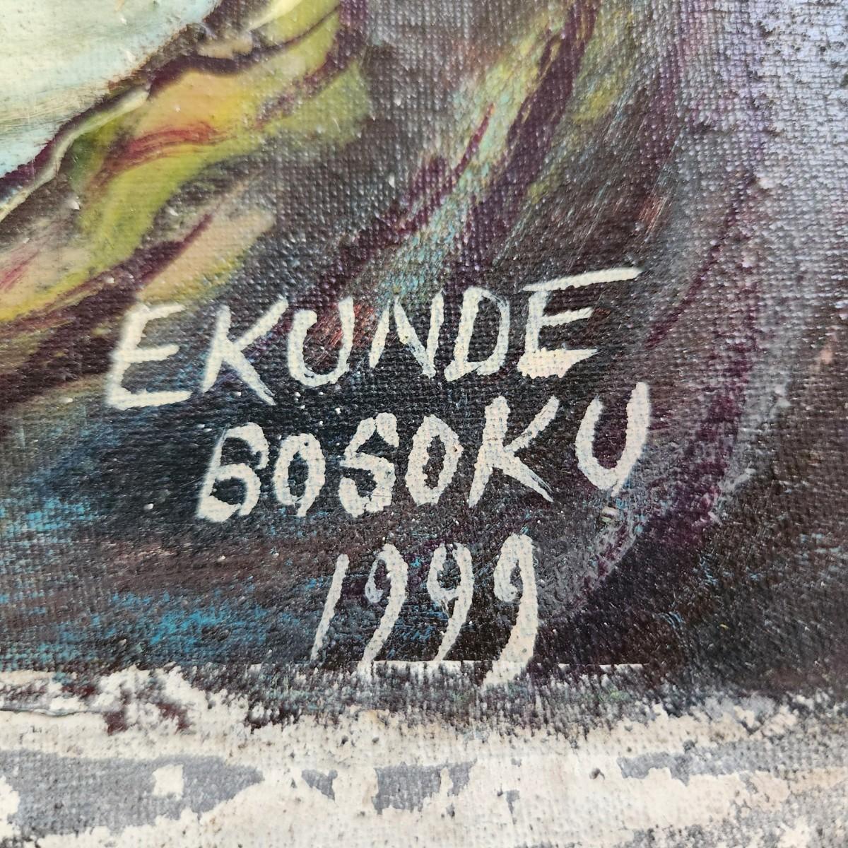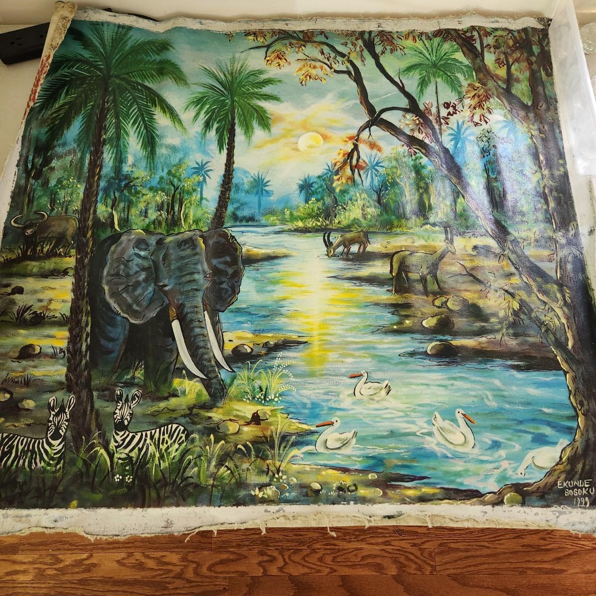 African Oil on Canvas Animal Painting by Ekunde Bosoku 37x33