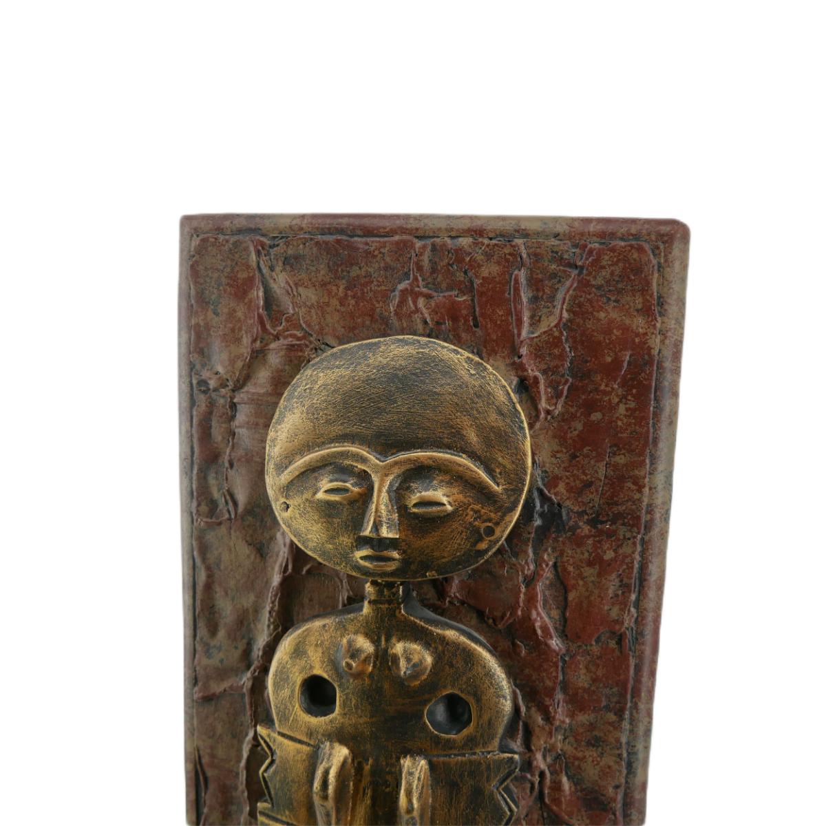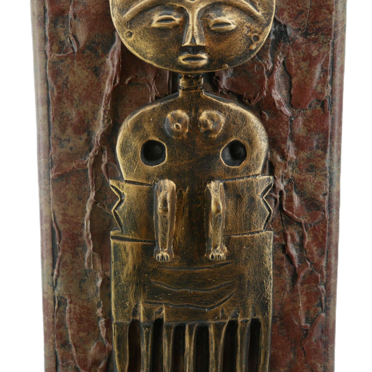 African style wall plaque with depiction of female figure. Made of plaster, good condition. Chip on back bottom (see photo). H 24" x L 10" x D 2.5". Weight is 9 lb 8 oz. (D85)