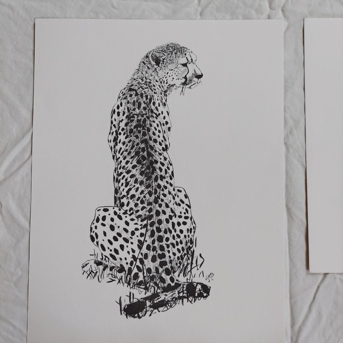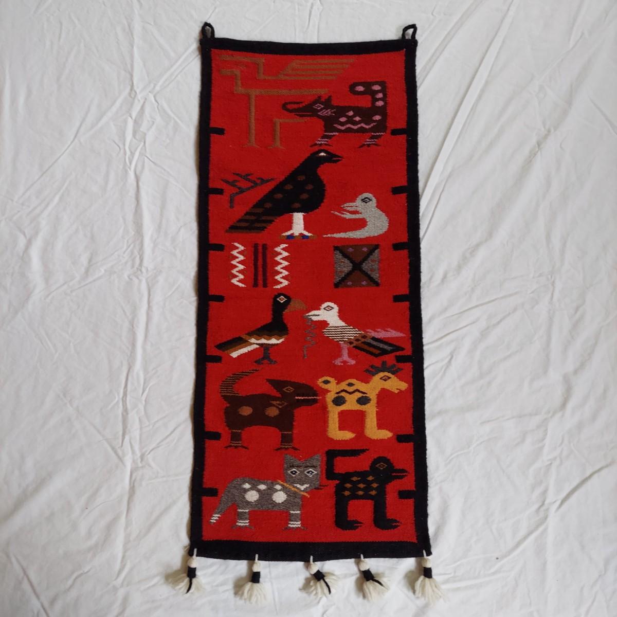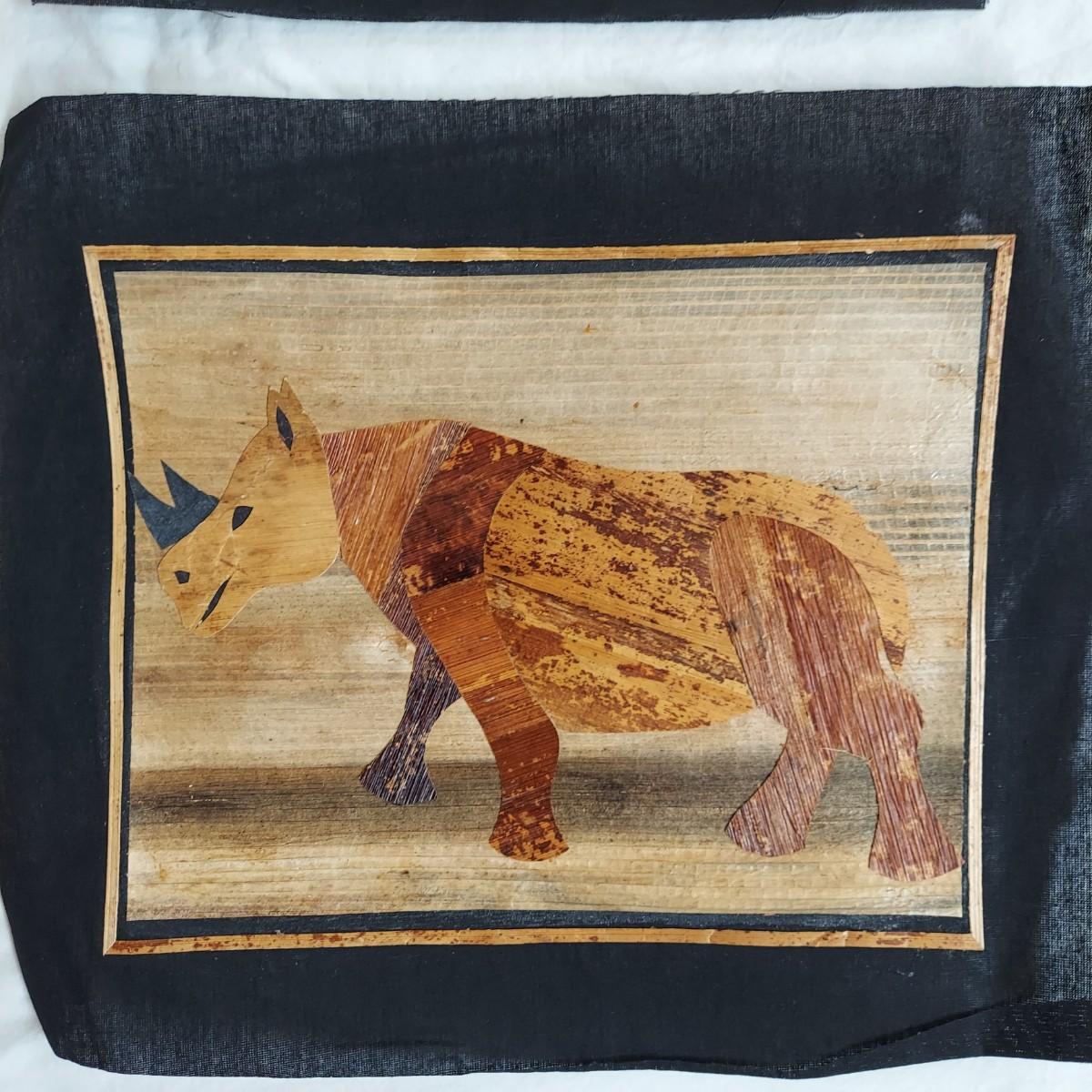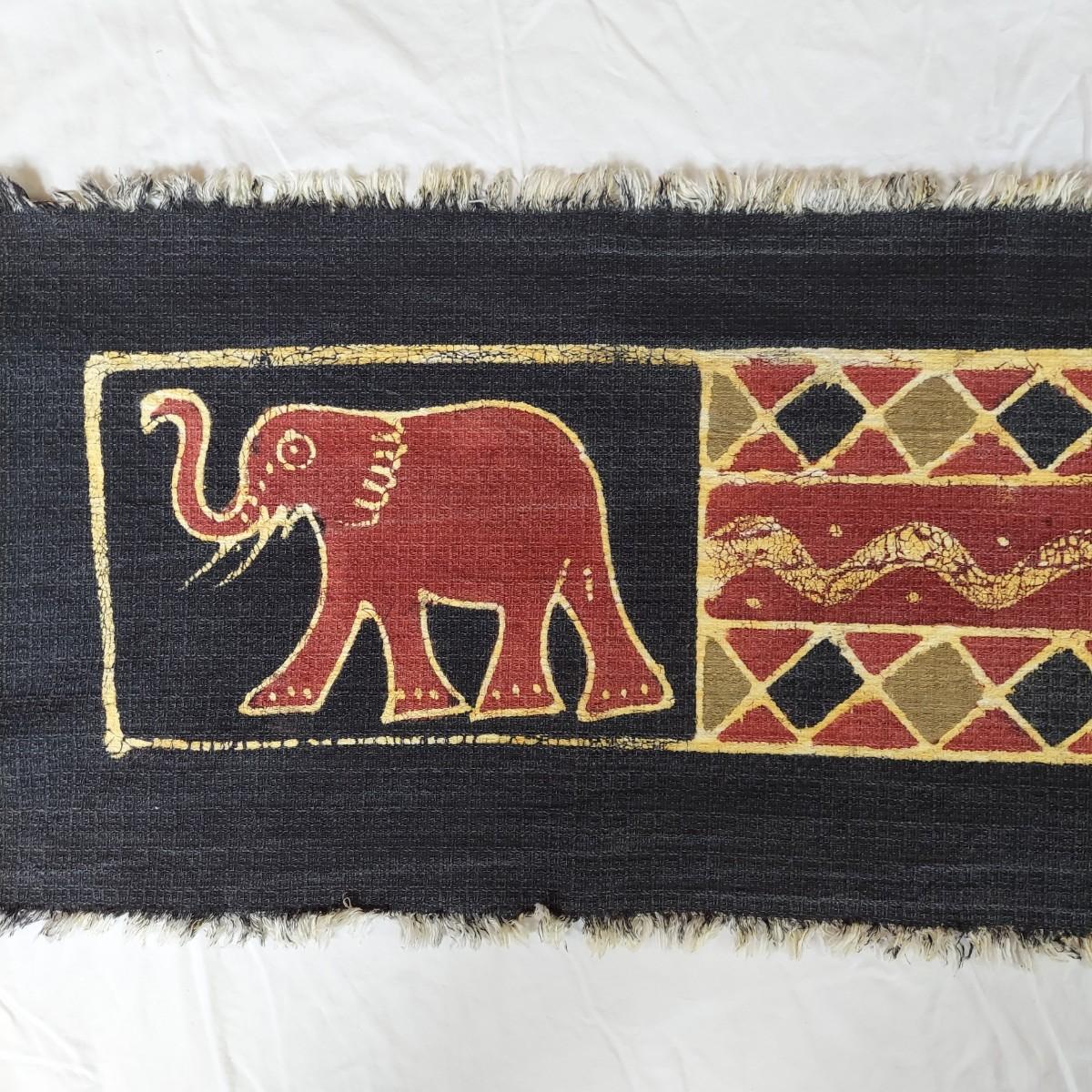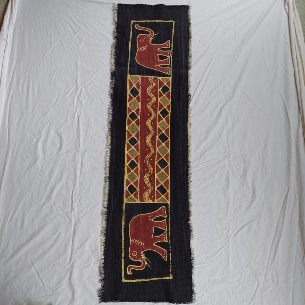 Various types of African art. There are six cloth tapestries in varying sizes. The smallest is the red Egyptian tapestry. It measures approximately 37" x 15". The largest is the blue batik style cloth and its approximately 57" x 34". There are six pen and ink drawings of animals. They measure 10" x 13"H. There are eight art pieces made of cloth, wood and paper. They're approximately 9" x 11"H. Shipping available.