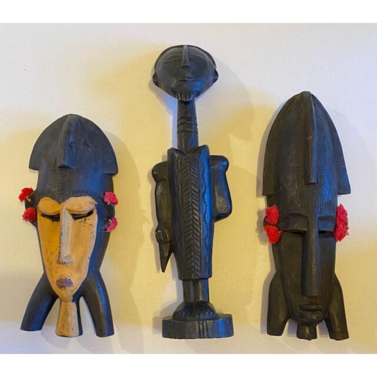 There are 5 vintage wooden Mali pieces. Overall, they are in very good condition. Please see all pictures for an accurate item description.
