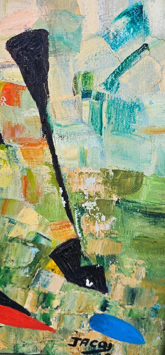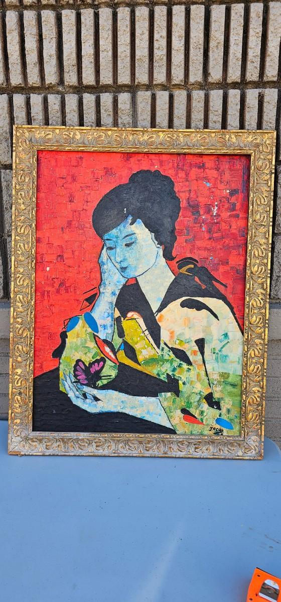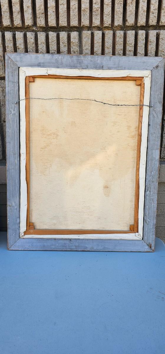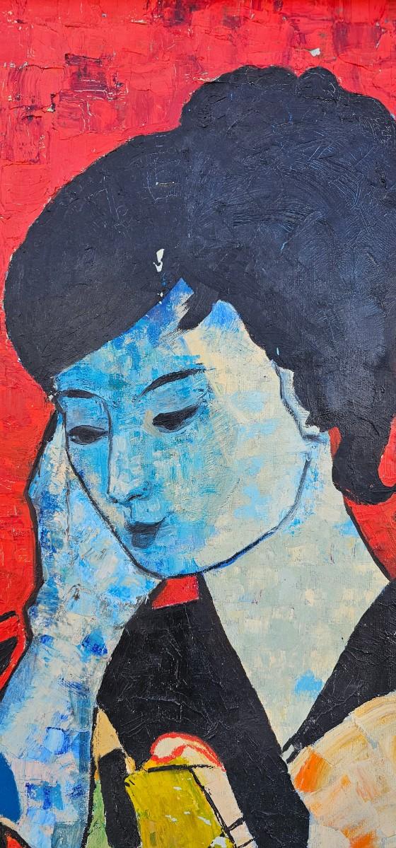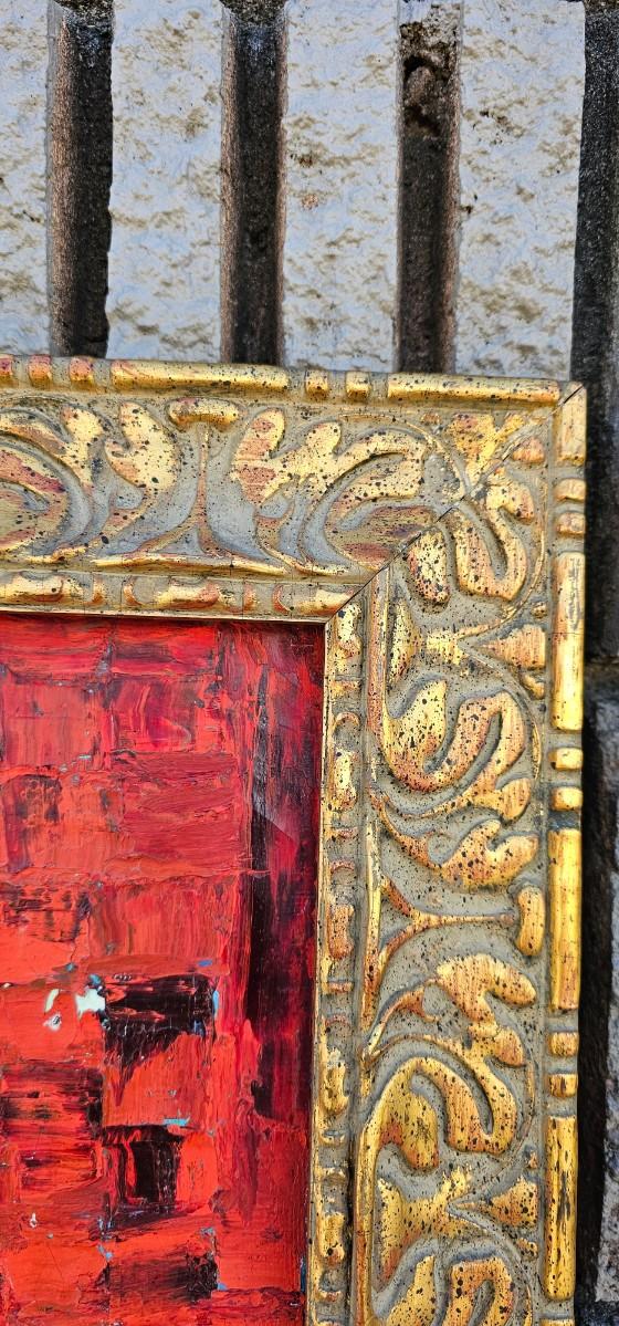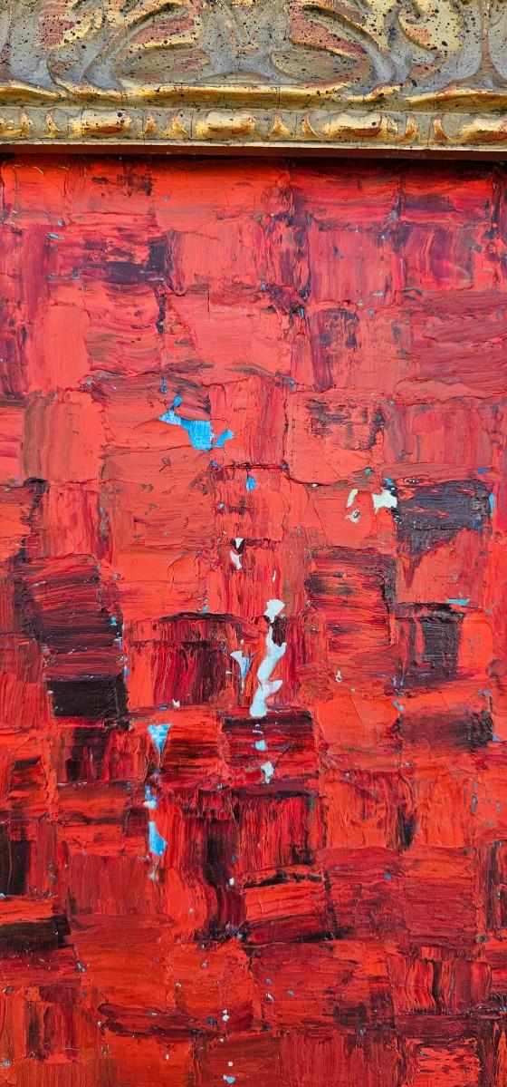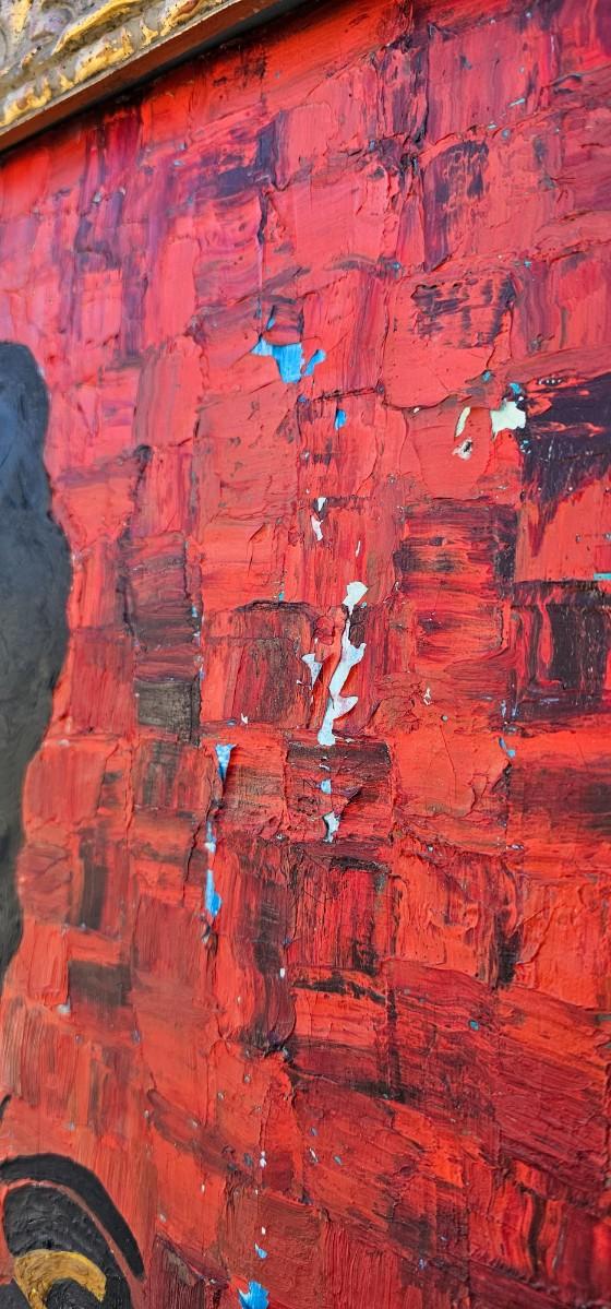 Thick impasto paint has some loss and chips