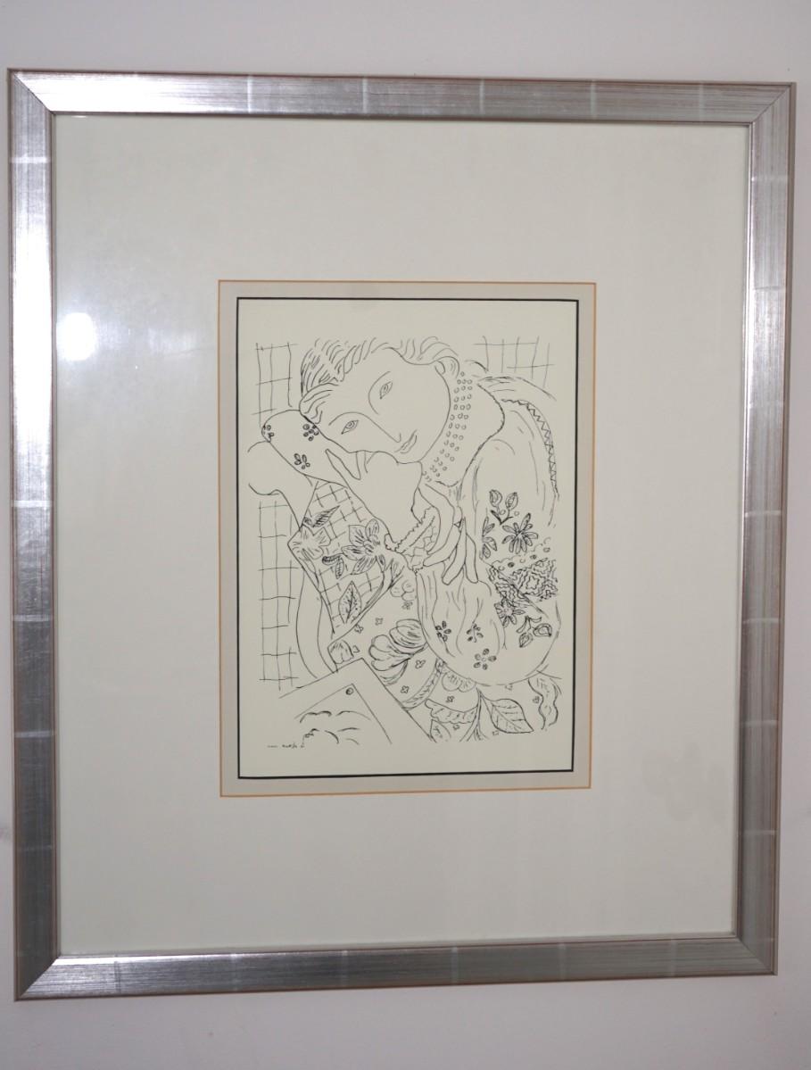 AFTER HENRI MATISSE FRAMED LITHOGRAPH DRAWING 1936 LADY