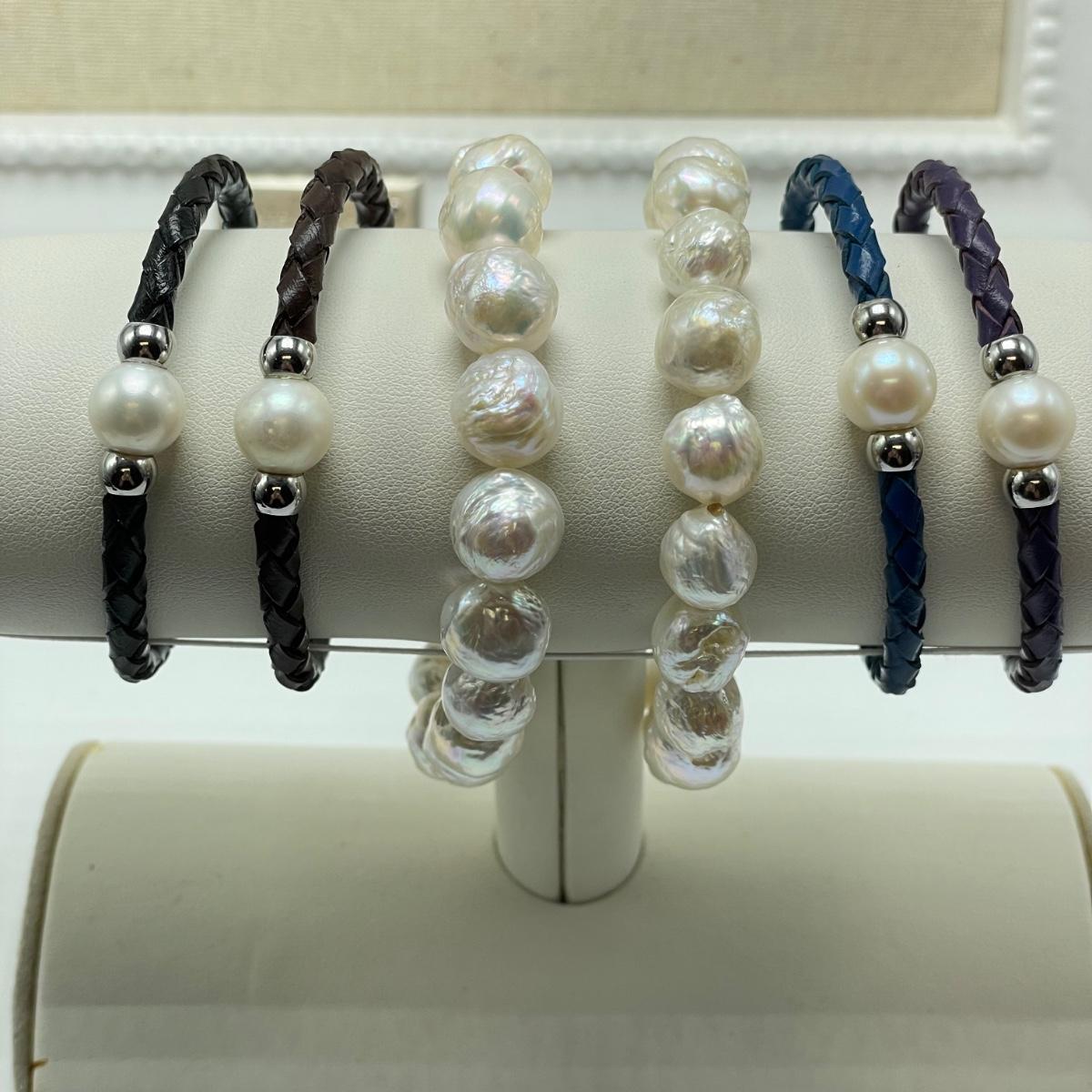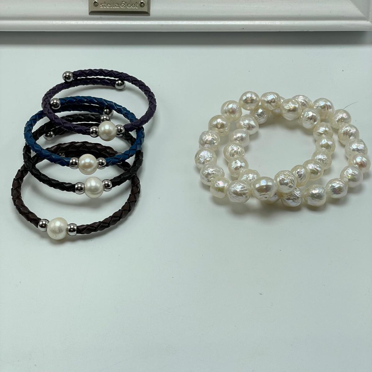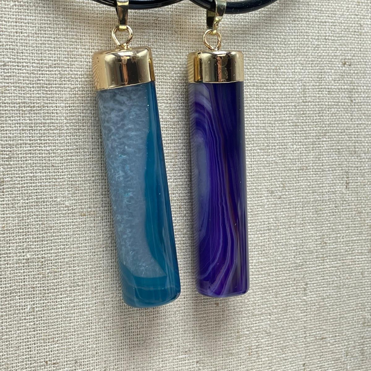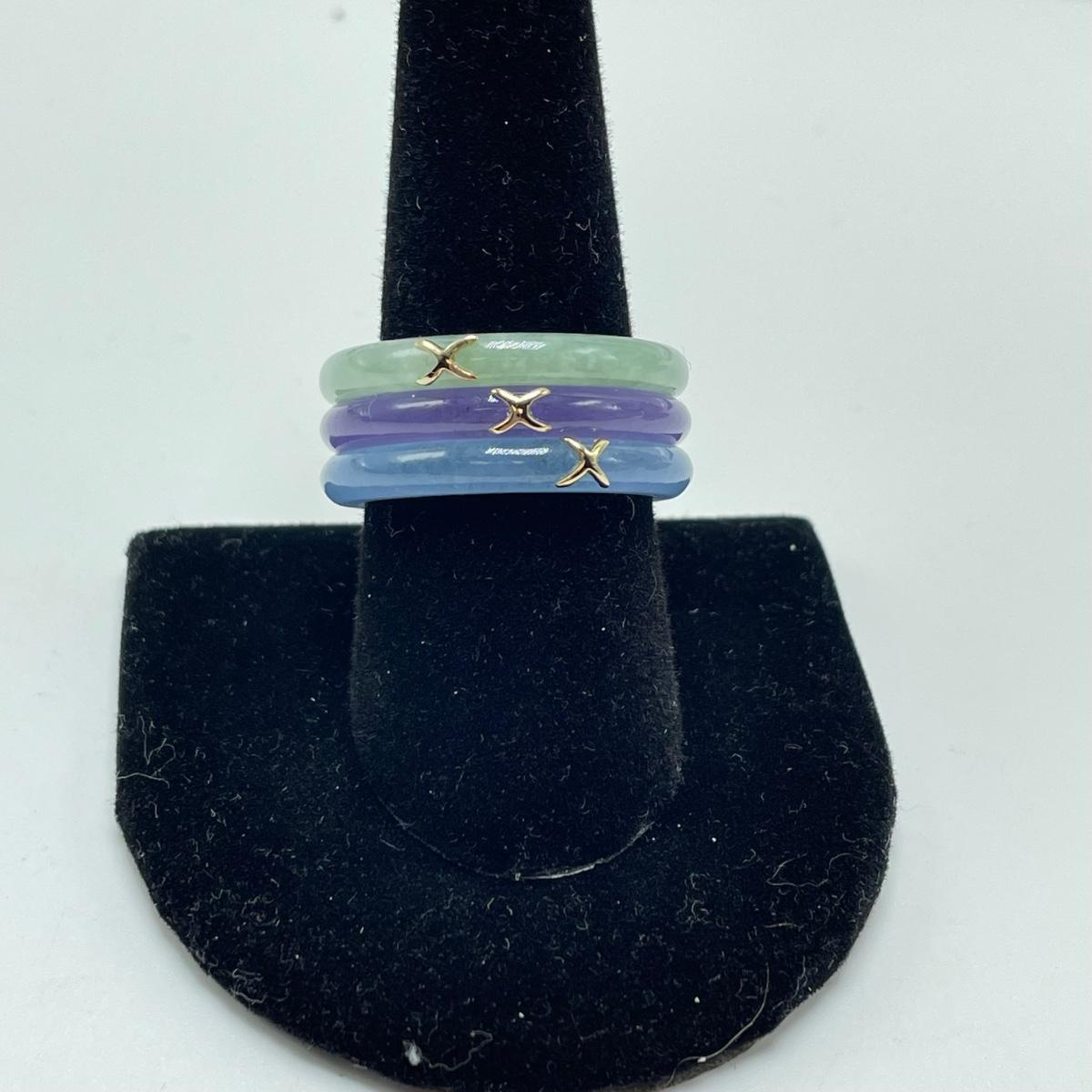 Four pendants that appear to be polished agate with two 24” vinyl like necklaces. Lot also includes three Jade like rings with 14K stamped for their gold accents. Lot also includes a black leather choker, perfect for another agate pendant, four colors of leather with Pearl centerpieces and two elastic Edison Pearl-like beads. Please see photos for all markings found. We cannot guarantee the authenticity of the gemstones. All sales are final. No returns or refunds. Please bid accordingly.
