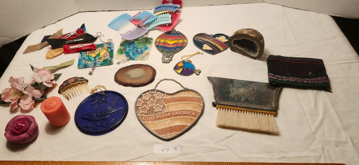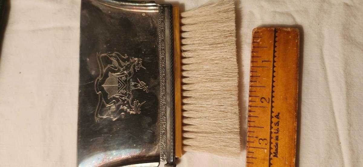 Agate Quartz Crystal Geode and Slice VINTAGE SILVER PLATED Crumb Catcher With Attached Brush,