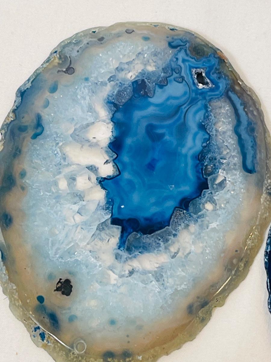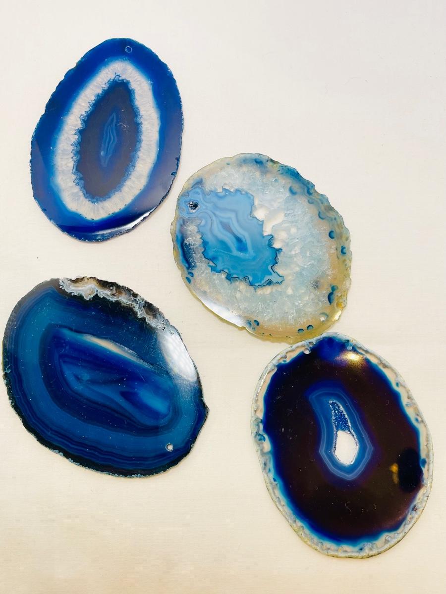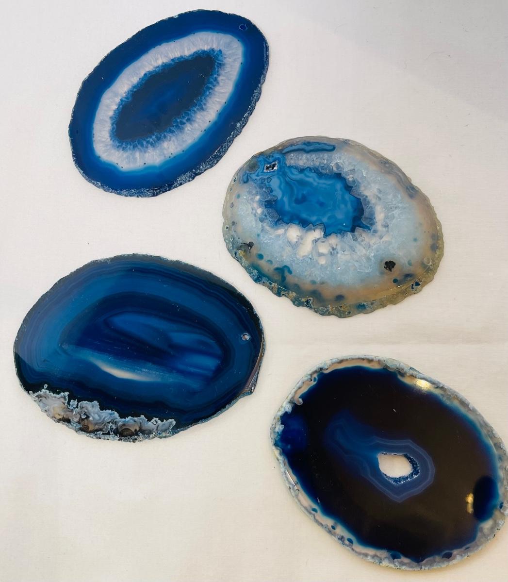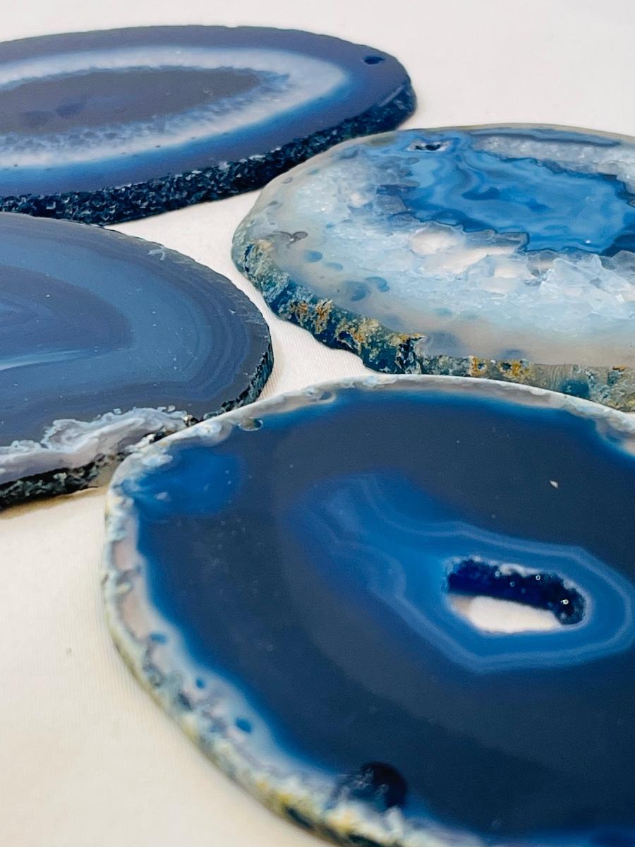 4 beautiful blue agate slices all pre drilled with a small hole to use for crafting. A few pieces have some druzy showing. These are fabulous for many reasons and uses!!