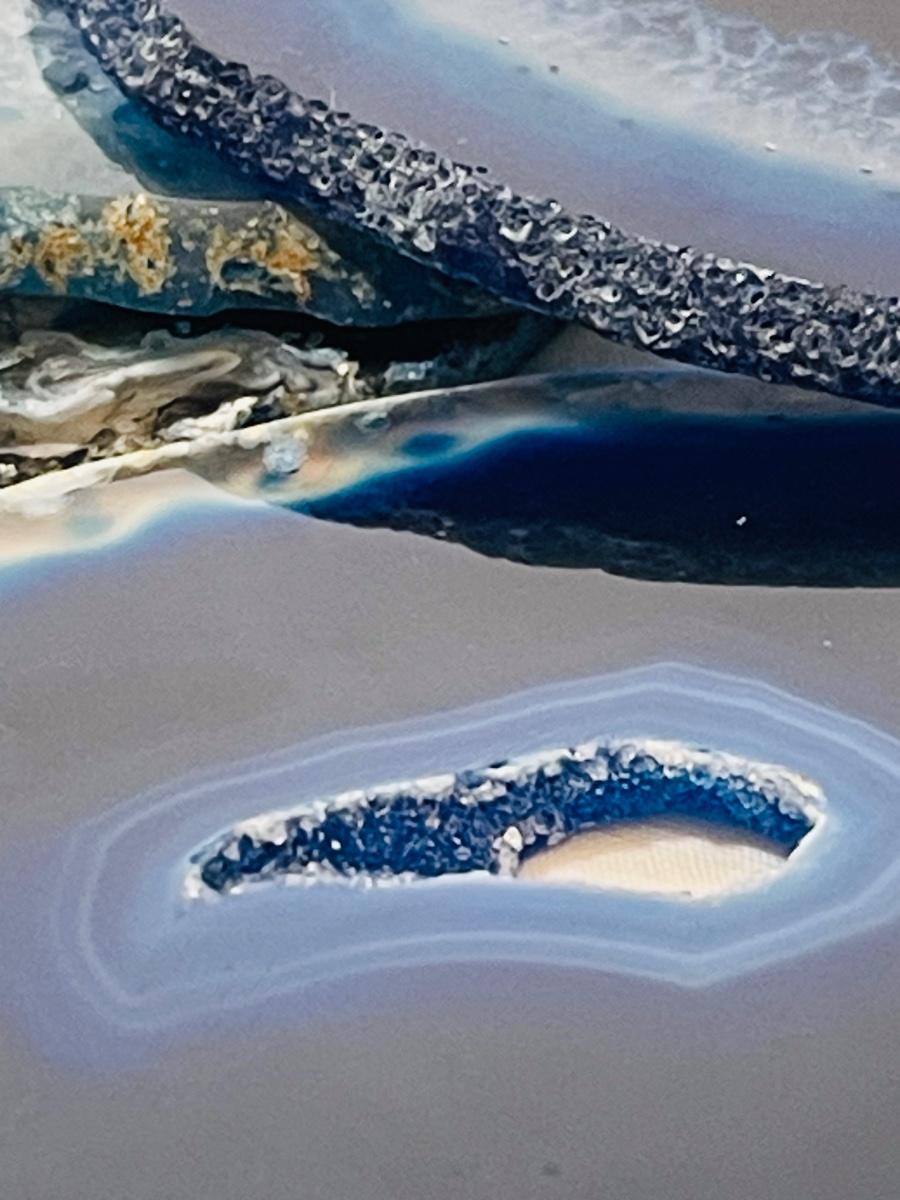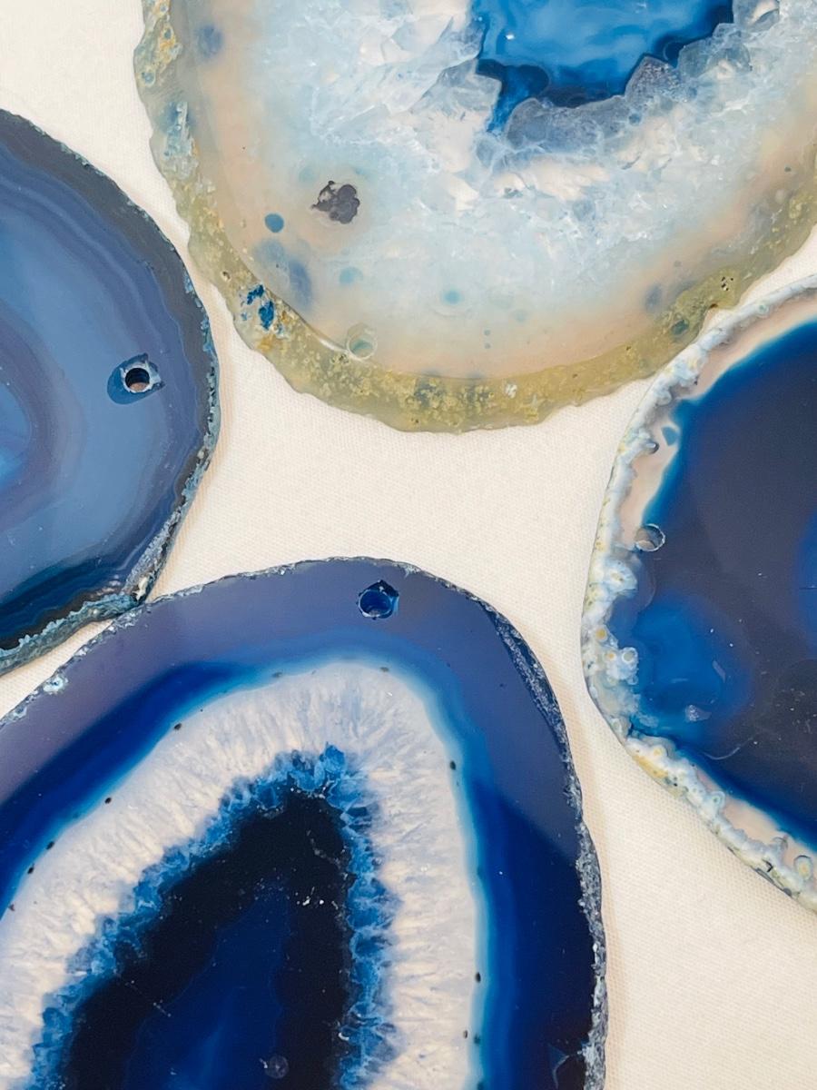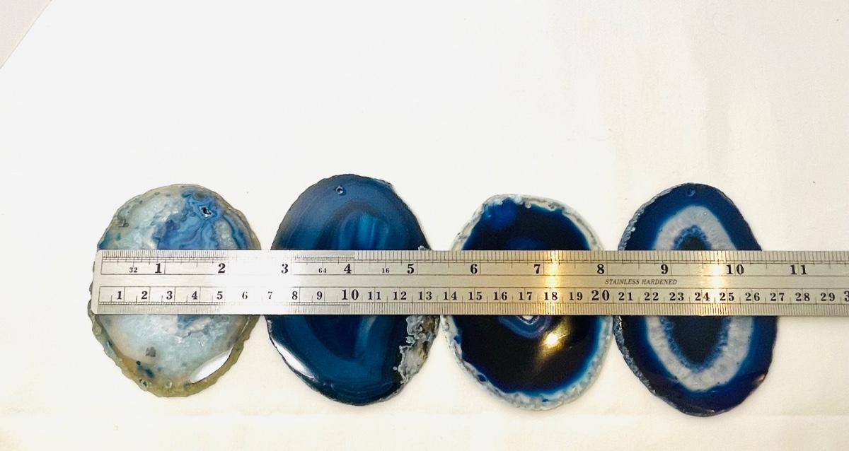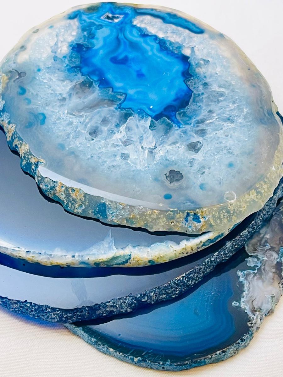 4 beautiful blue agate slices all pre drilled with a small hole to use for crafting. A few pieces have some druzy showing. These are fabulous for many reasons and uses!!