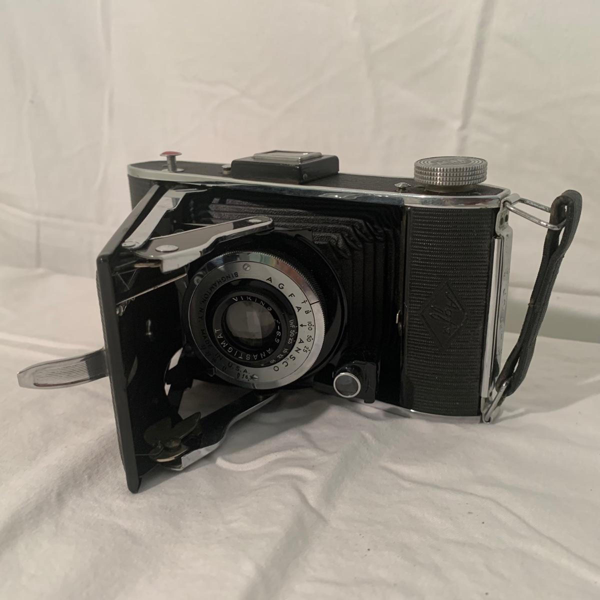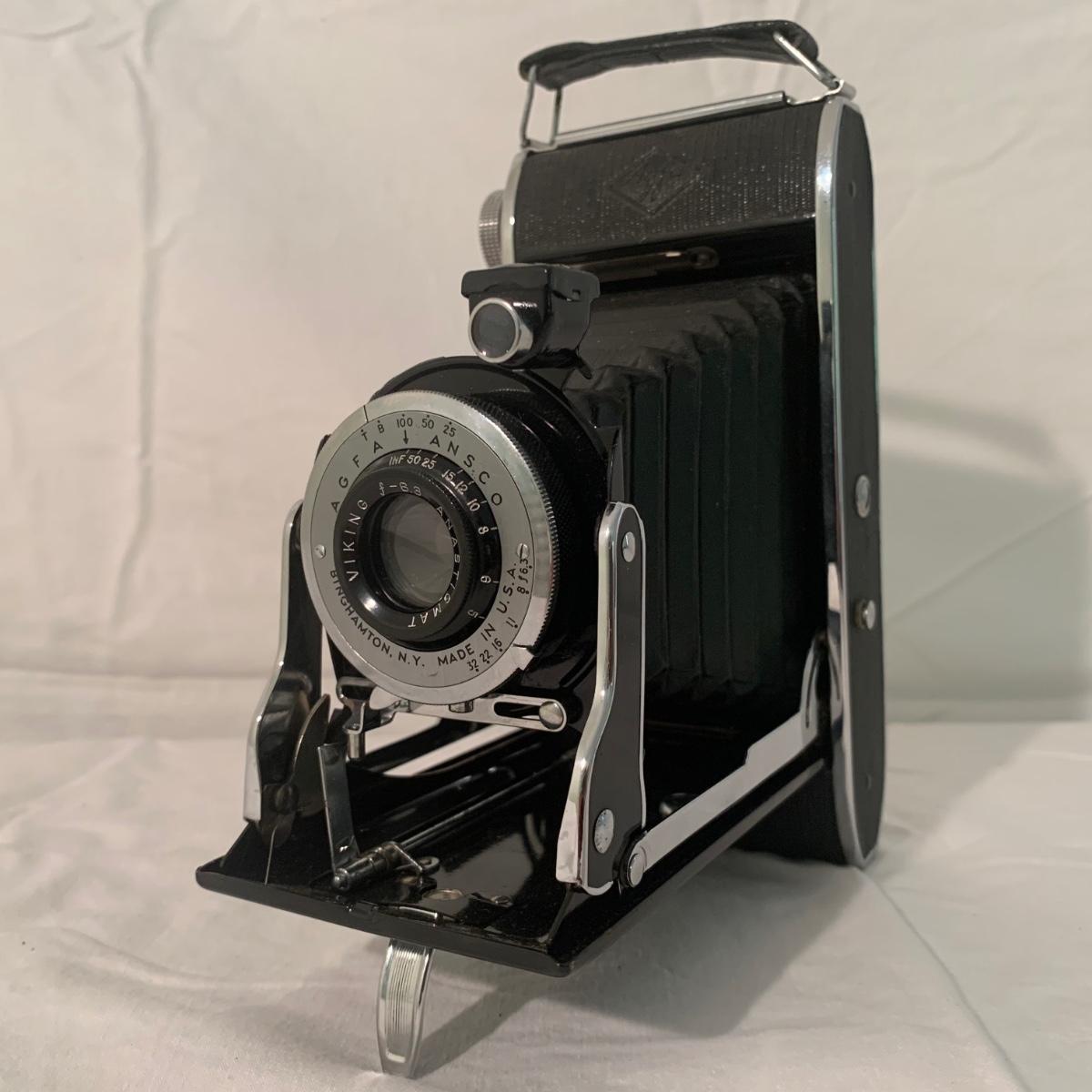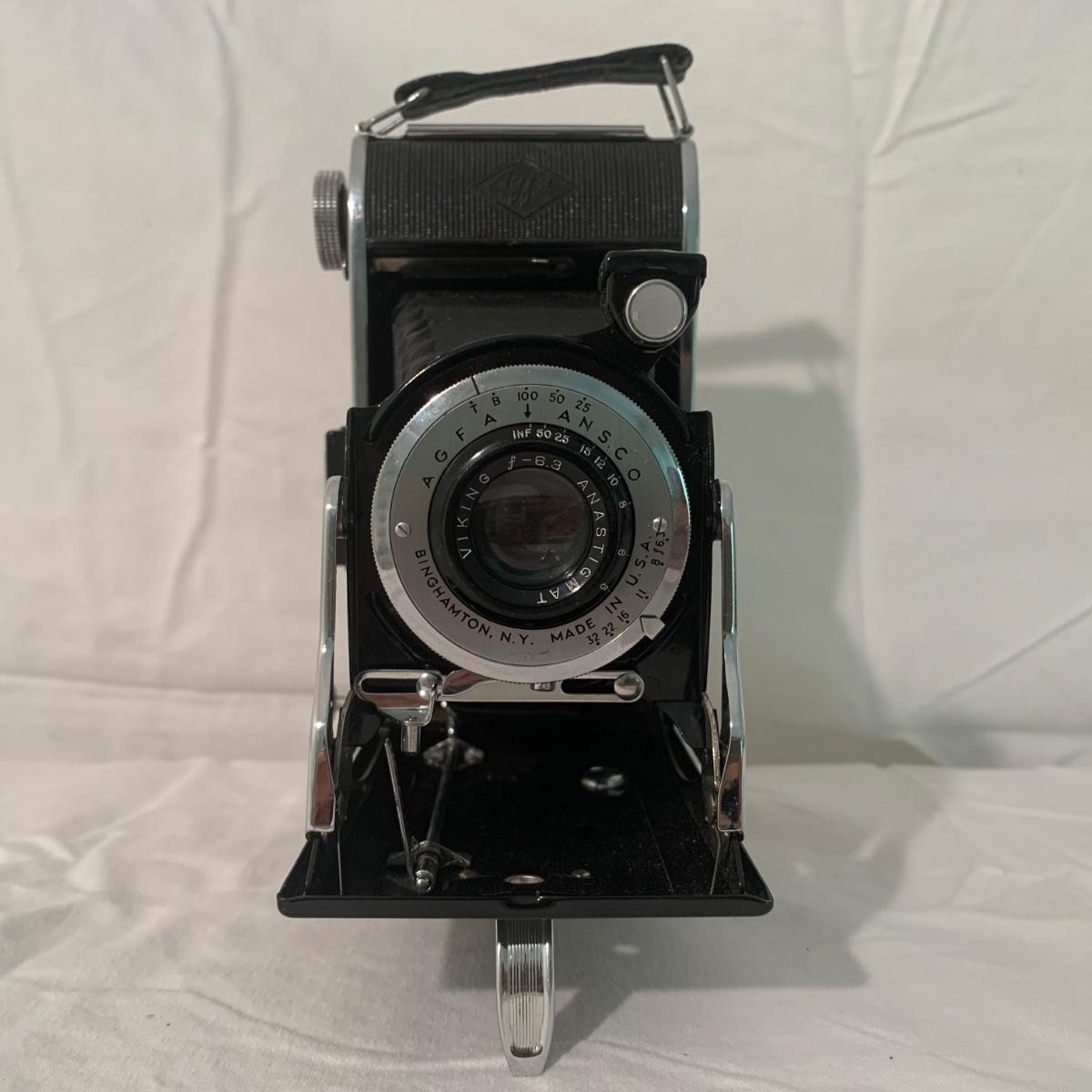 AGFA-Ansco Viking 6.3 Camera. Camera folds and locks into place nicely. However, we are unable to test it for functionality. Camera measures 7” x 1.5” x 3.25”H. Please see photos for more details. Shipping available.