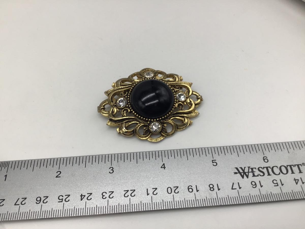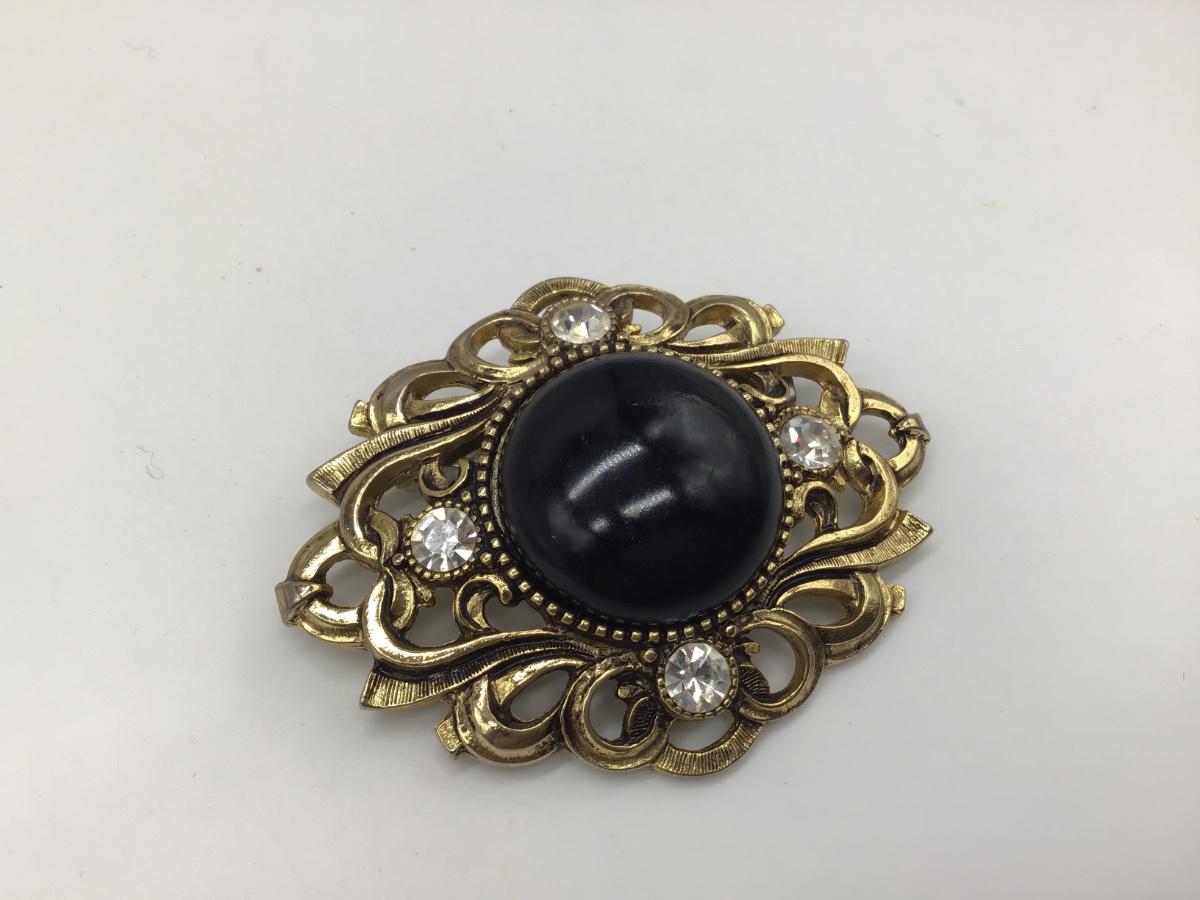 AGIL Large Faux Ornate Goldtone Brooch Pin. Marked