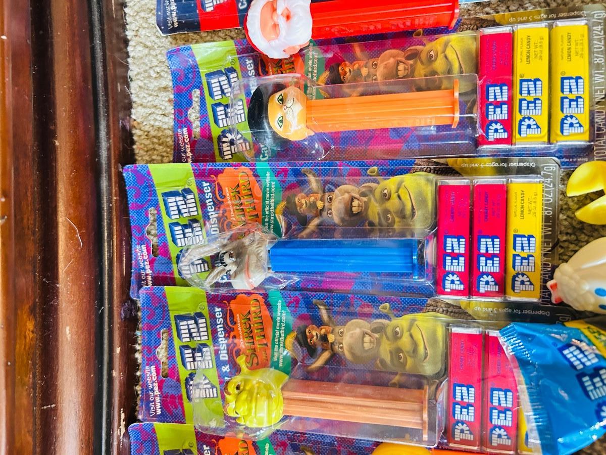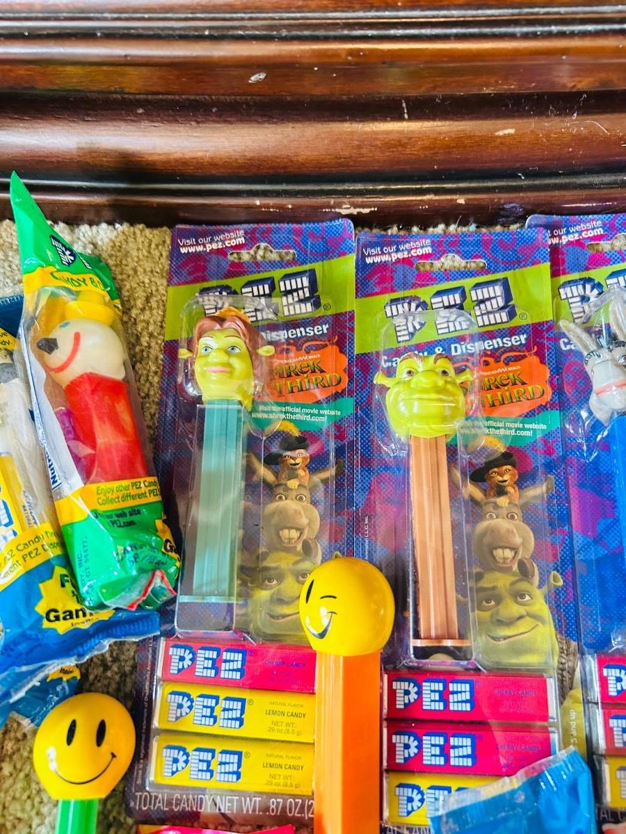 SHREK CHARACTERS AND AN ASSORTMENT OF OTHER PEZ DISPENSERS IN-&-OUT OF PACKAGES