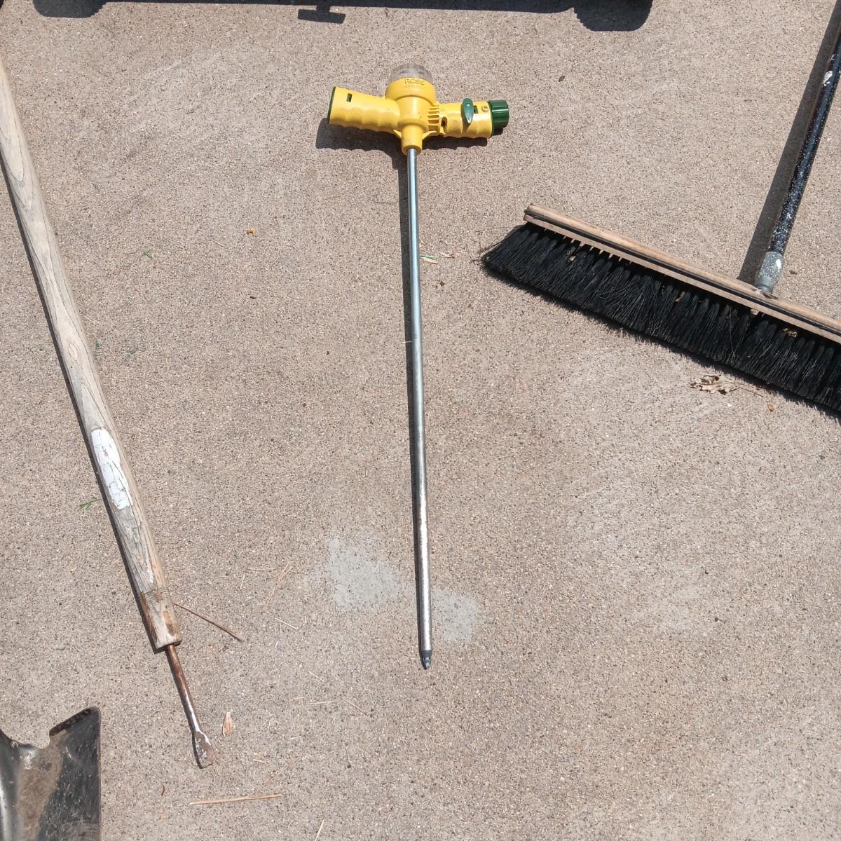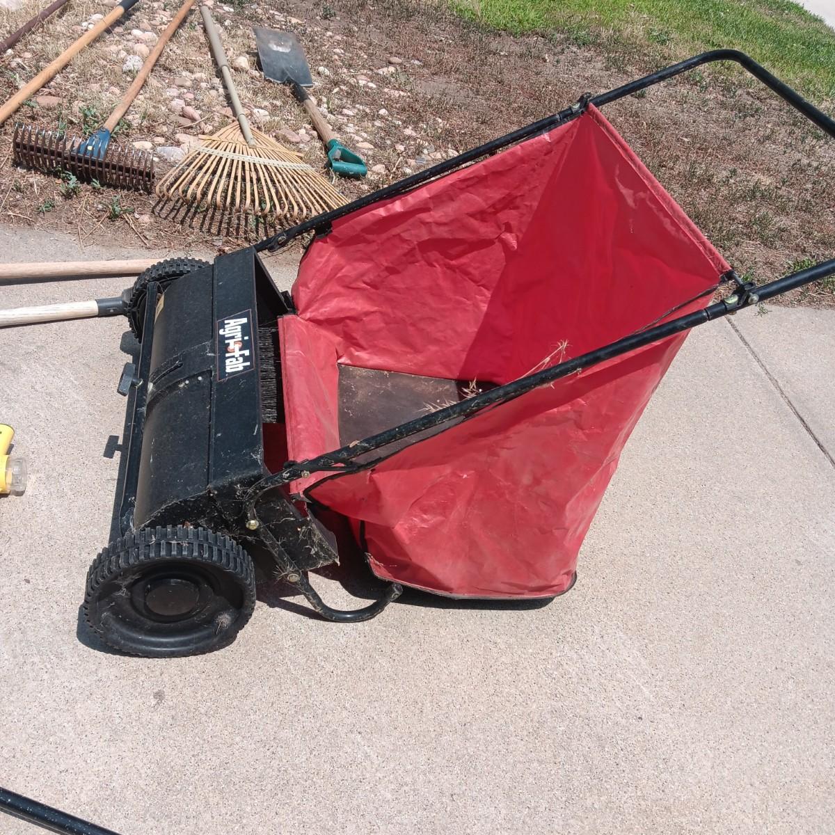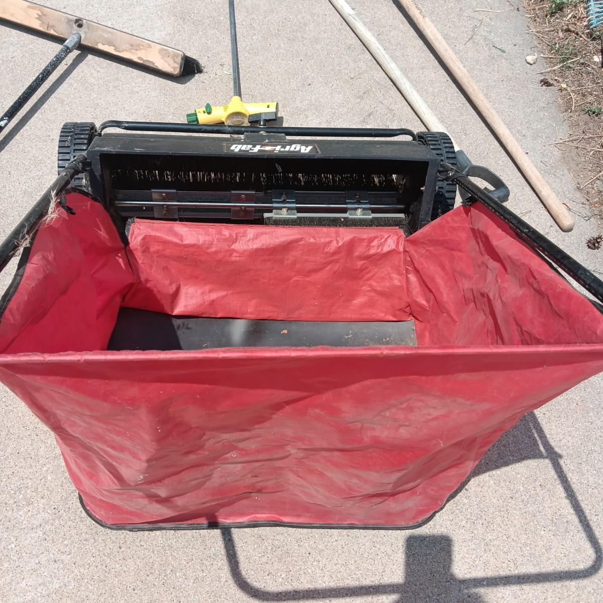WE ARE CURRENTLY LOOKING FOR THE LEAF SWEEPERS METAL ROD THAT HOLDS PART OF THE BAG IN PLACE. I'M SURE IT IS PRESENT BUT IF WE DON'T FIND IT, YOU WILL EITHER RECEIVE A GOOD PORTION OF YOUR MONEY REFUNDED OR ALL OF YOUR MONEY IF YOU DON'T WANT TO DEAL WITH IT