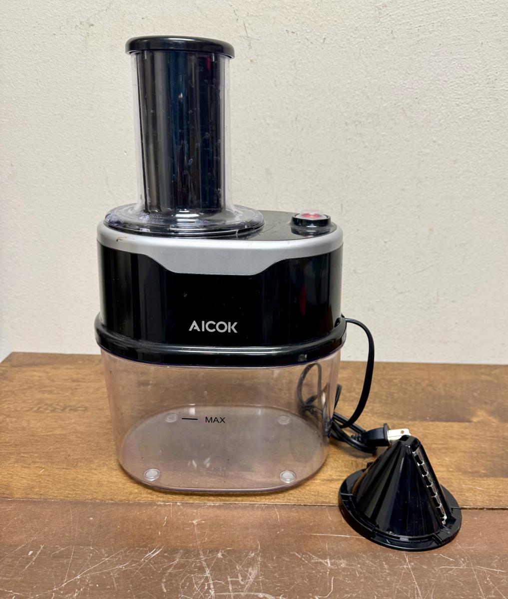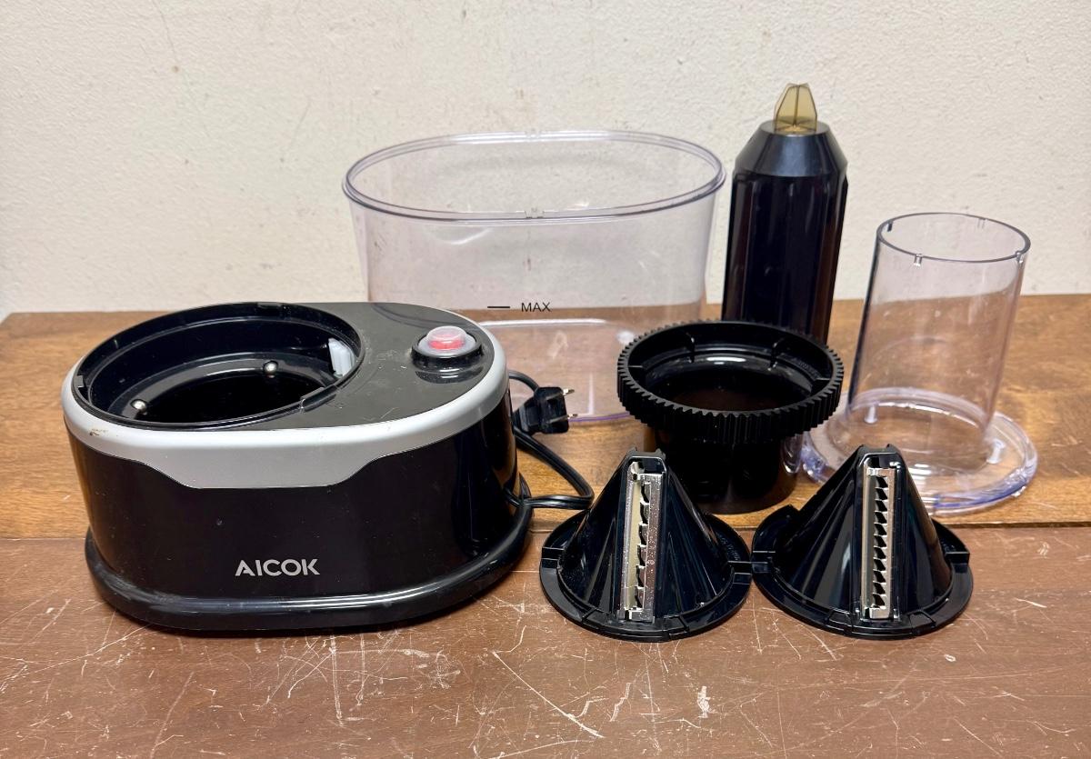 Electric vegetable slicer. Comes with 2 slicing inserts. Tested, runs smoothly and quietly. Near new condition.