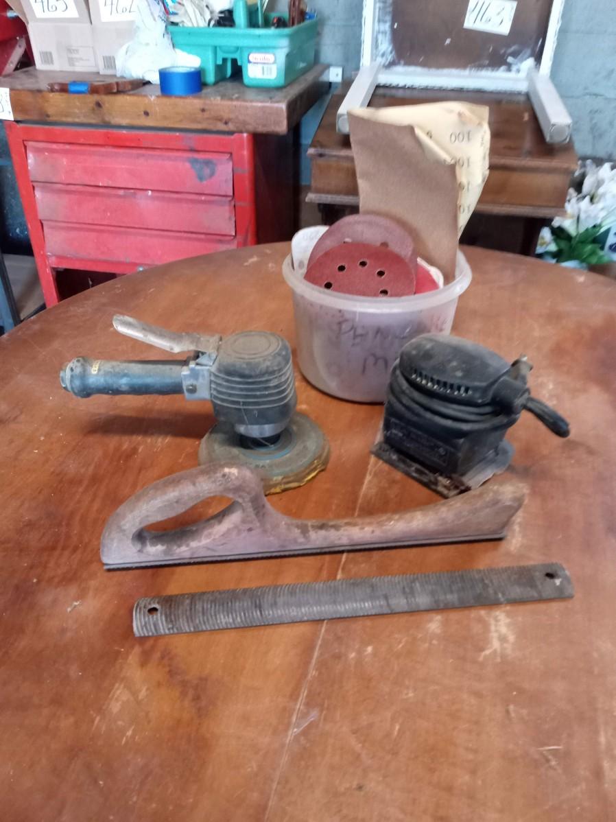 AIR AND ELECTRIC SANDERS WITH SANDING DISCS AND RASPS