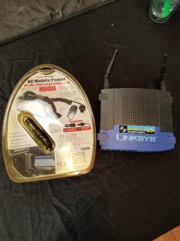 Air Force Paper Weight, Linksys Router, Ac Mobile Power kit
