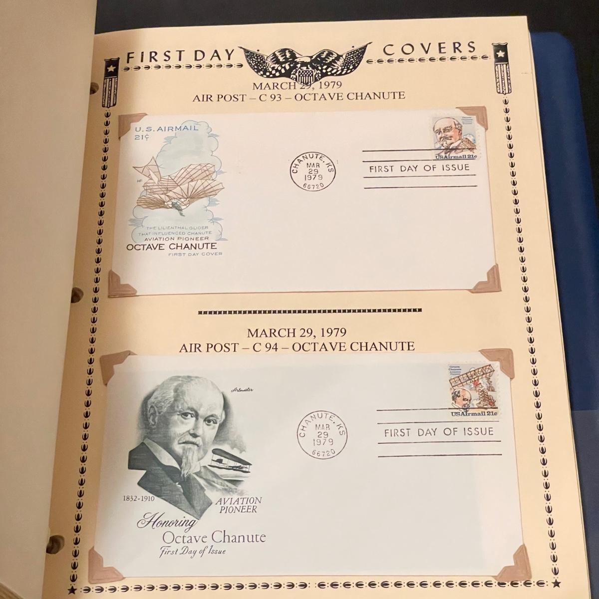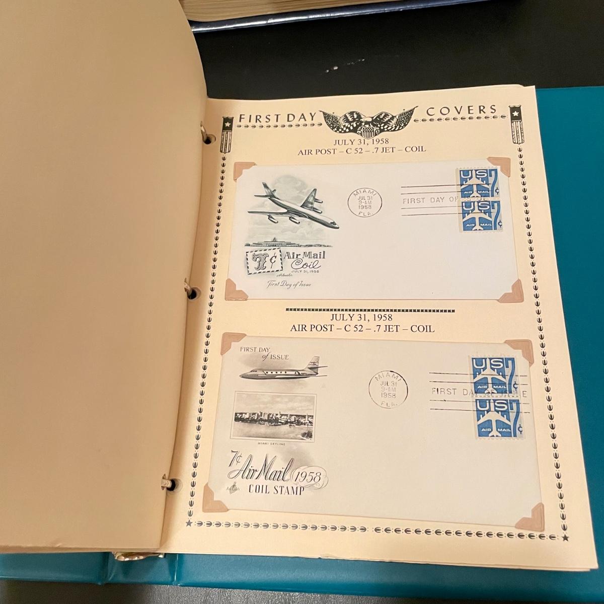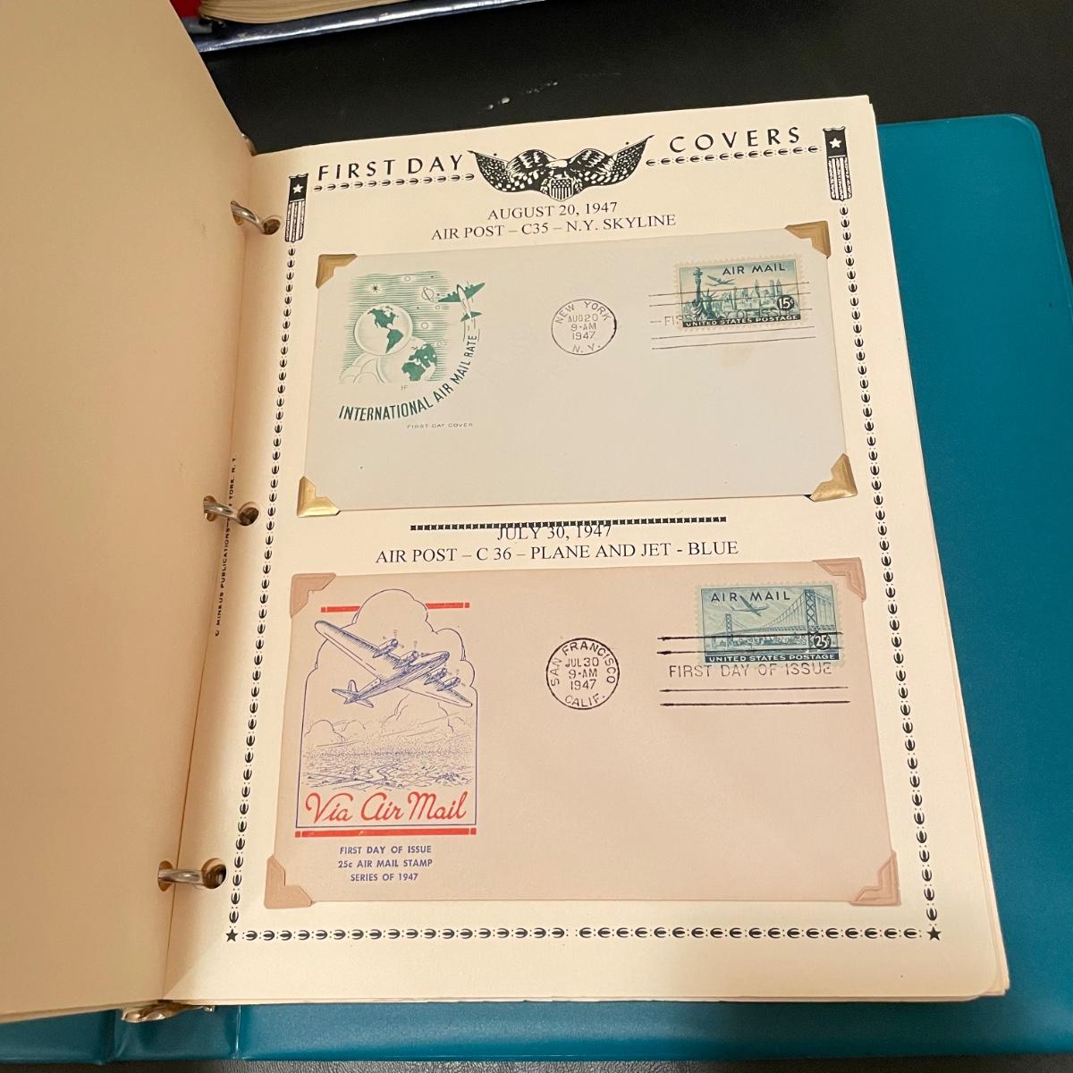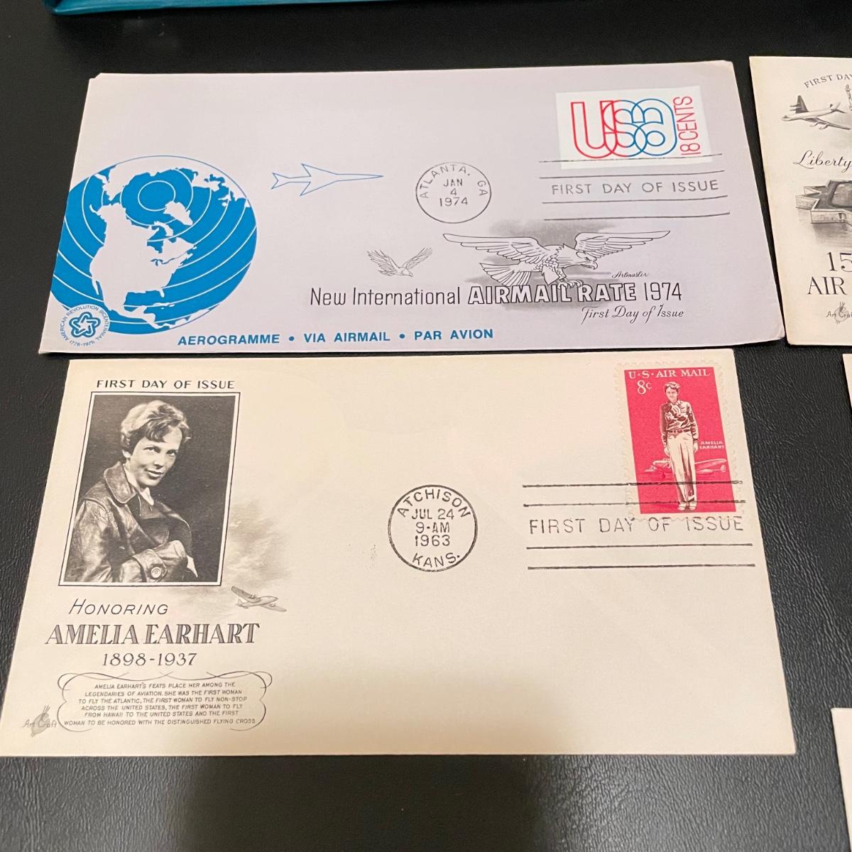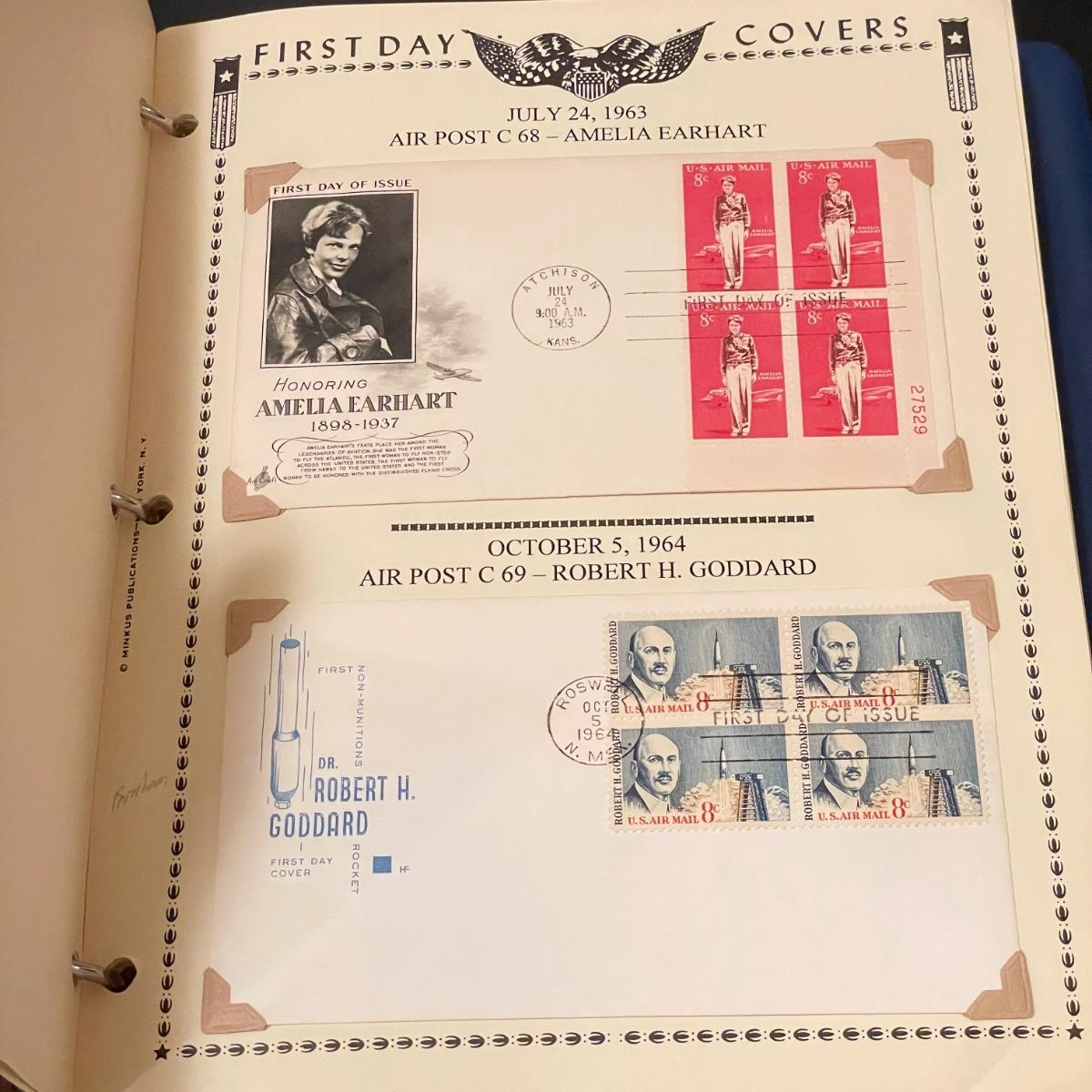Four organized albums with a focus on aviation and Air Mail. Lot includes a binder with plate blocks, two with 1st day covers, three have air post and one has some Air Mail envelopes. See images for examples. Pages are mostly full, lot includes eight loose envelopes shown in photos. All sales are final. No returns or refunds. Please bid accordingly. Shipping available.