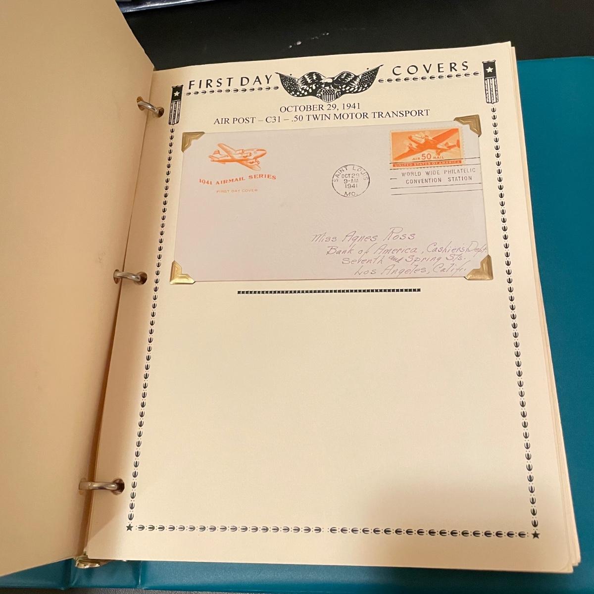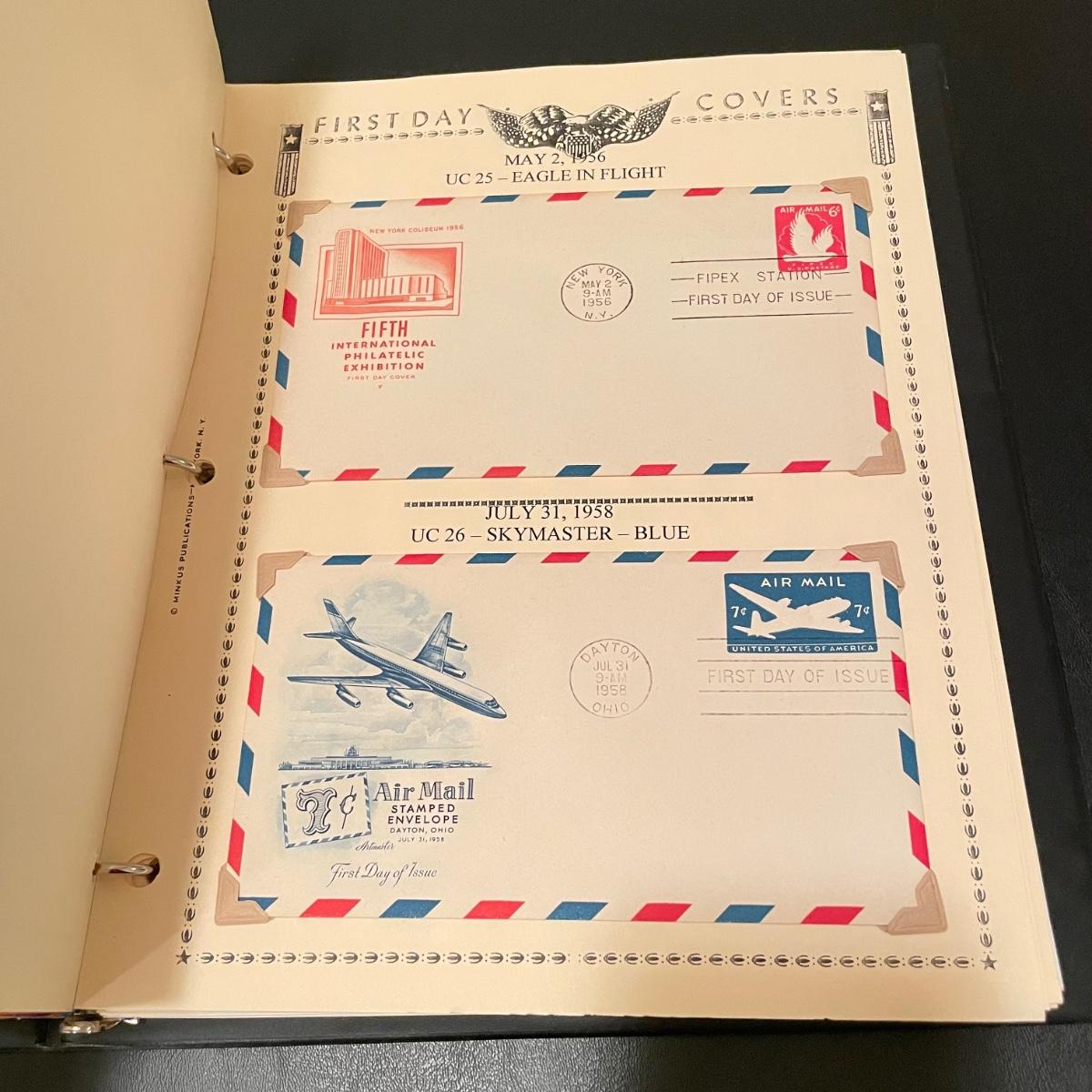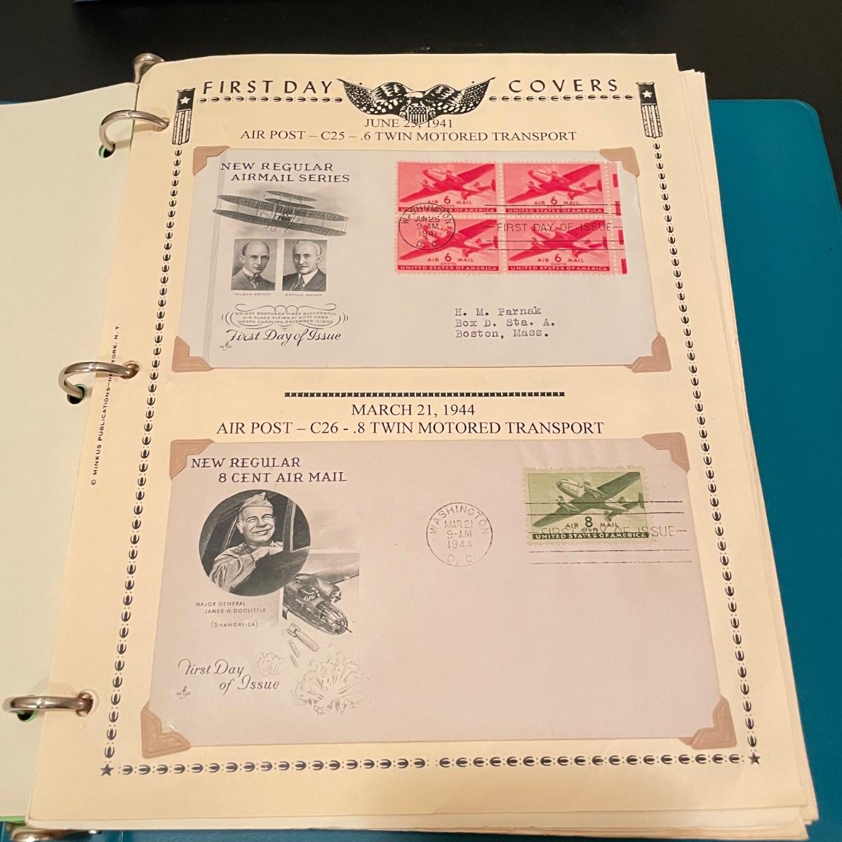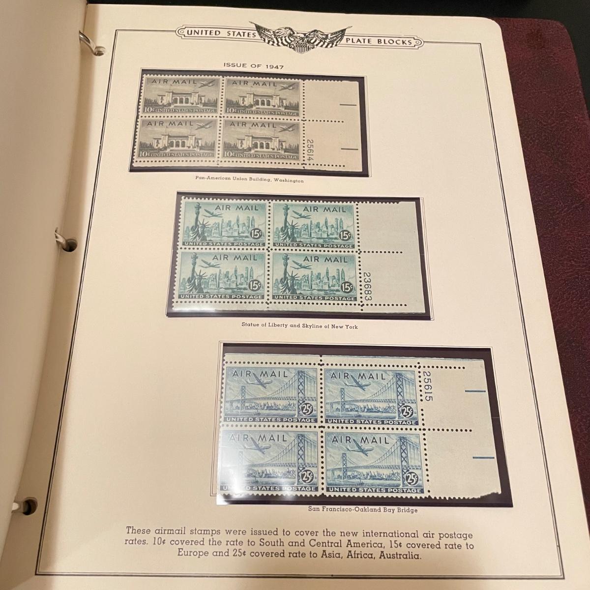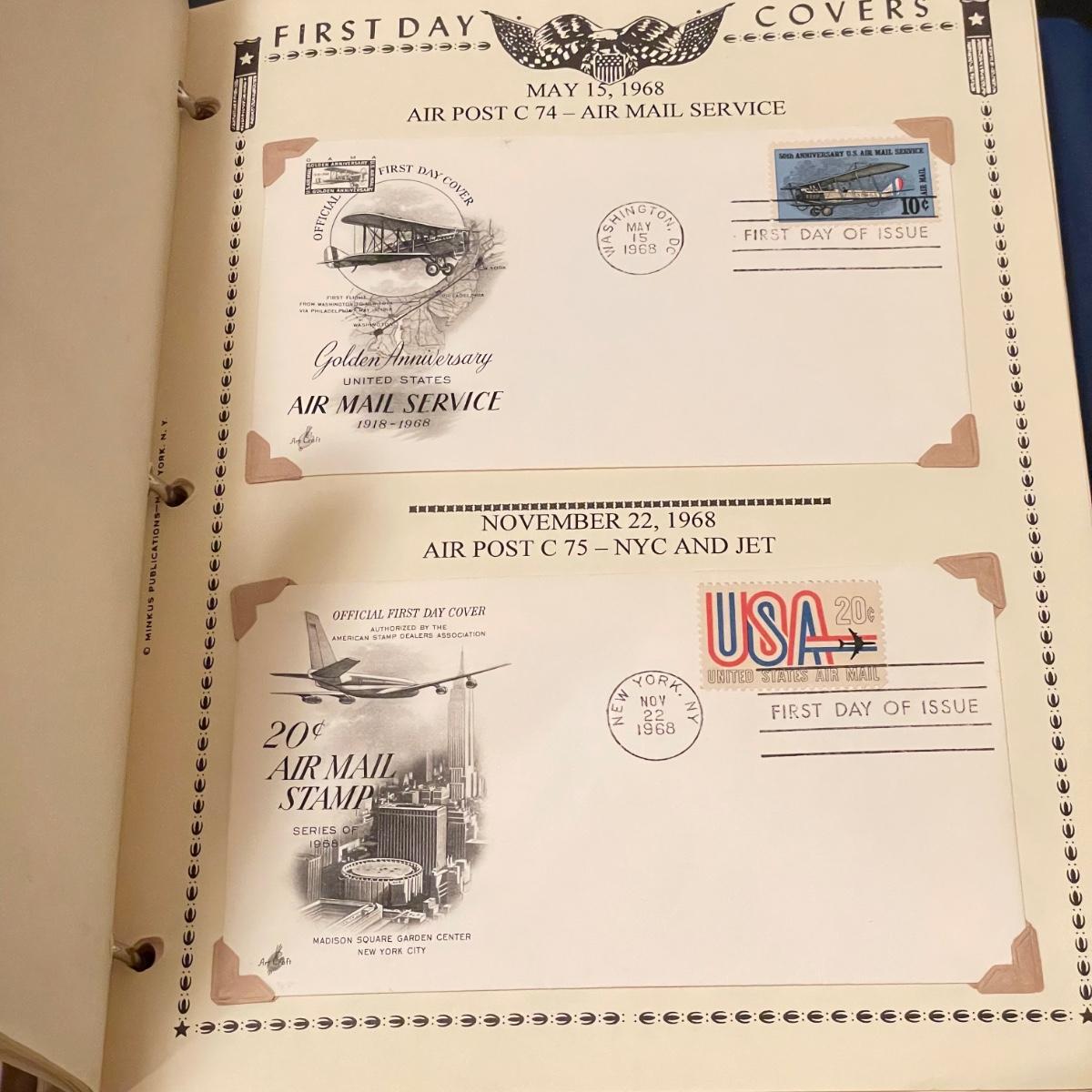 Four organized albums with a focus on aviation and Air Mail. Lot includes a binder with plate blocks, two with 1st day covers, three have air post and one has some Air Mail envelopes. See images for examples. Pages are mostly full, lot includes eight loose envelopes shown in photos. All sales are final. No returns or refunds. Please bid accordingly. Shipping available.