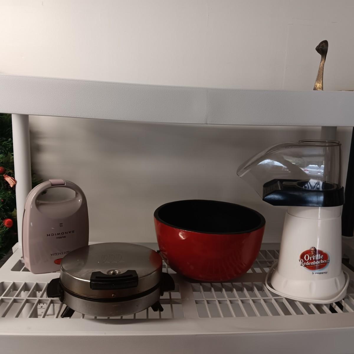 AIR POPCORN POPPER, LARGE BOWL, WAFFLE MAKER AND MY MINI SANDWICH MAKER