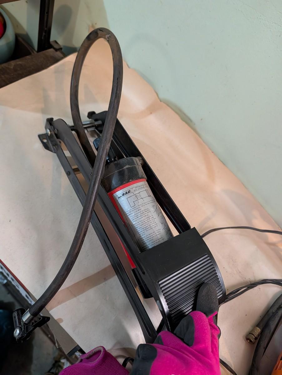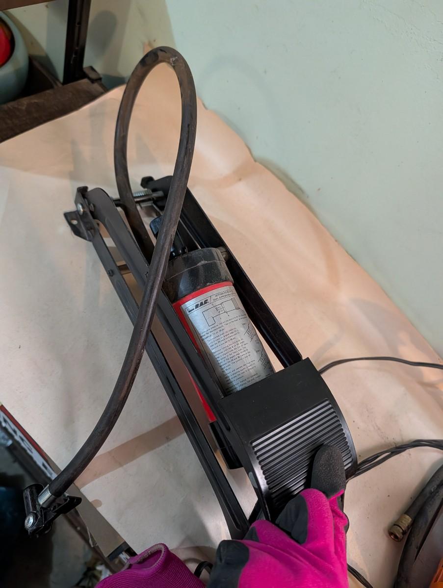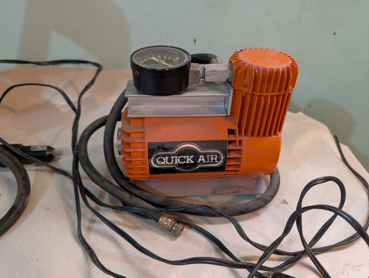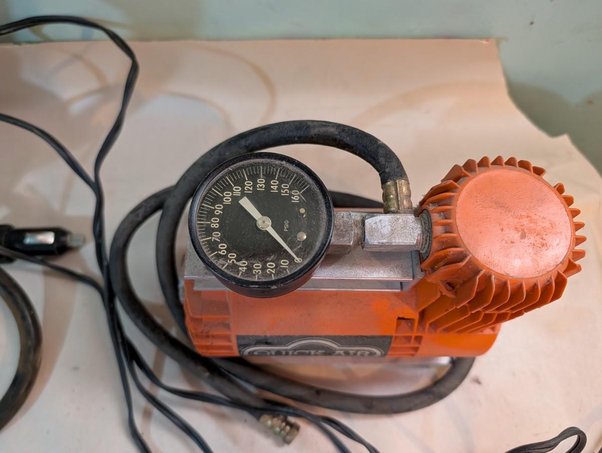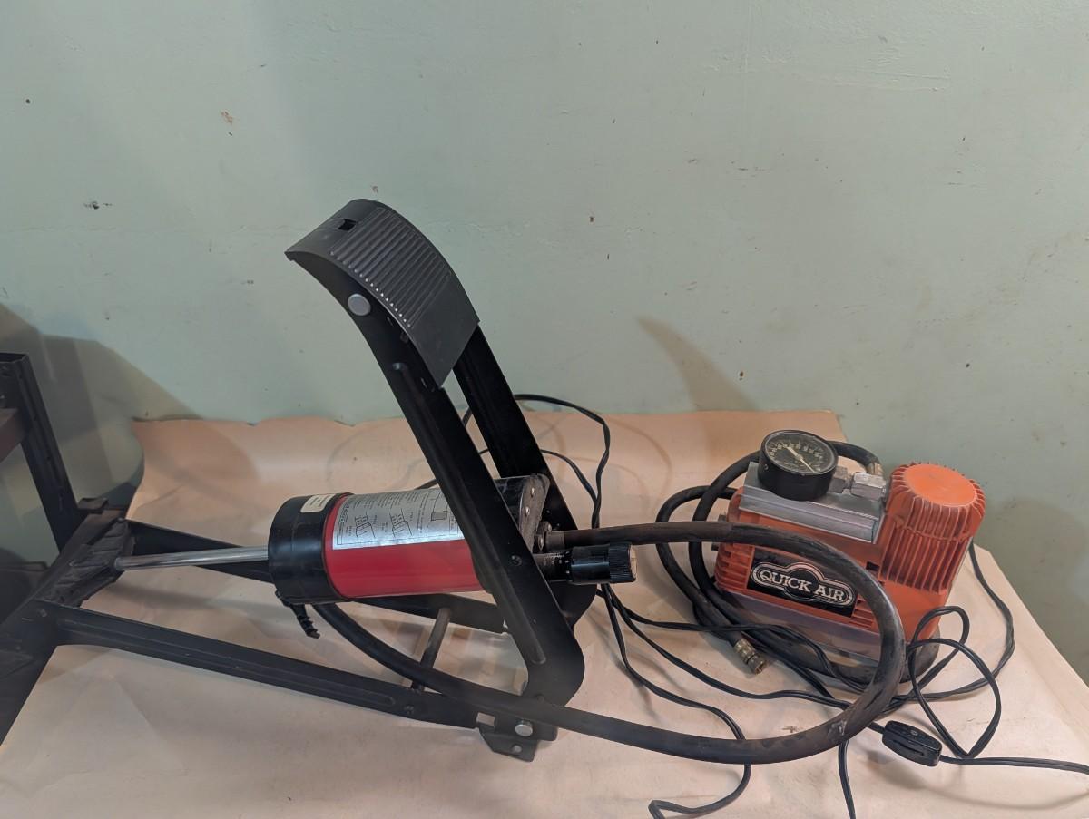 Air compressor that plugs into cigarette lighter. Air pump that you use your muscles.