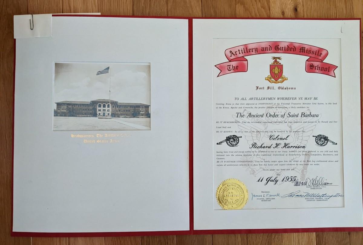 Included Brig Gen RH Harrison Fort Sill Artillery diploma 1955