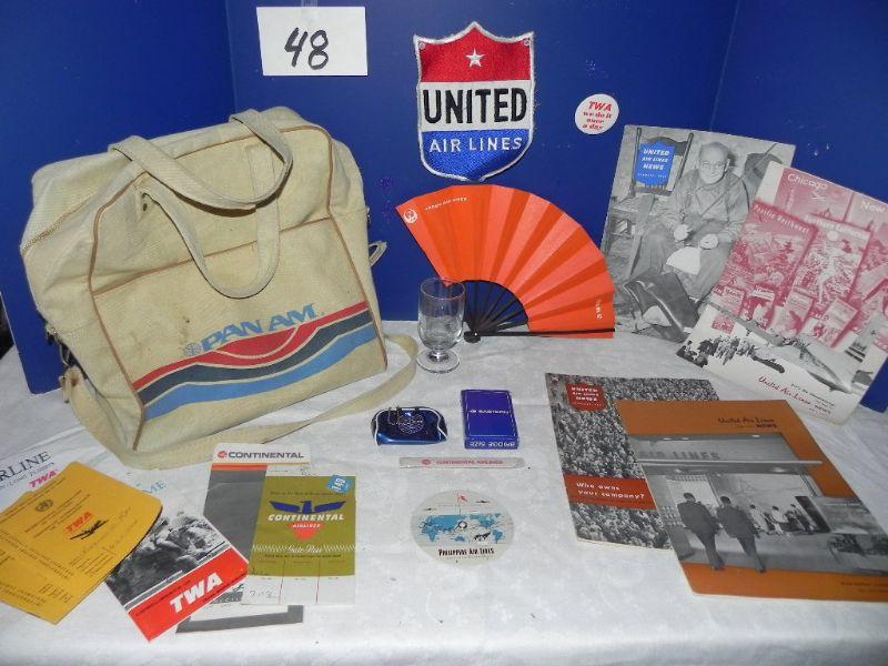 *UNITED COAT PATCH- PAN AM CANVAS CARRY BAG-TWA, CONTINENTAL...VINTAGE ADVERTISING