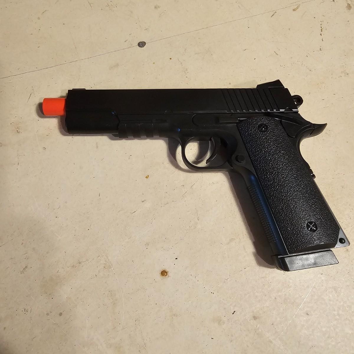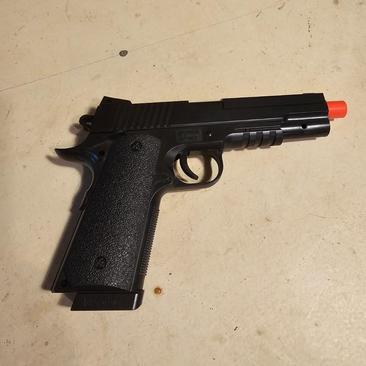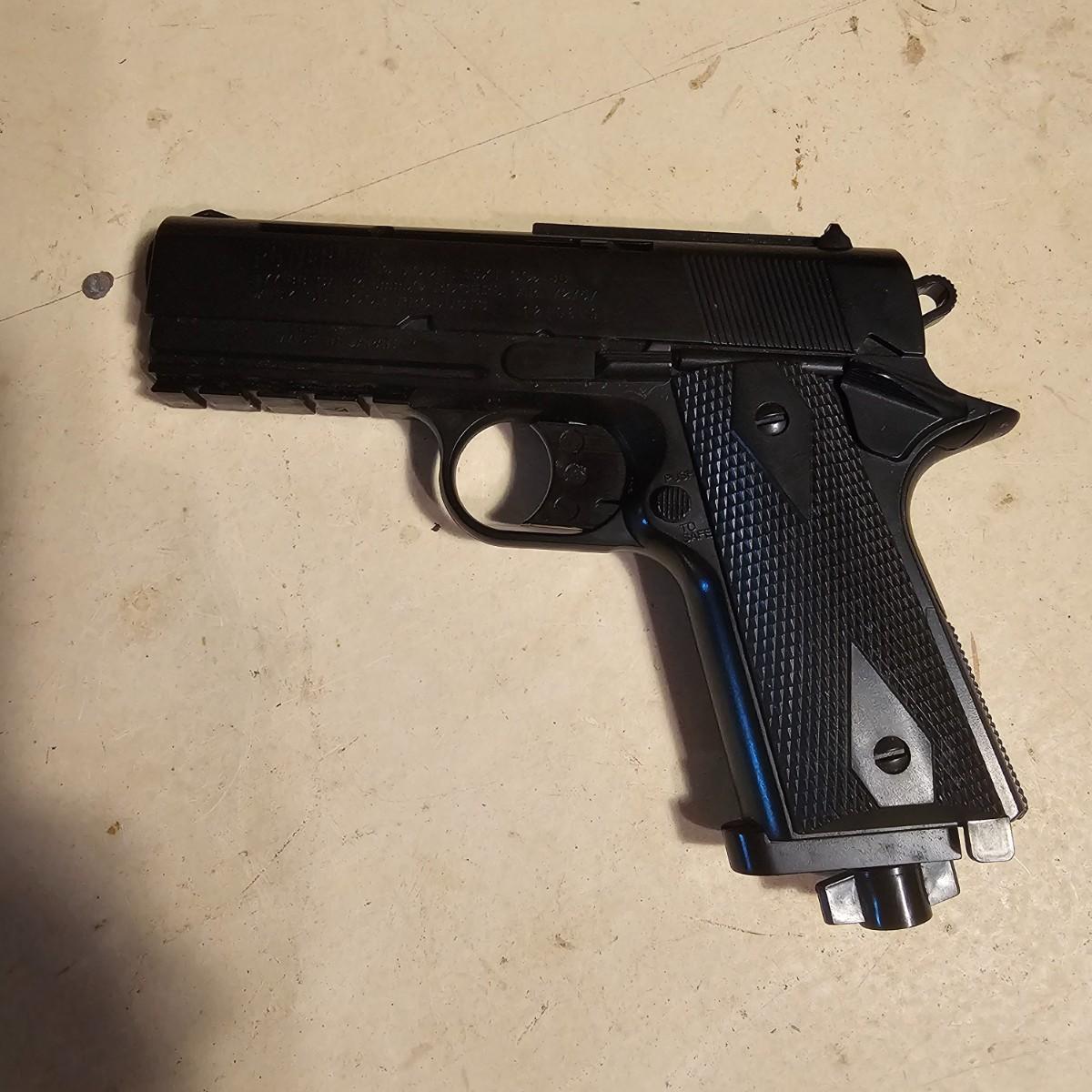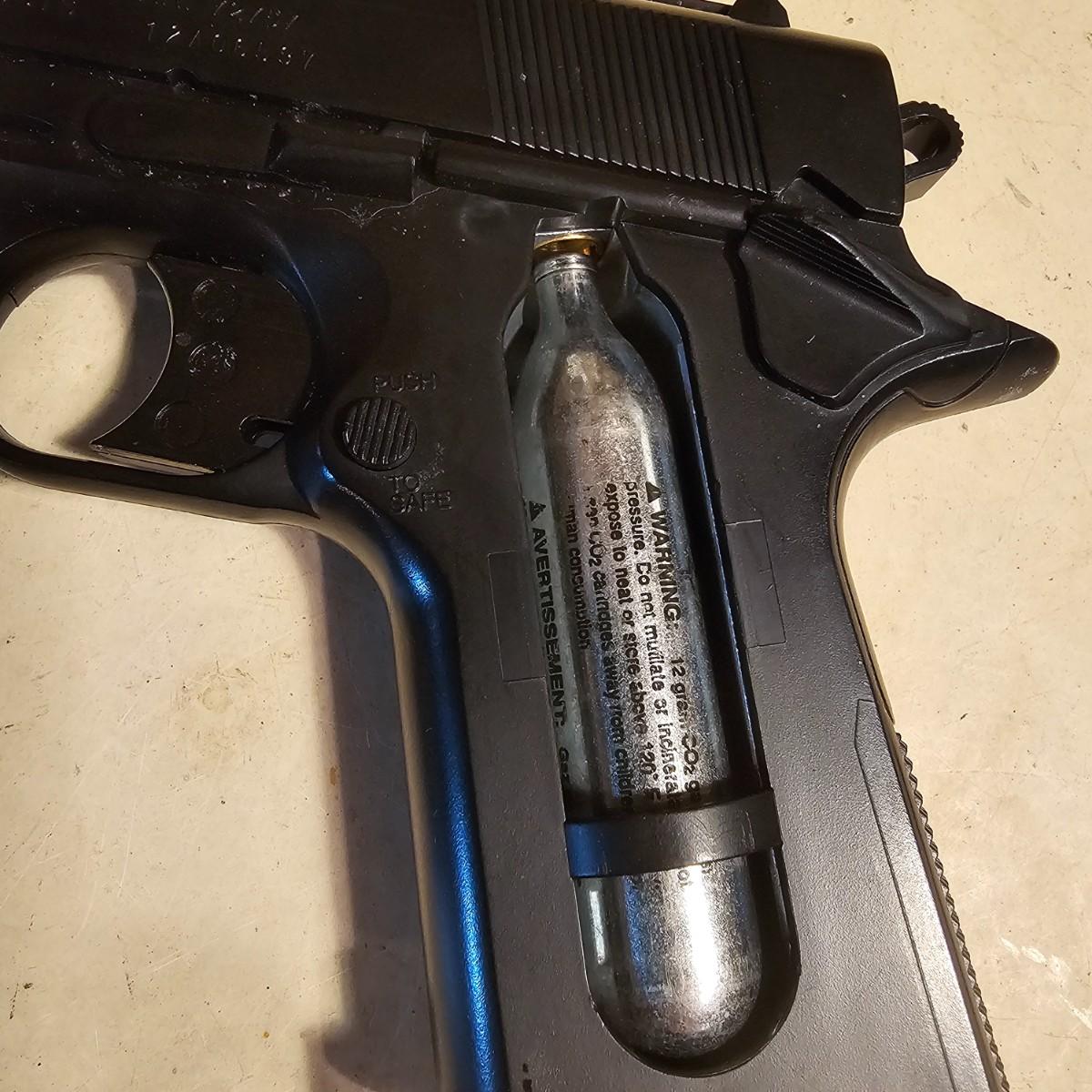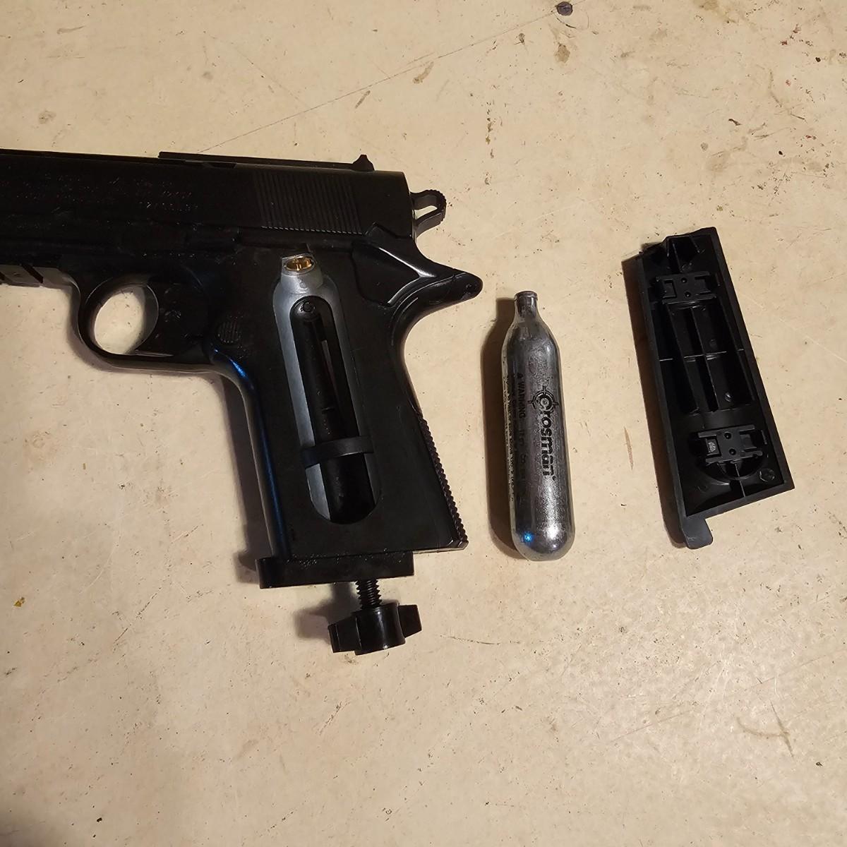 Three pistols, ammo, CO2 cartridges, safety glasses and more. BB's and airsoft pellets for all pistols plus CO2 cylinders (may not be viable due to age). Pink carry-bag is by Bulldog, measures 11" x 2" x 7"H, has compartments for pistol, ammo, etc. One Daisy Powerline CO2 pistol, shoots BBs. Tag indicates item is remanufactured. Untested, also includes over 20 cylinders and ammo. Smaller pistol is a Cyma p662 air gun, has loadable magazine, shoots airsoft pellets, included. Large pistol is a Powerline AirStrike 240, removable magazine, shoots 6mm airsoft pellets, included. Spring loaded. Both spring operating items tested working. Also goggles and a speed loader, caliber unknown. See photos for details. Local pickup only.